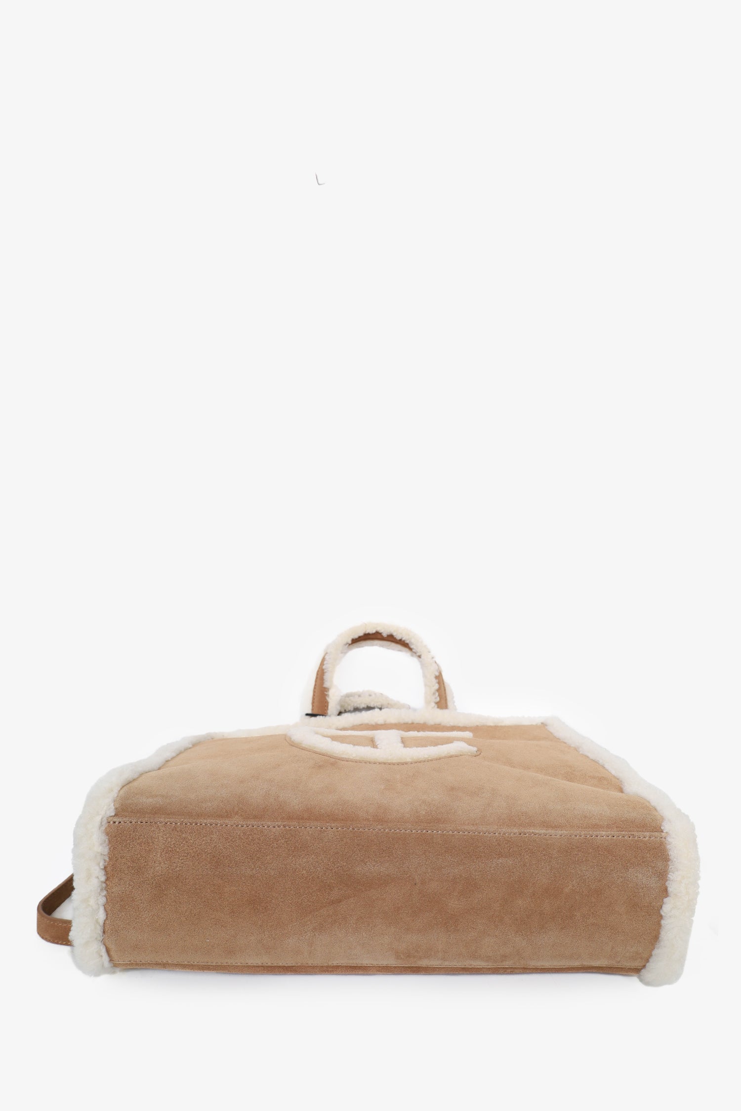 Refresh availabilityTelfar x UGG Brown Suede Shearling Medium Shopping Bag. Twin handles and straps. Tonal textile lining. Magnetic closure. 1 interior zip pocket. Silver-toned hardware. Tonal stitching.