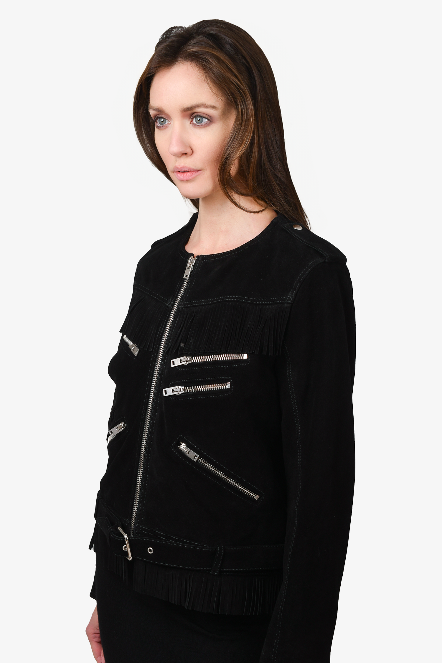 Refresh availabilityThe Kooples Black Suede Fringe Jacket. Front zip closure. Front zip pockets. Lined. Tonal stitching.