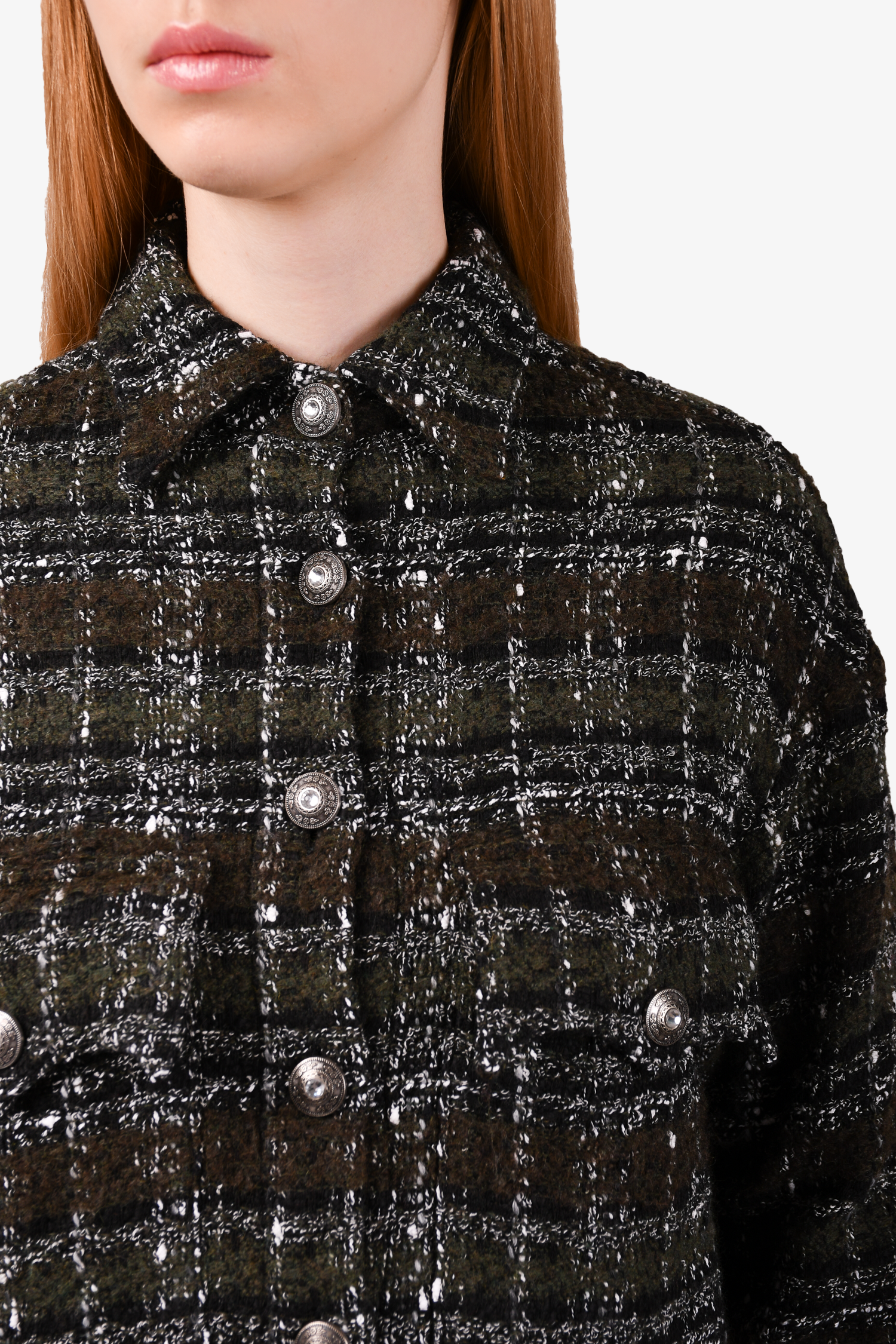 The Kooples Green/Black Tweed Button Down Sweater Jacket Est. Size S
