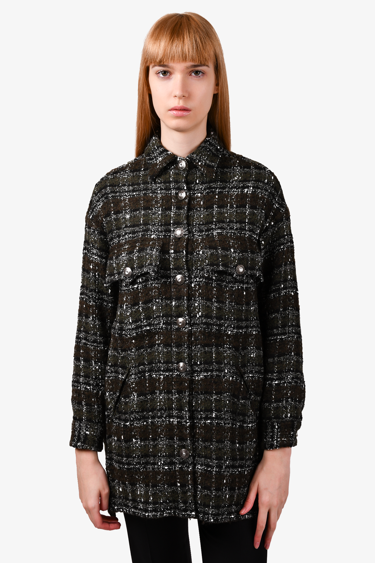 Refresh availabilityThe Kooples Green/Black Tweed Button Down Sweater Jacket. Front pockets. Unlined. Tonal stitching.