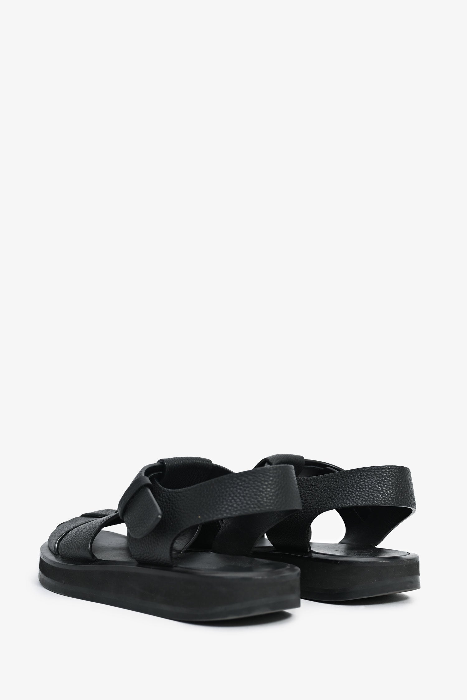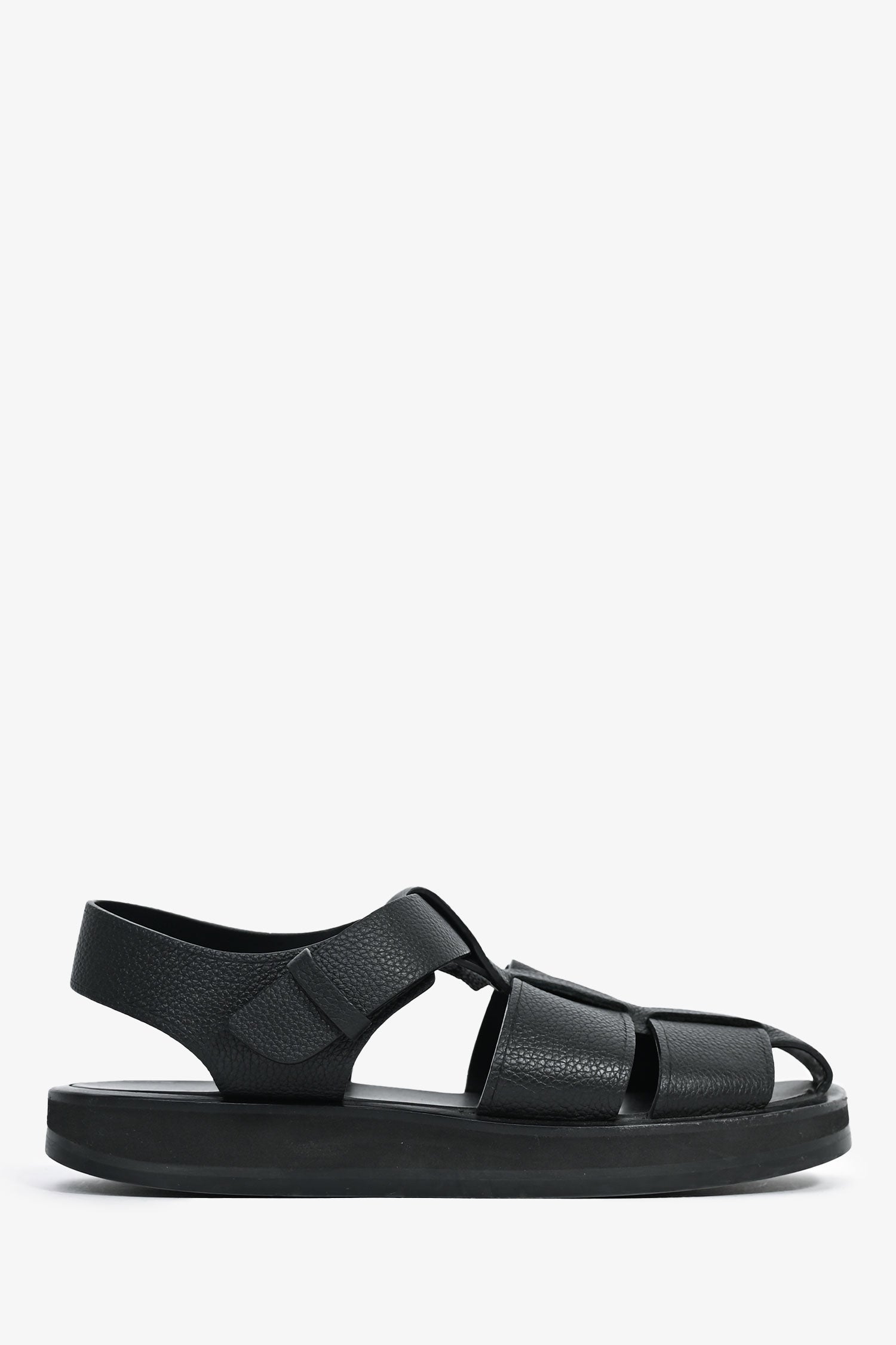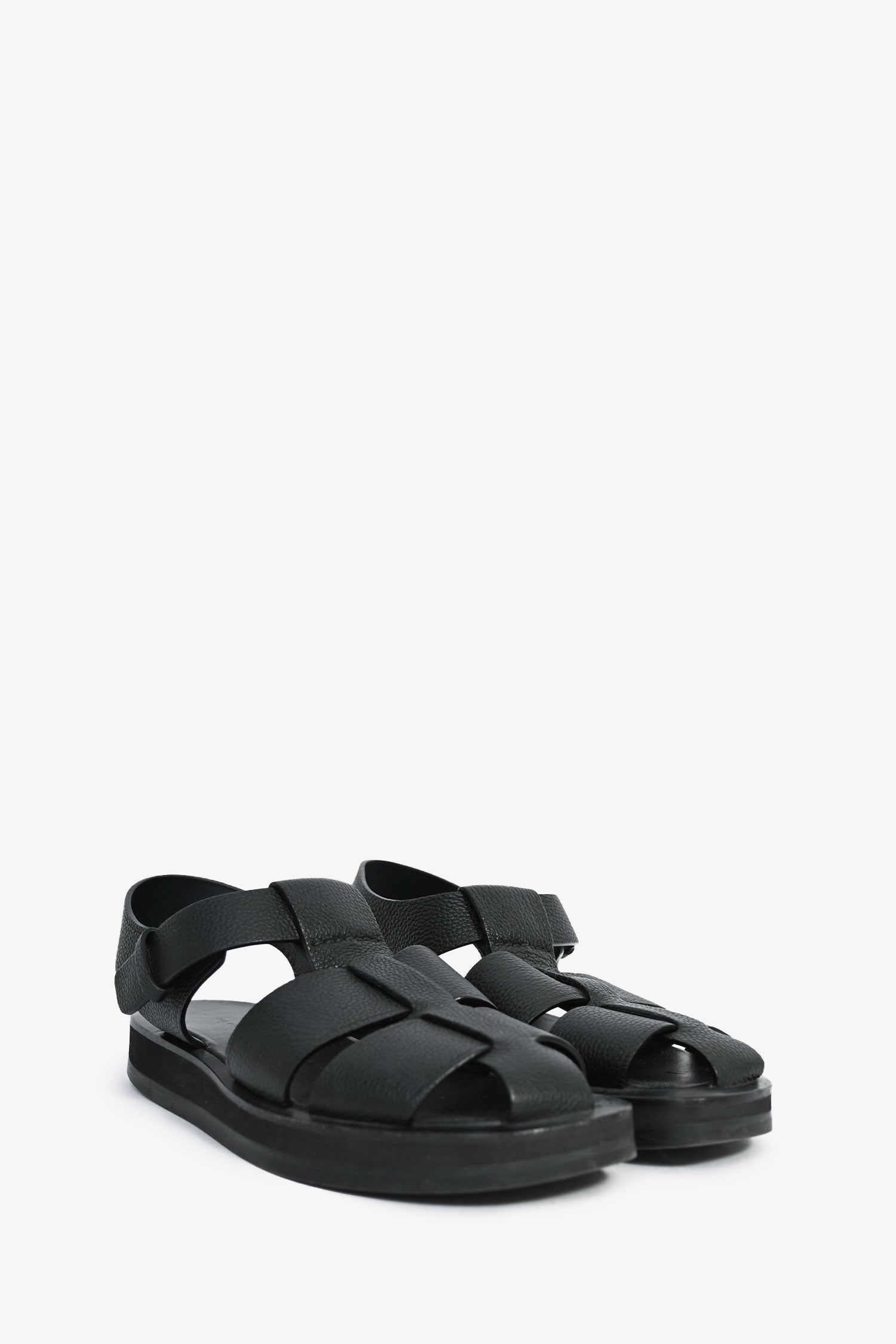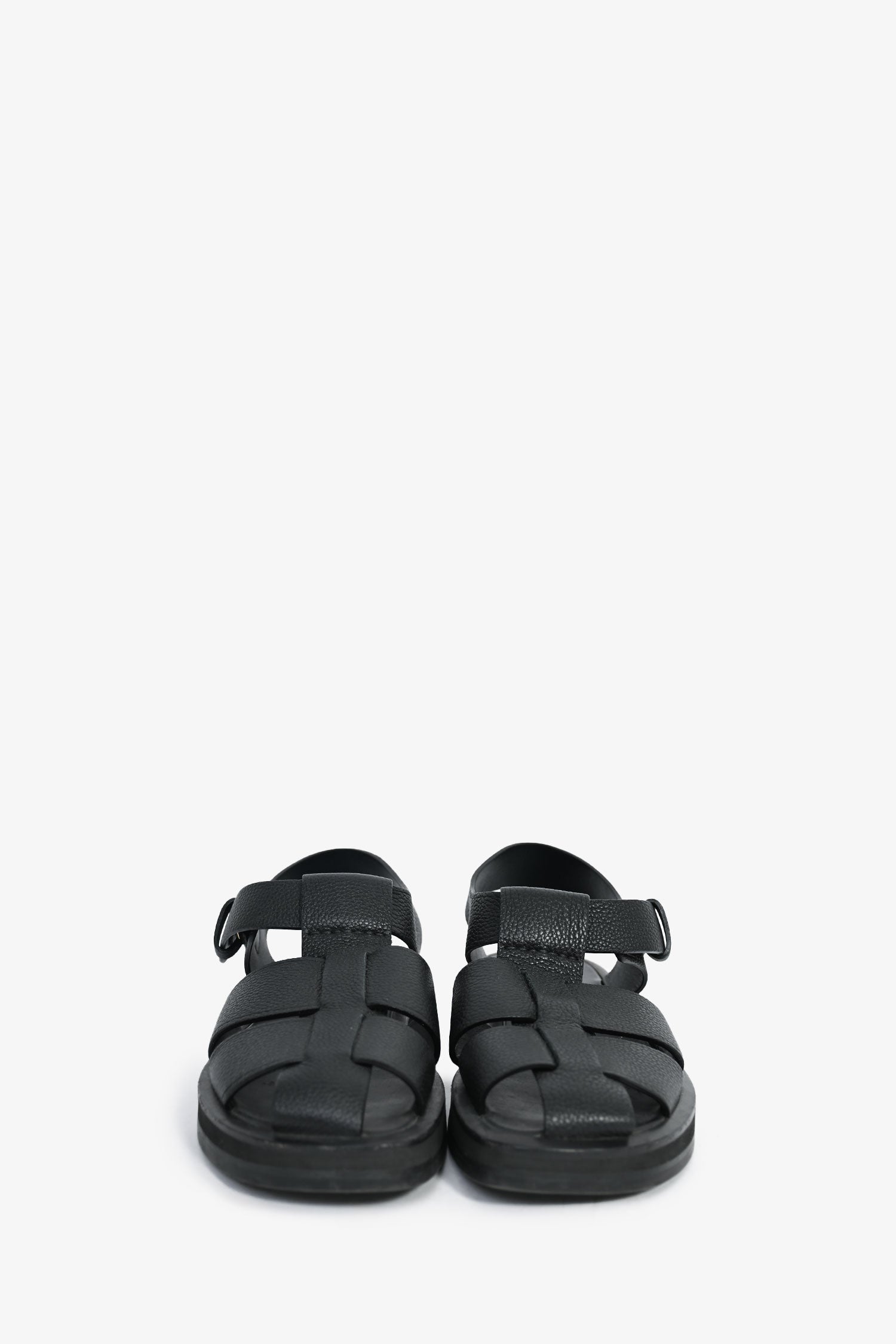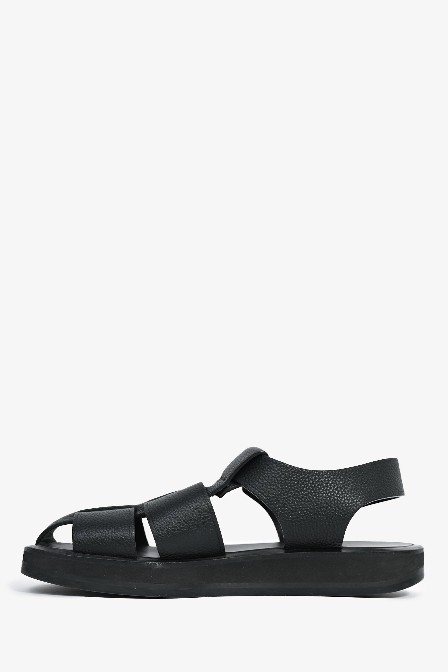 The Row Black Grained Leather Fisherman Sandals Size 37