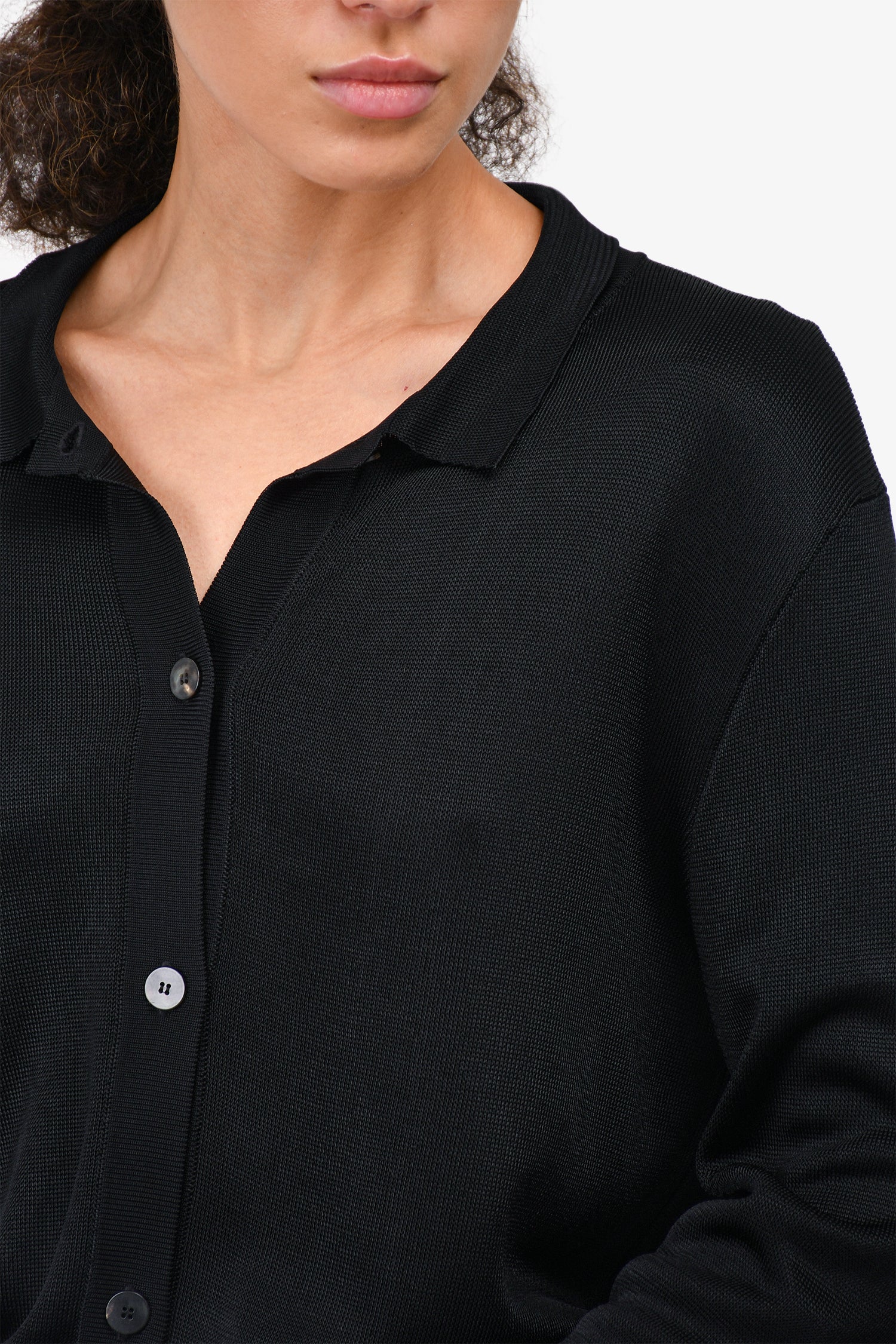 Refresh availabilityThe Row Black Knit Polo Button-Up Sweater. Button front. Tonal stitching.