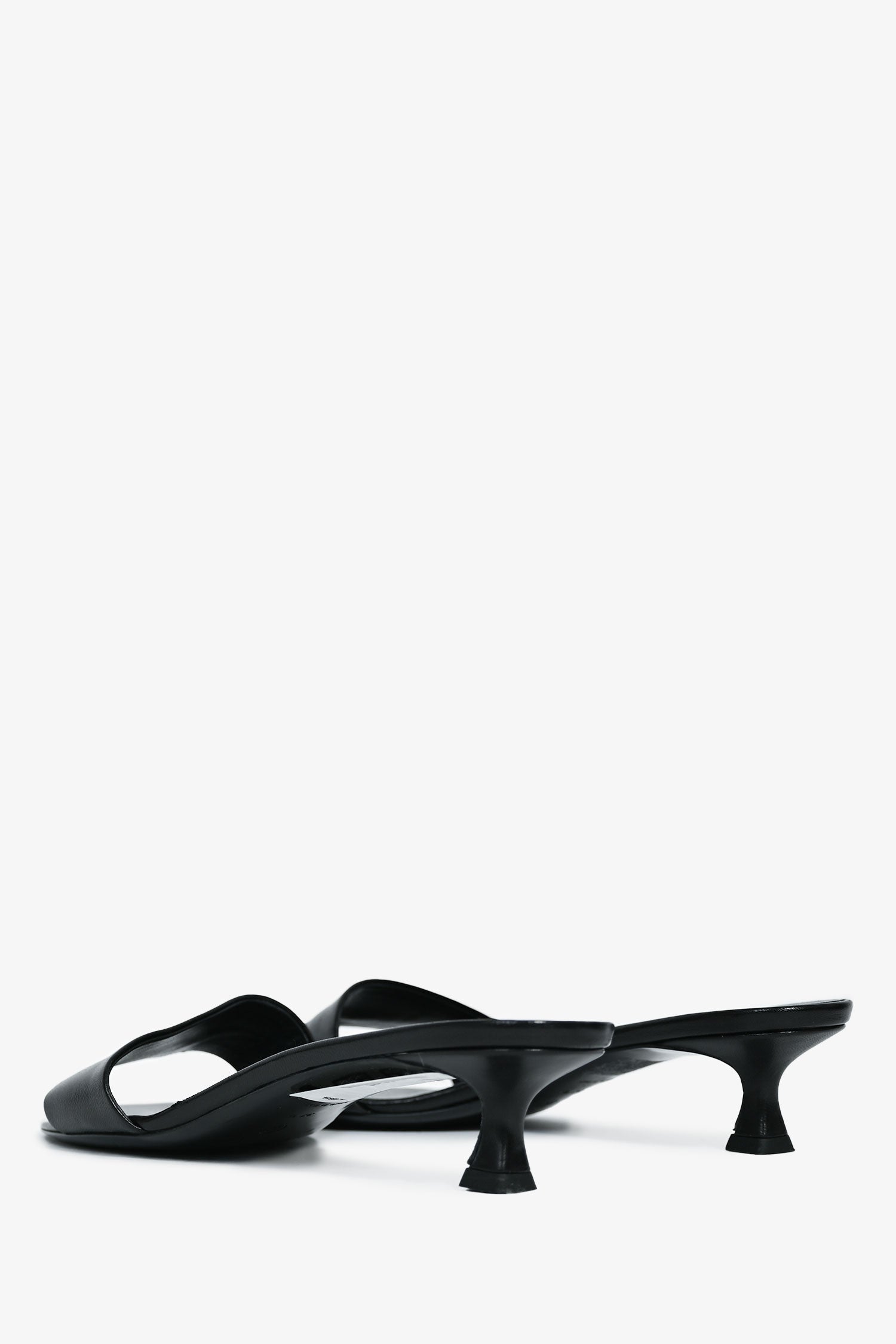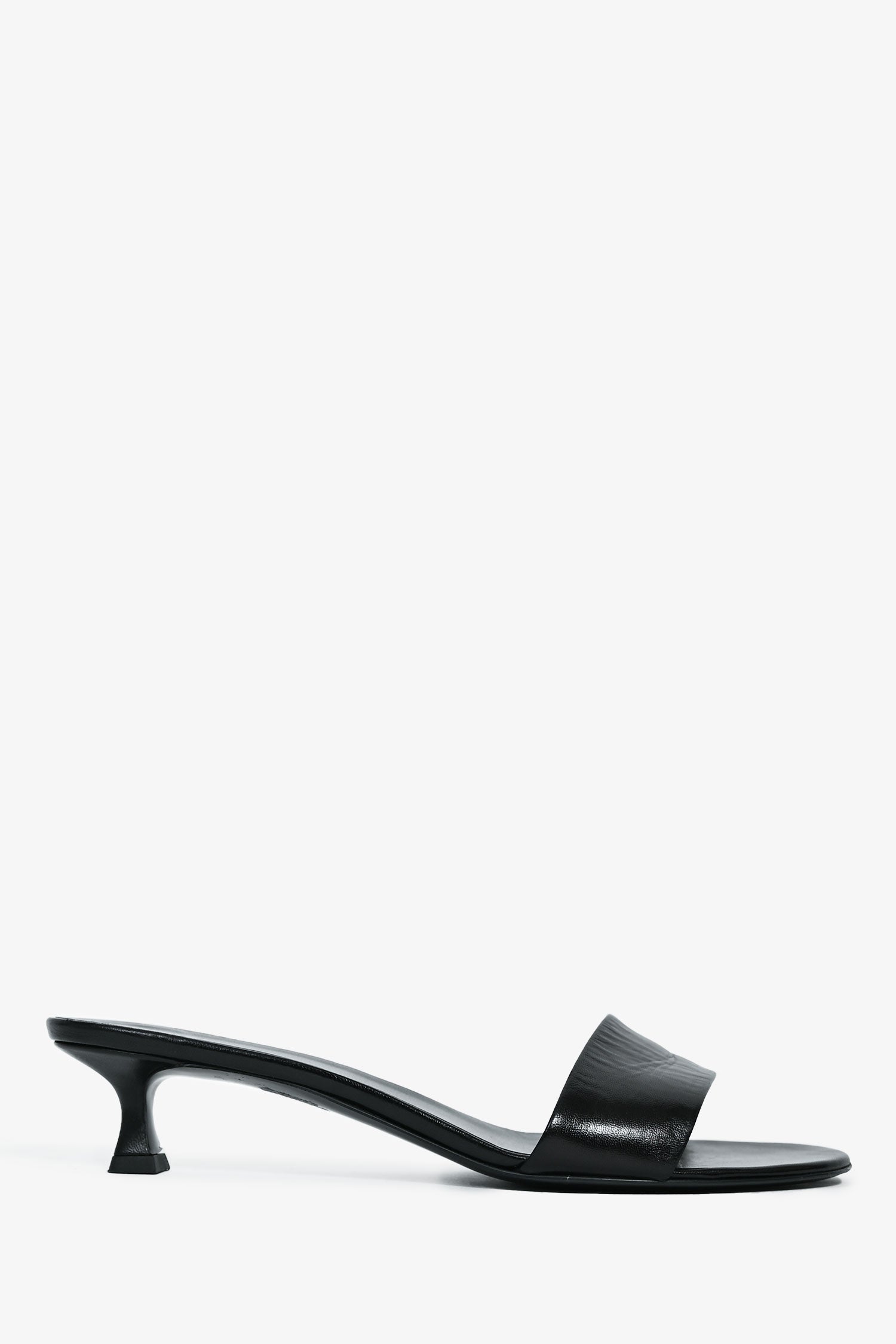 Refresh availabilityThe Row Black Leather Kitten Heeled Sandals. Open toe. Slip-on. Tonal stitching.