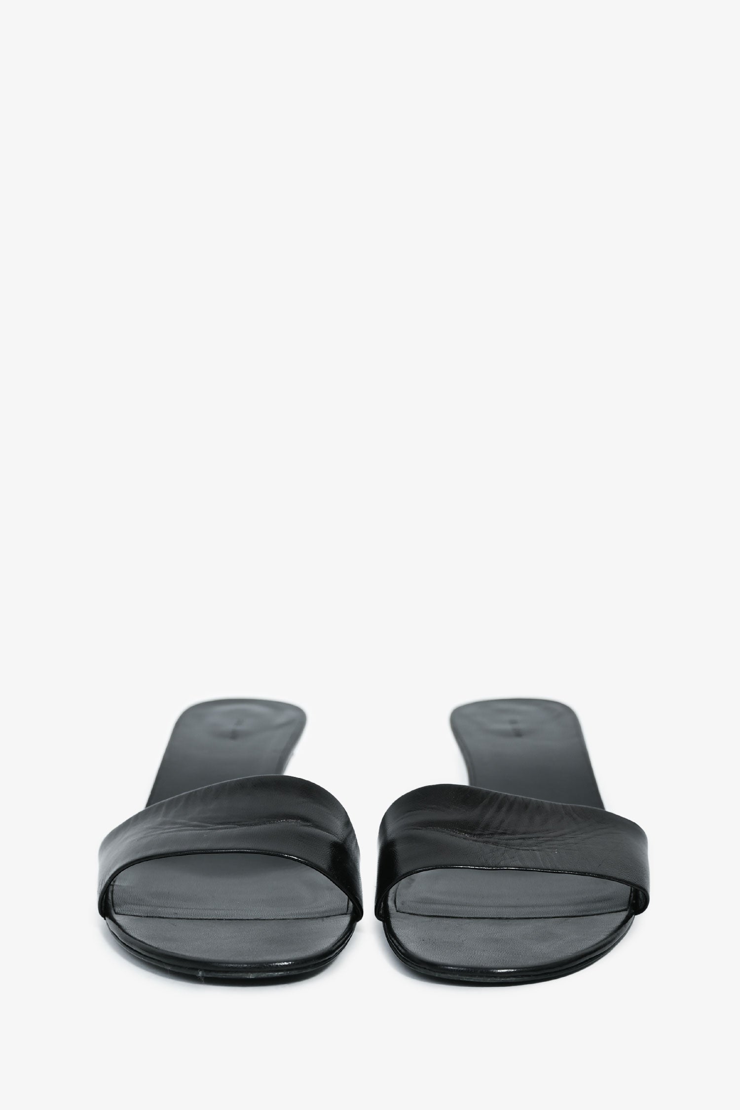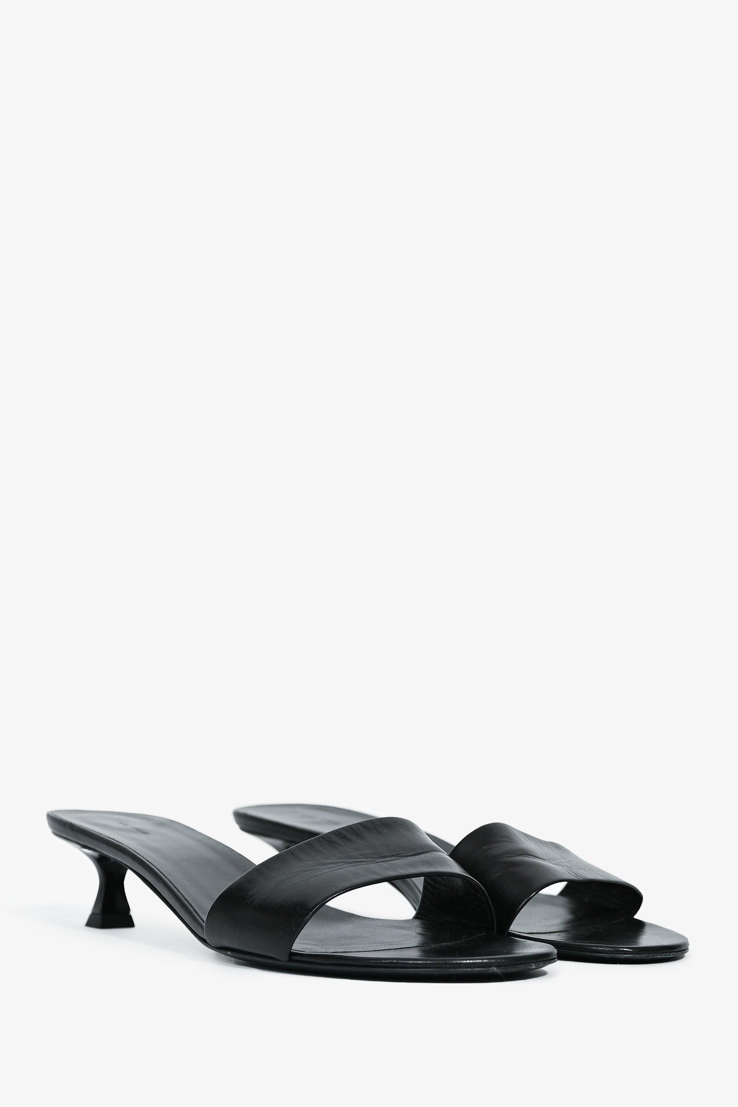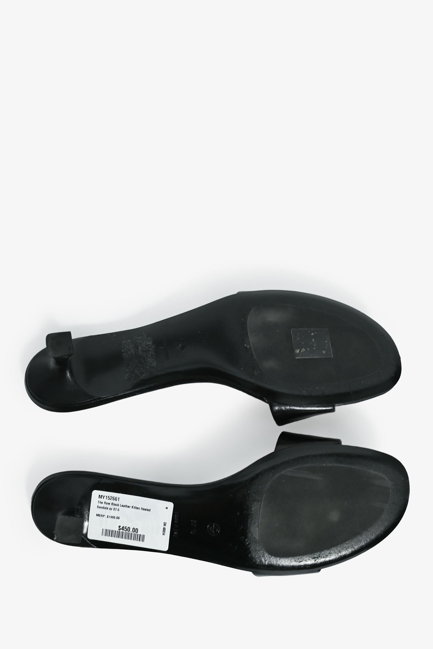 The Row Black Leather Kitten Heeled Sandals Size 37.5