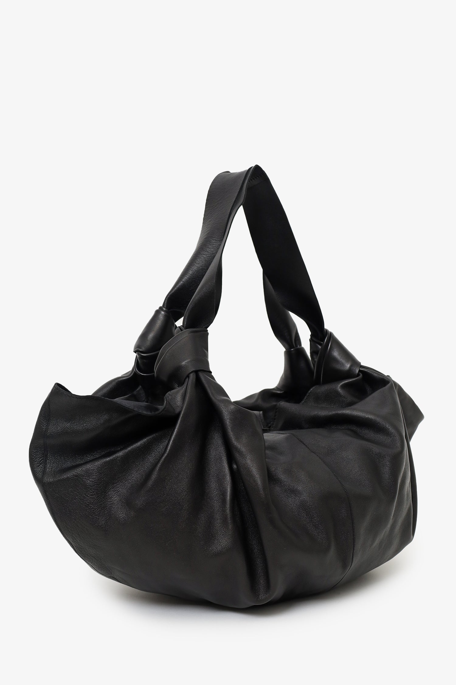 Refresh availabilityThe Row Black Leather Medium Ascot Knot Tote. Top magnetic closure. Twin knotted shoulder straps. Lined interior. Single interior zip pocket. Silver-tone hardware. Tonal stitching.
