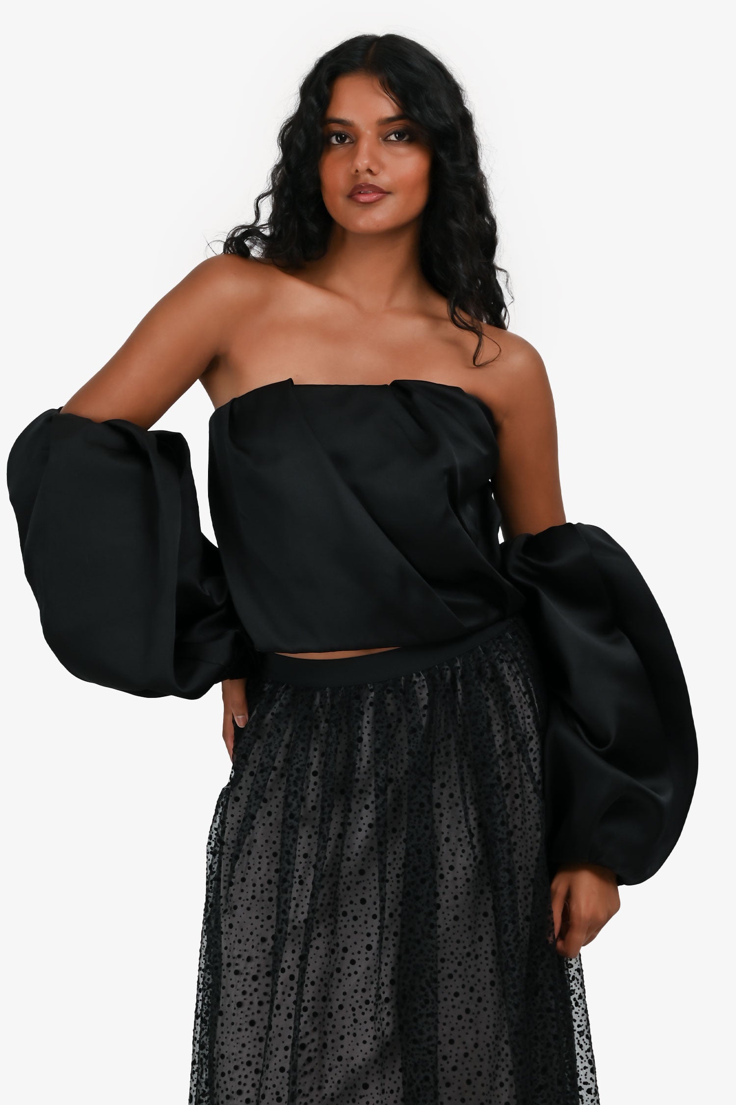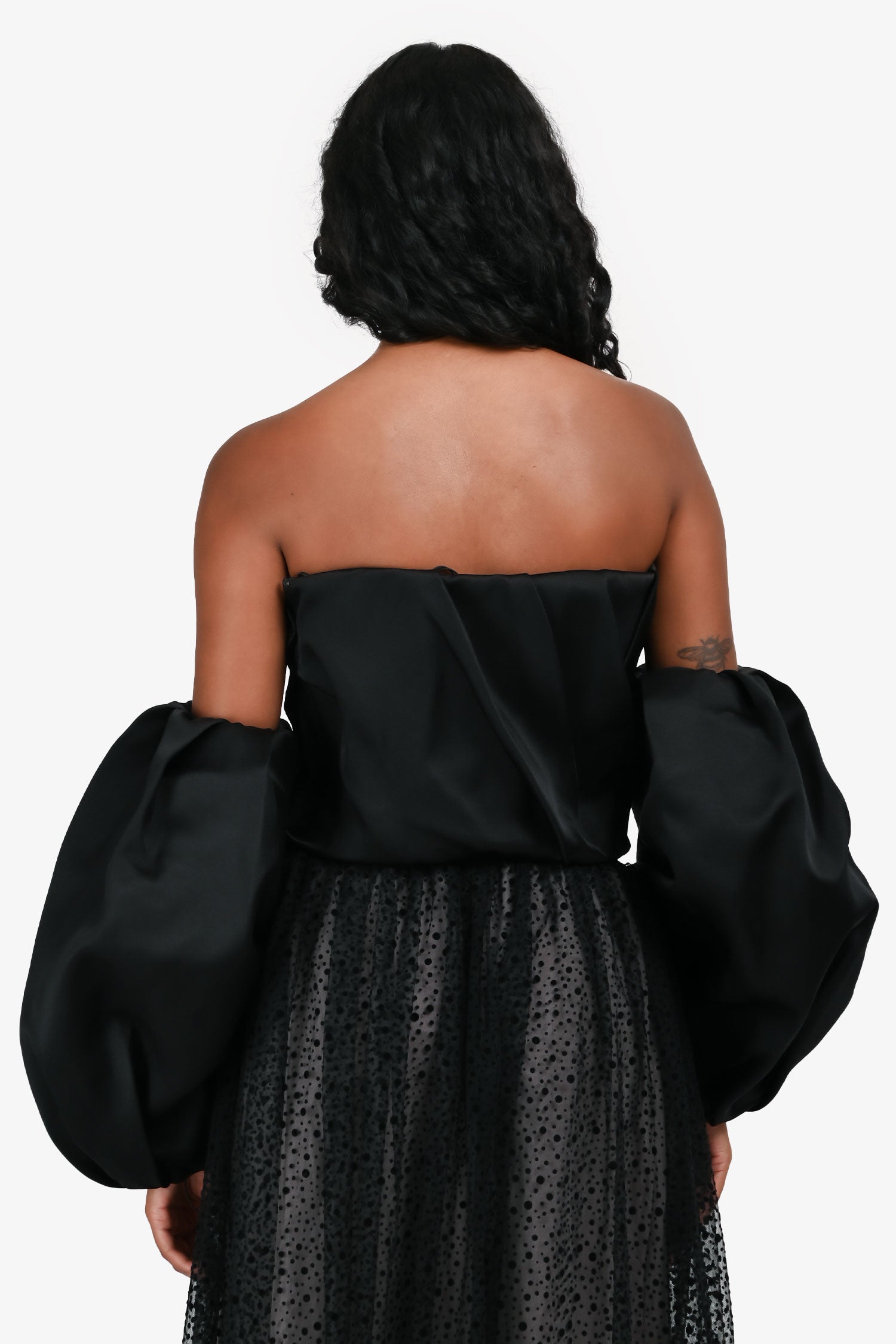 The Row Black Silk Strapless Corset with Detachable Puff Sleeves Size 4