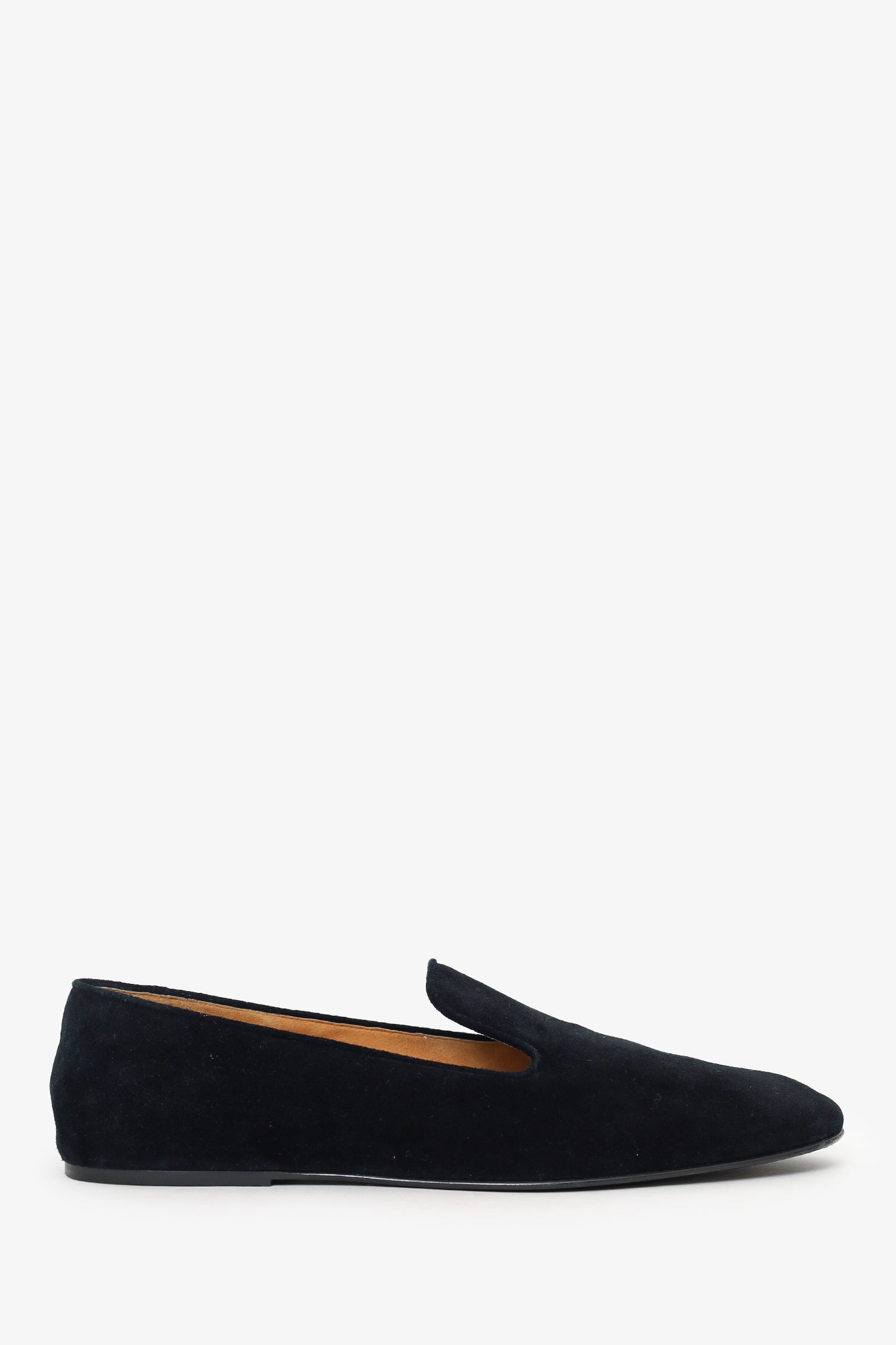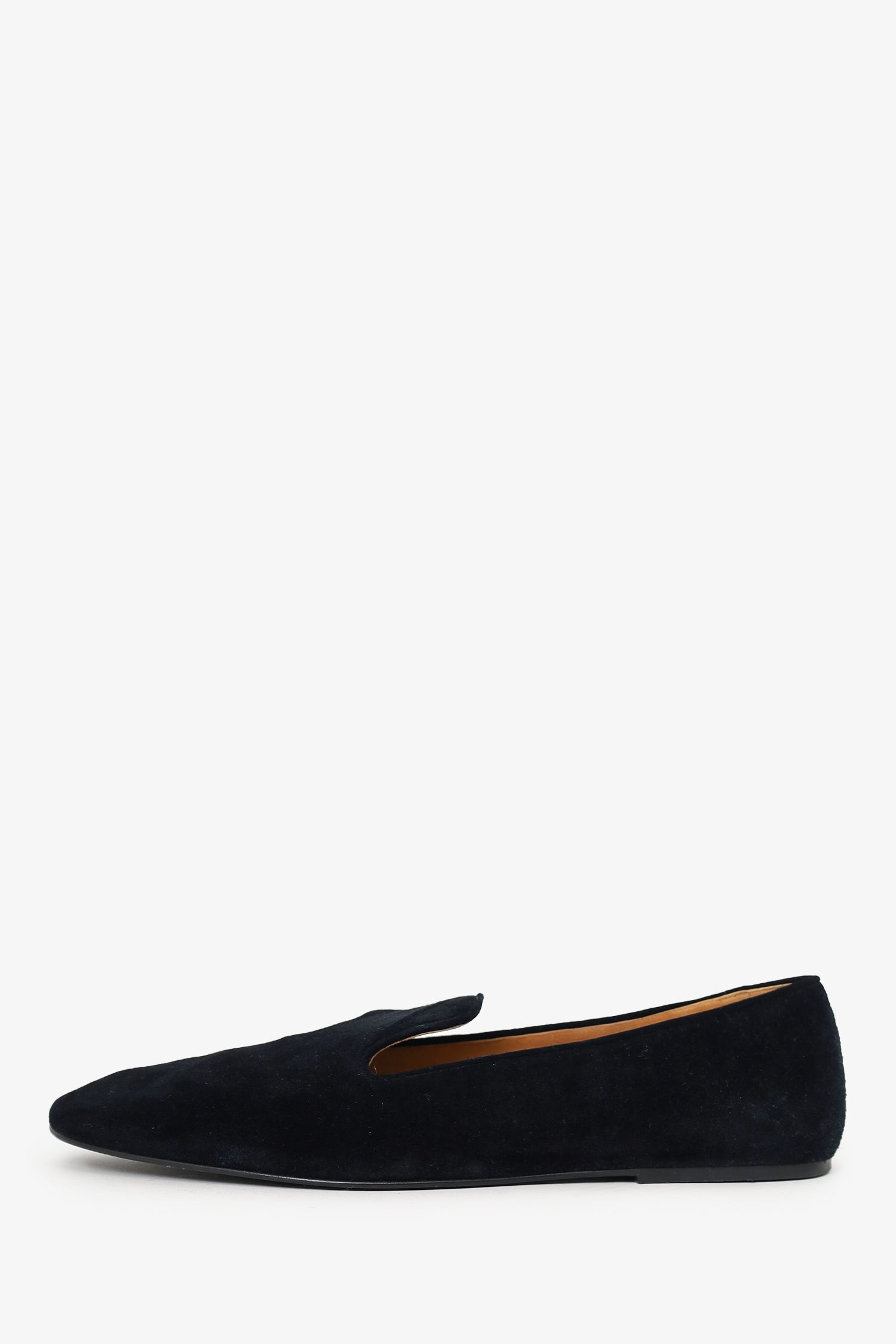 Refresh availabilityThe Row Black Suede Loafer. Slip-on. Pointed-toe. Tonal stitching.