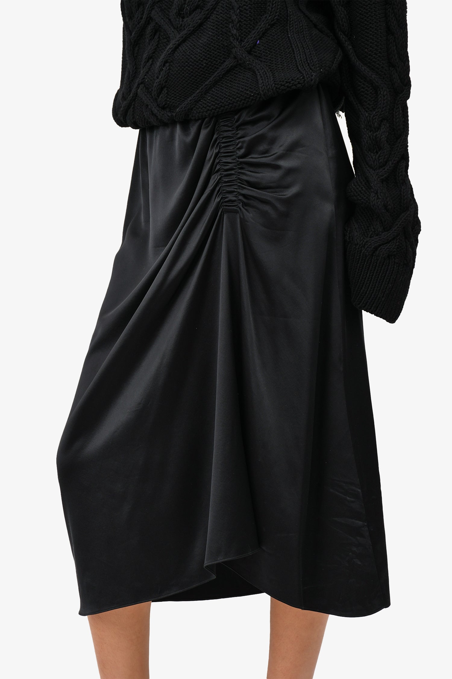 Refresh availabilityTheory Black Silk Ruched Midi Skirt. Elasticized waist. Unlined.