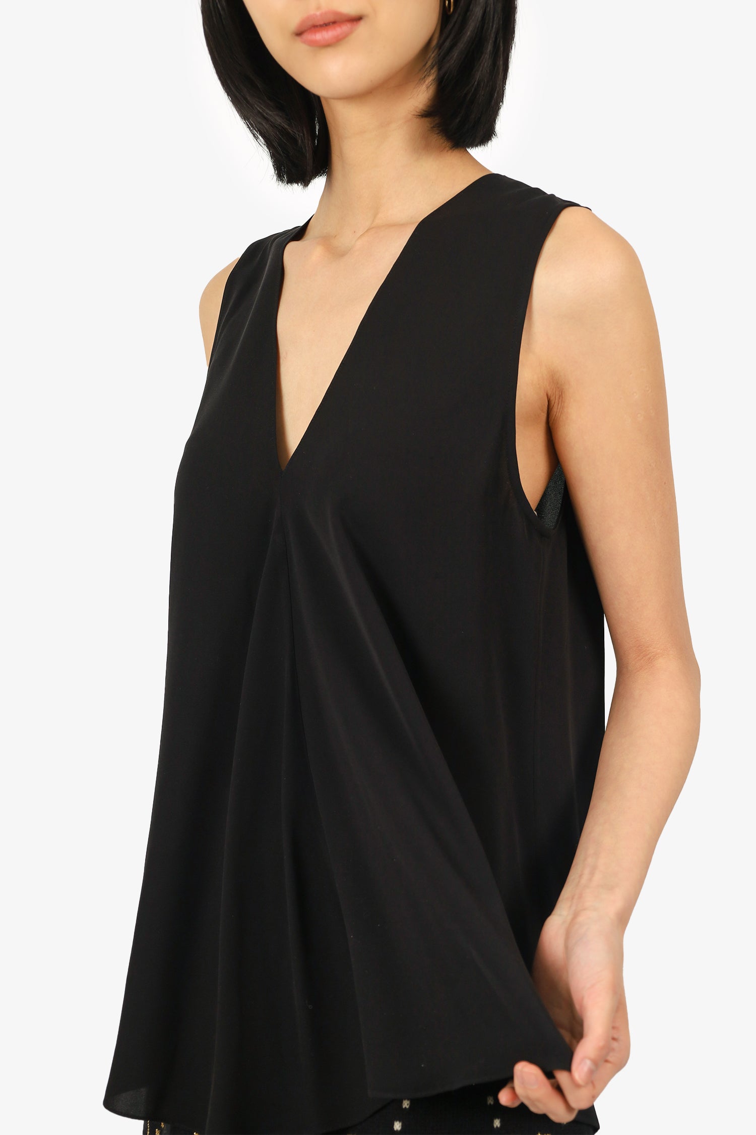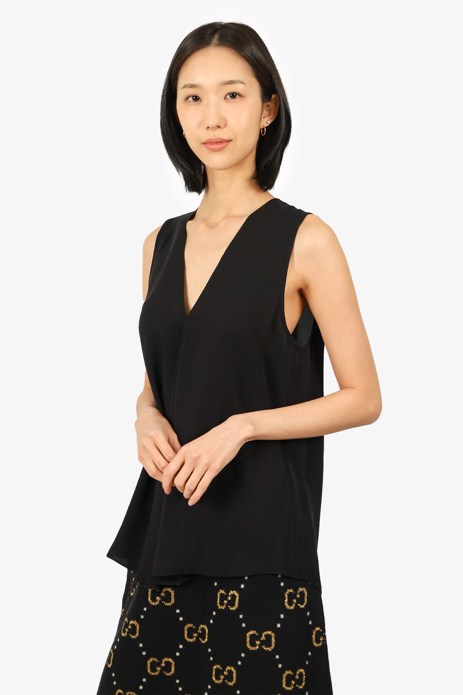 Theory Black Silk Sleeveless V-Neck Top Size M