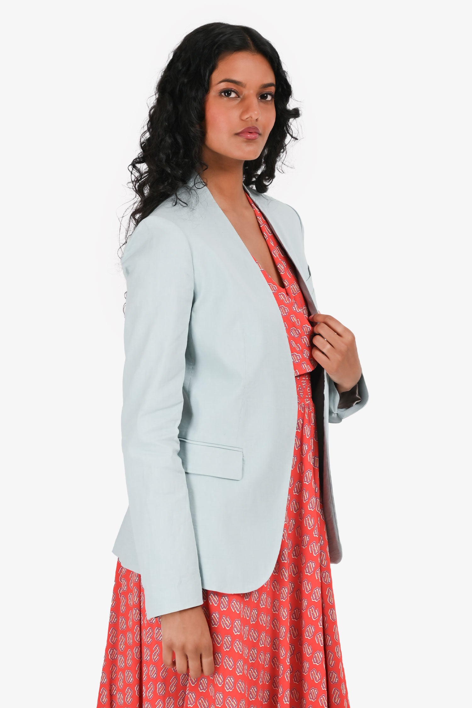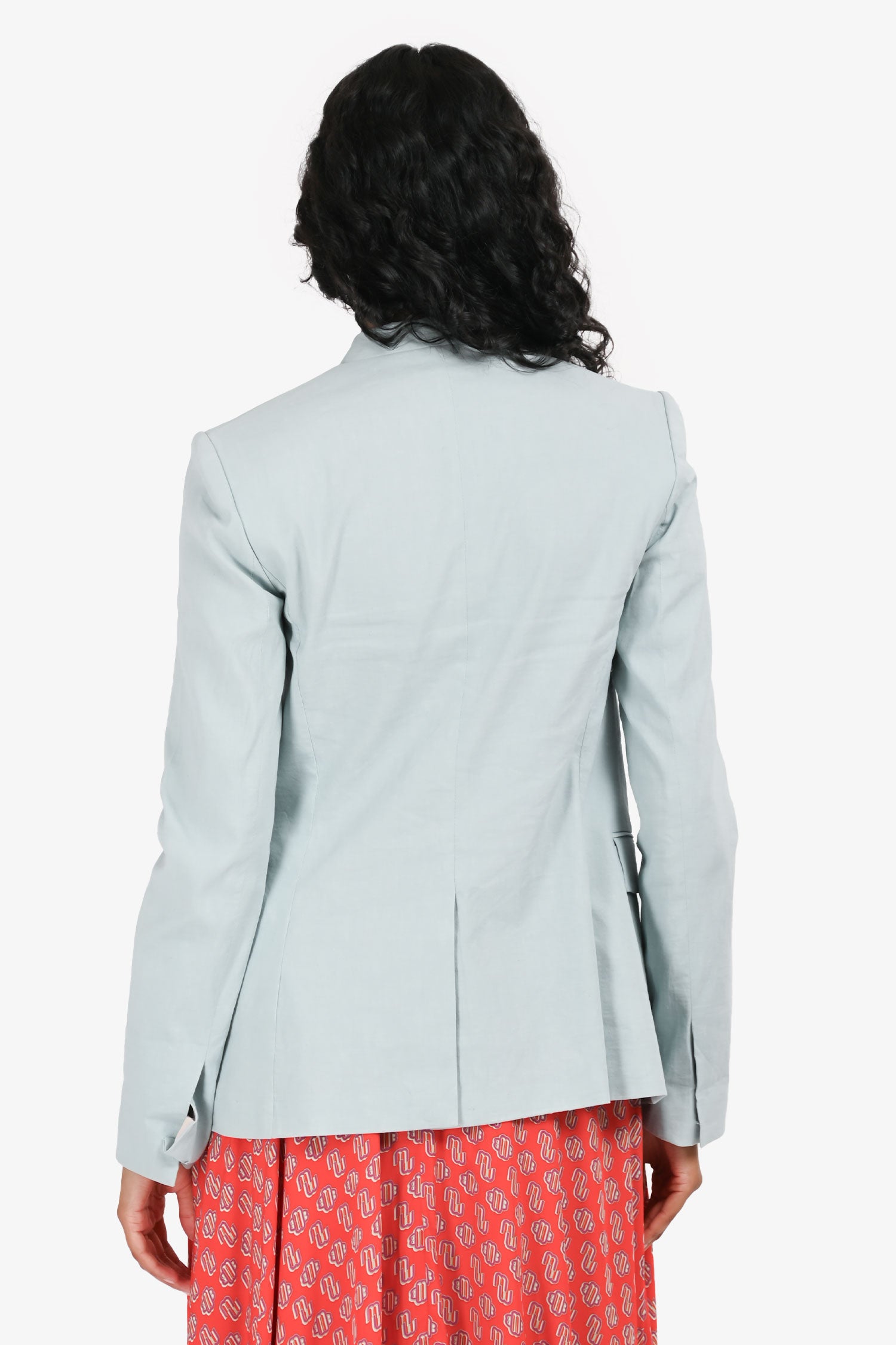 Refresh availabilityTheory Blue Linen Single Breasted Blazer. Three front faux pockets. Open front. Half-lined interior. Tonal stitching.
