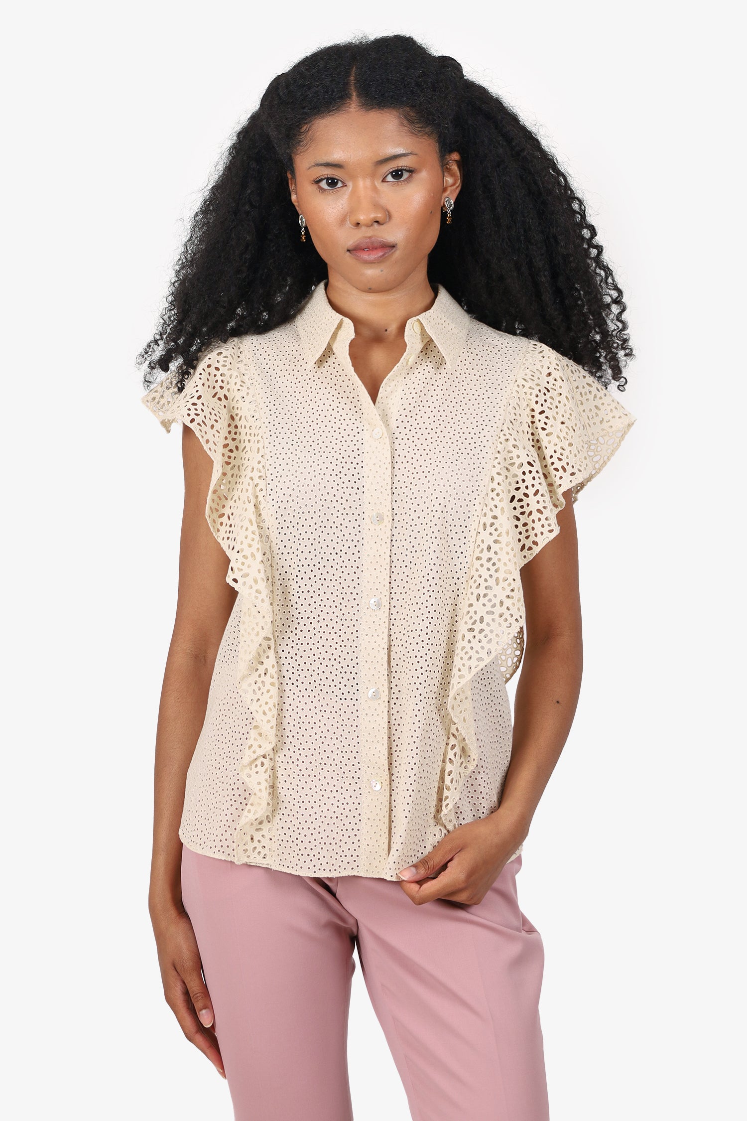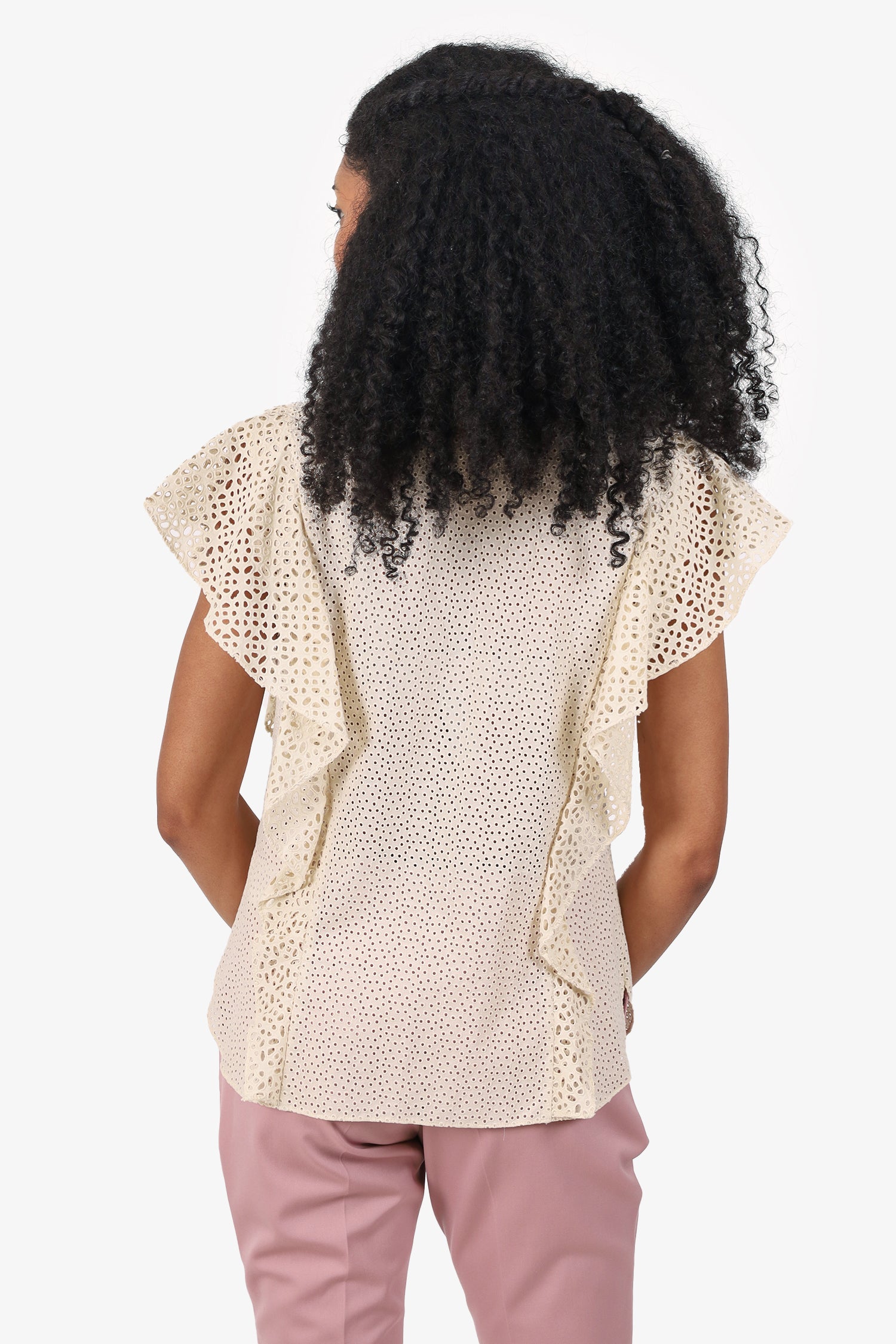 Theory Cream Ruffle Detail Eyelet Top Size M