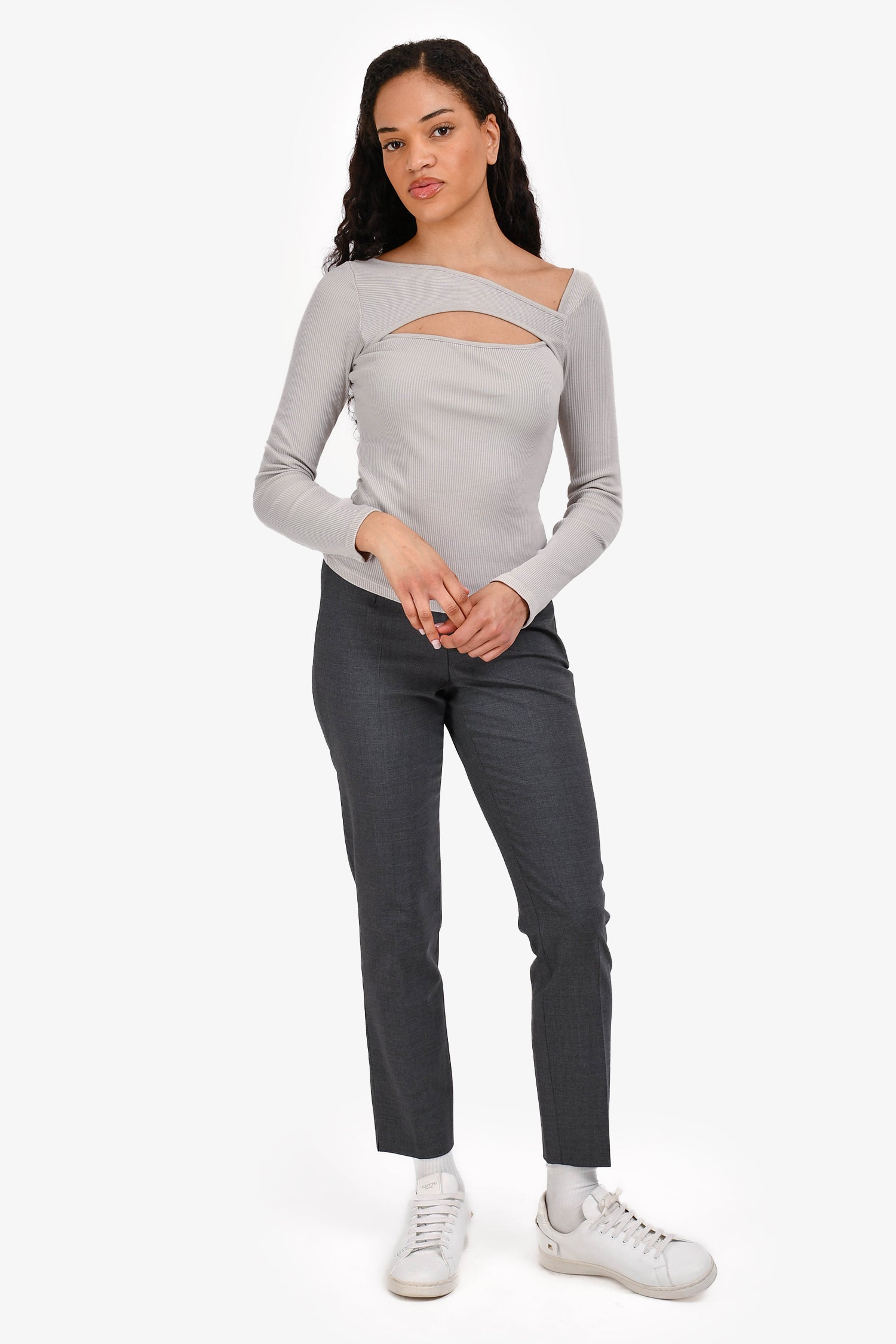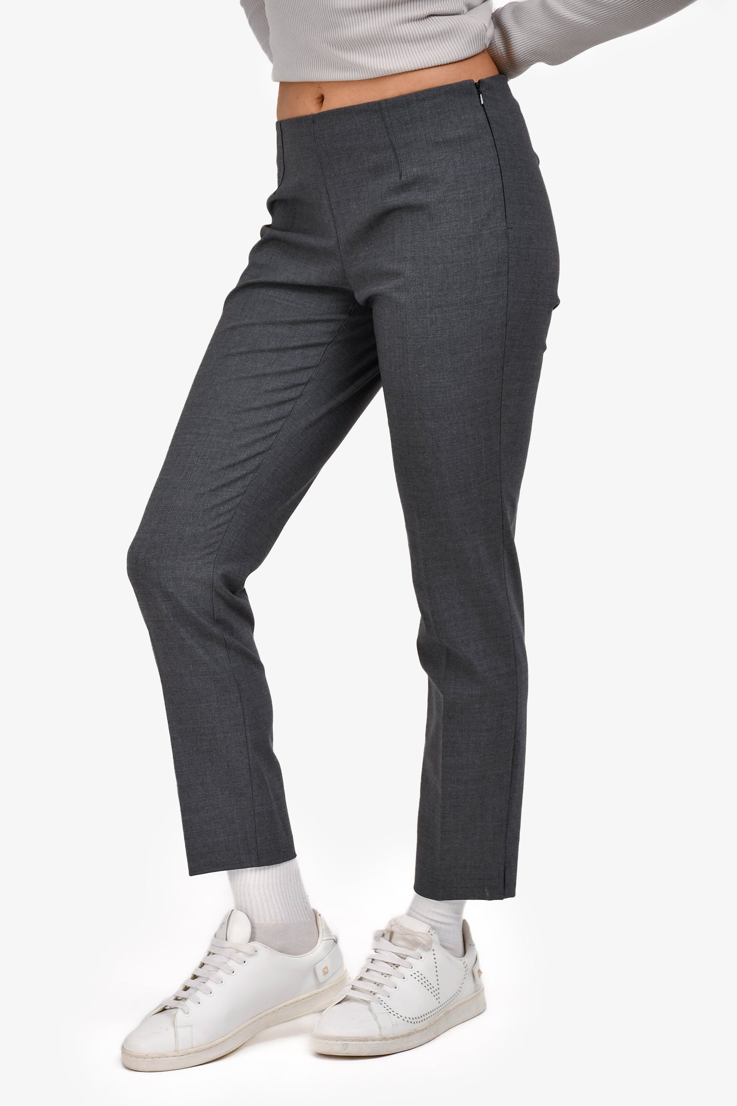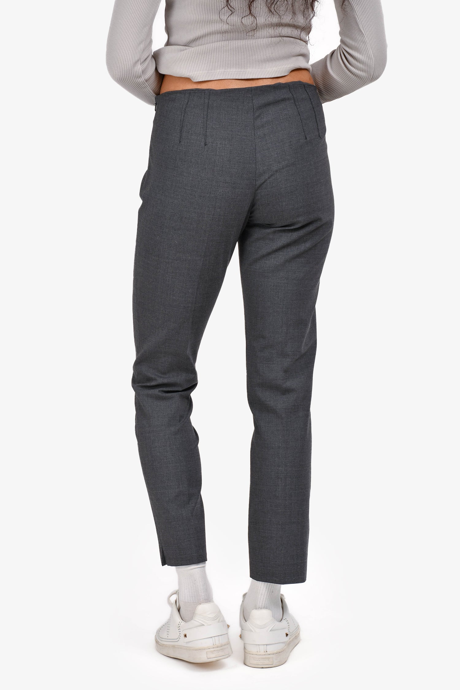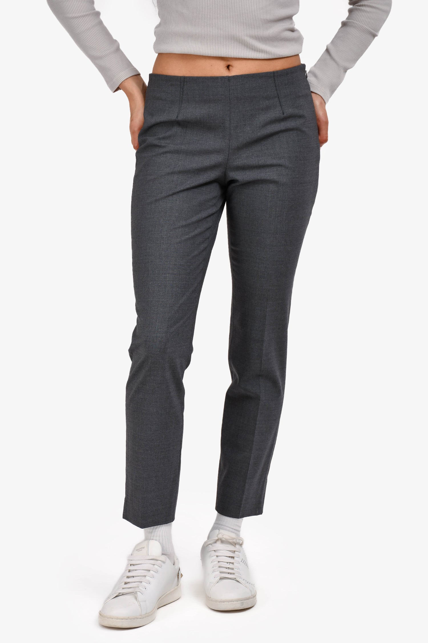 Refresh availabilityTheory Grey Wool Blend Trousers. Side zip fly with hook-and-bar closure. Side and back welt pockets. Tonal stitching.