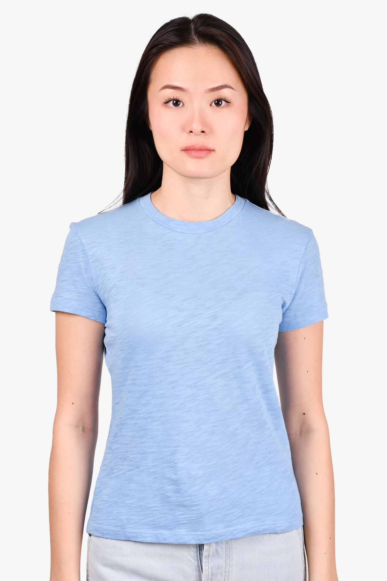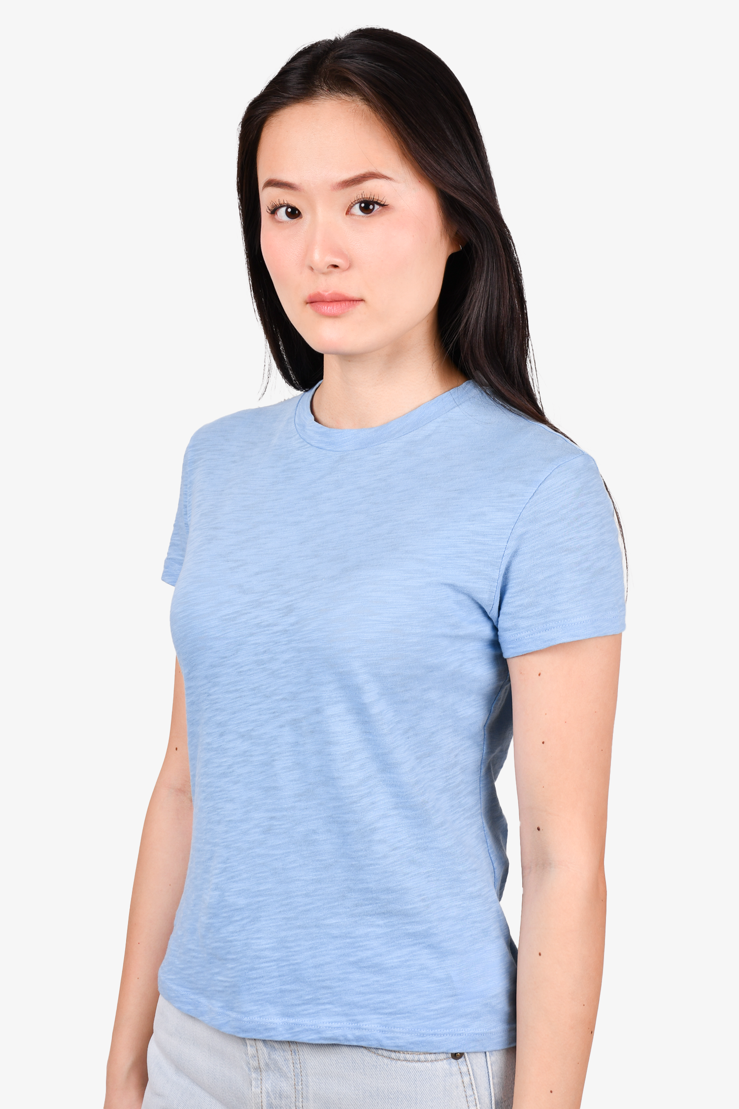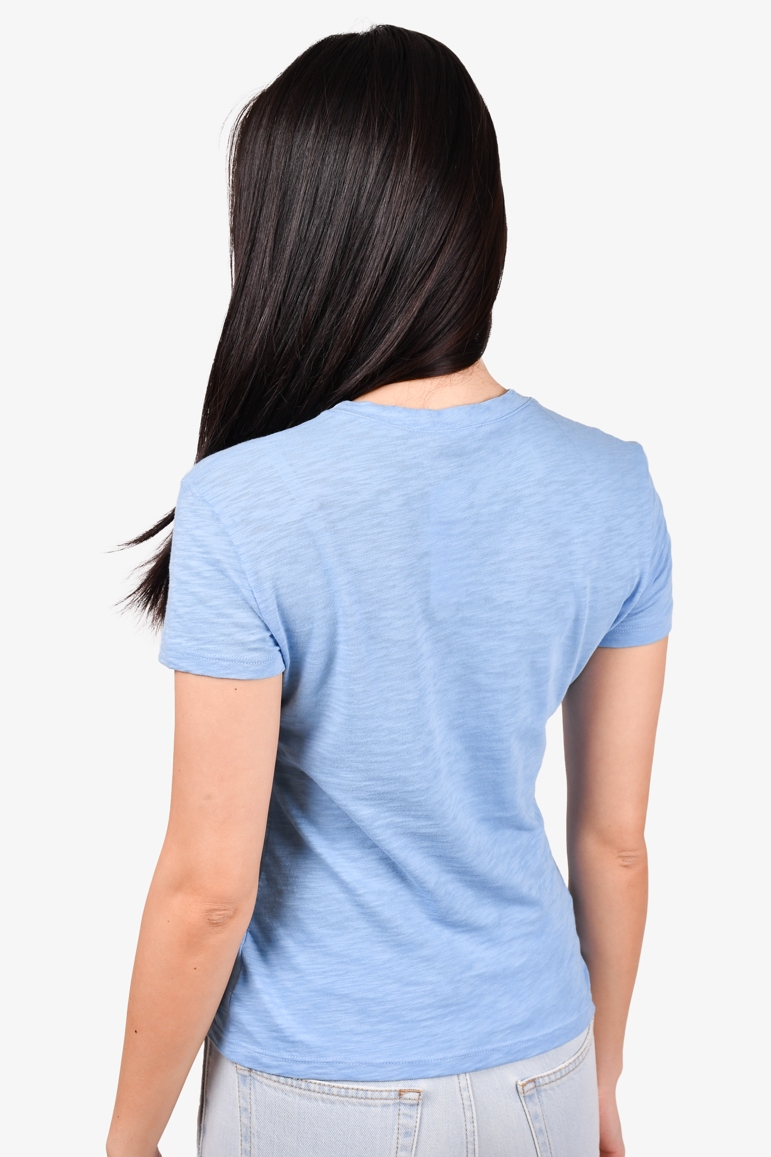 Refresh availabilityTheory Light Blue Cotton Top. Round neckline. Tonal stitching.
