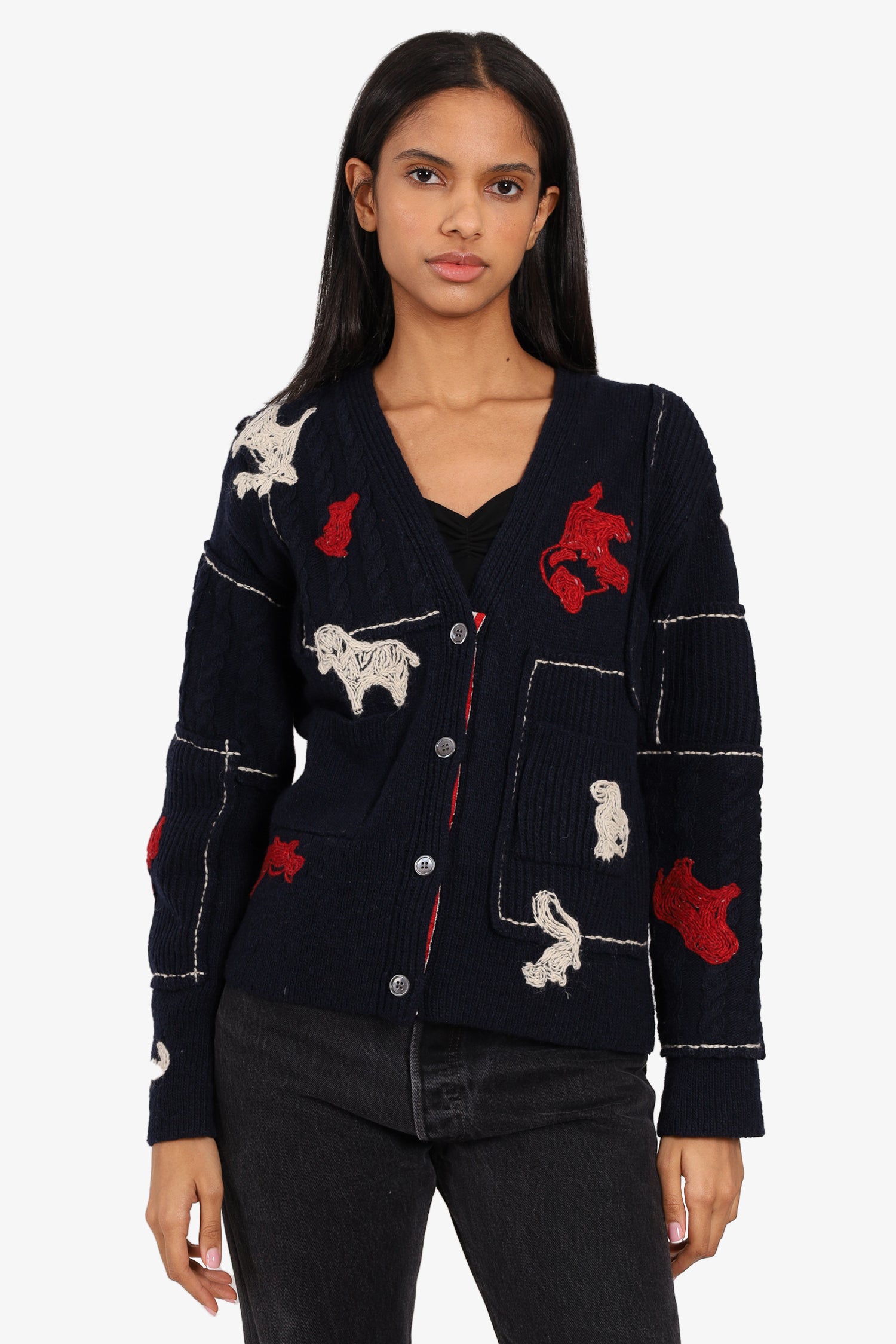 Thom Browne Navy Wool Dog Cardigan Size 40