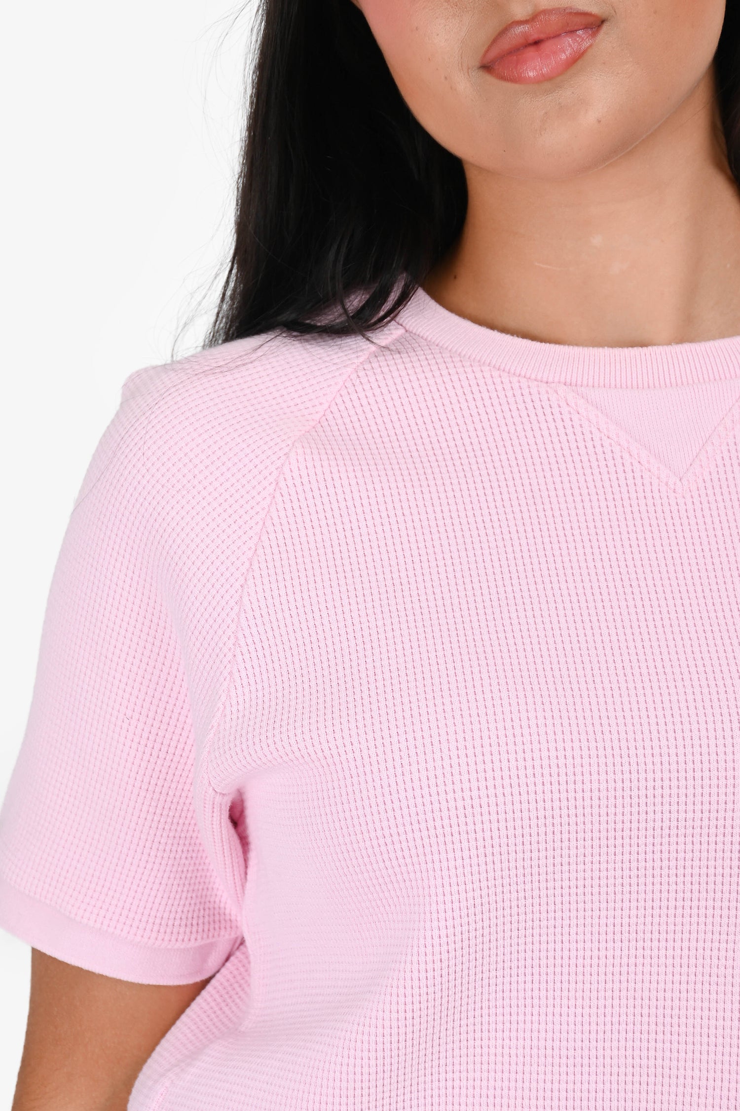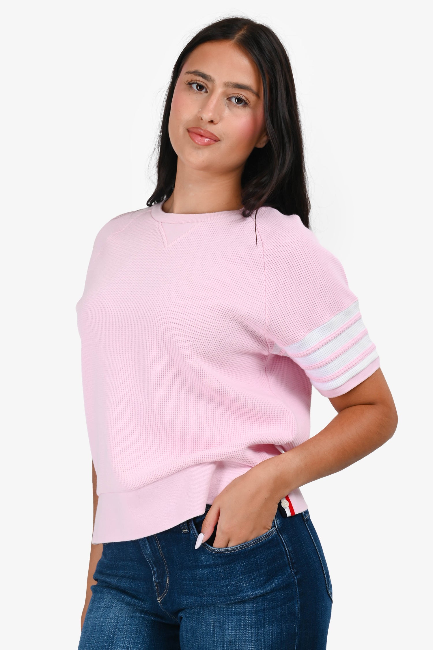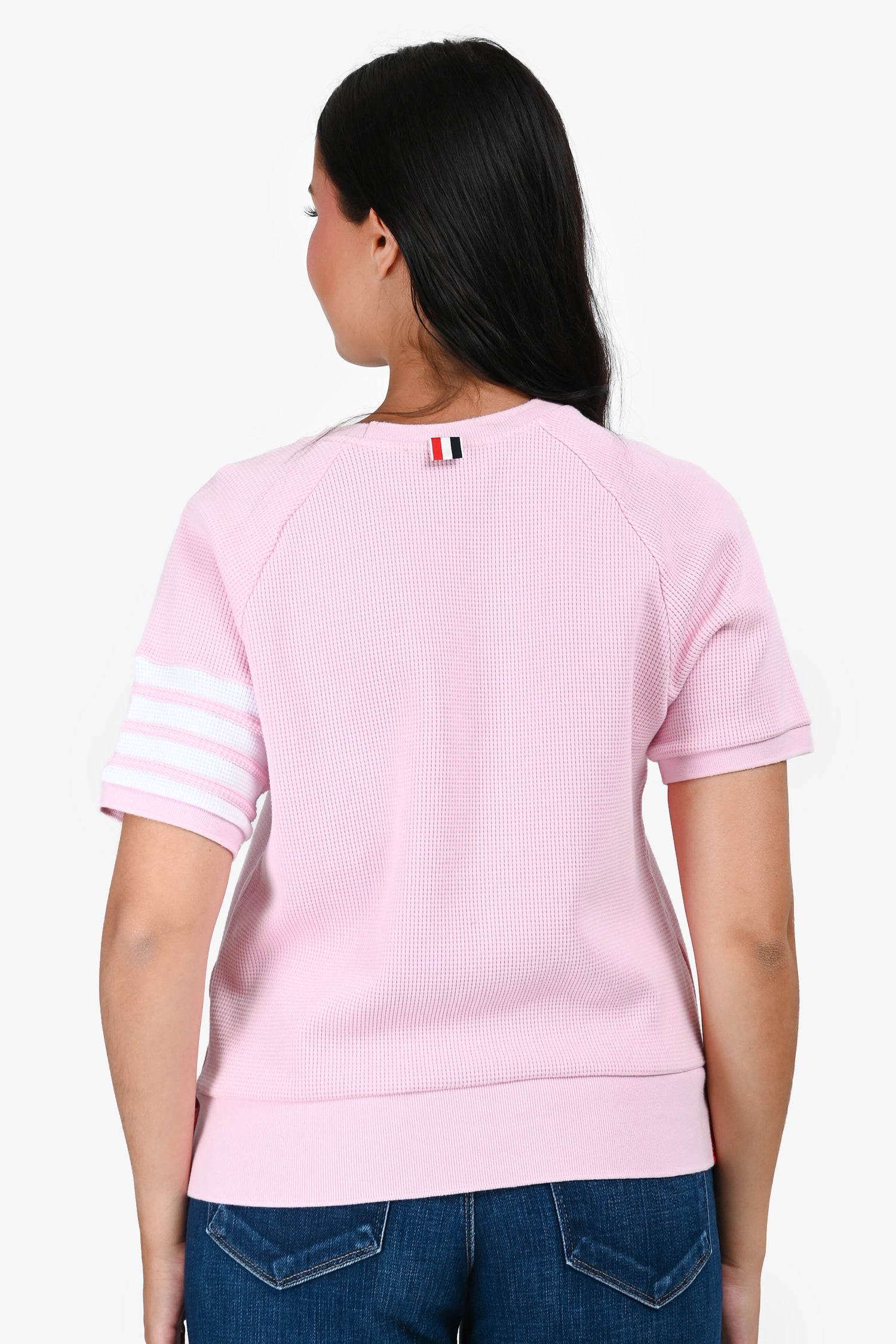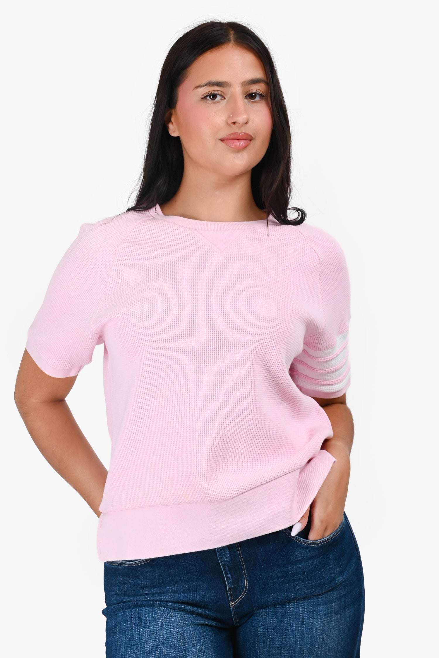Thom Browne Pink Cotton Waffle White Striped Sleeve T-Shirt Size 3