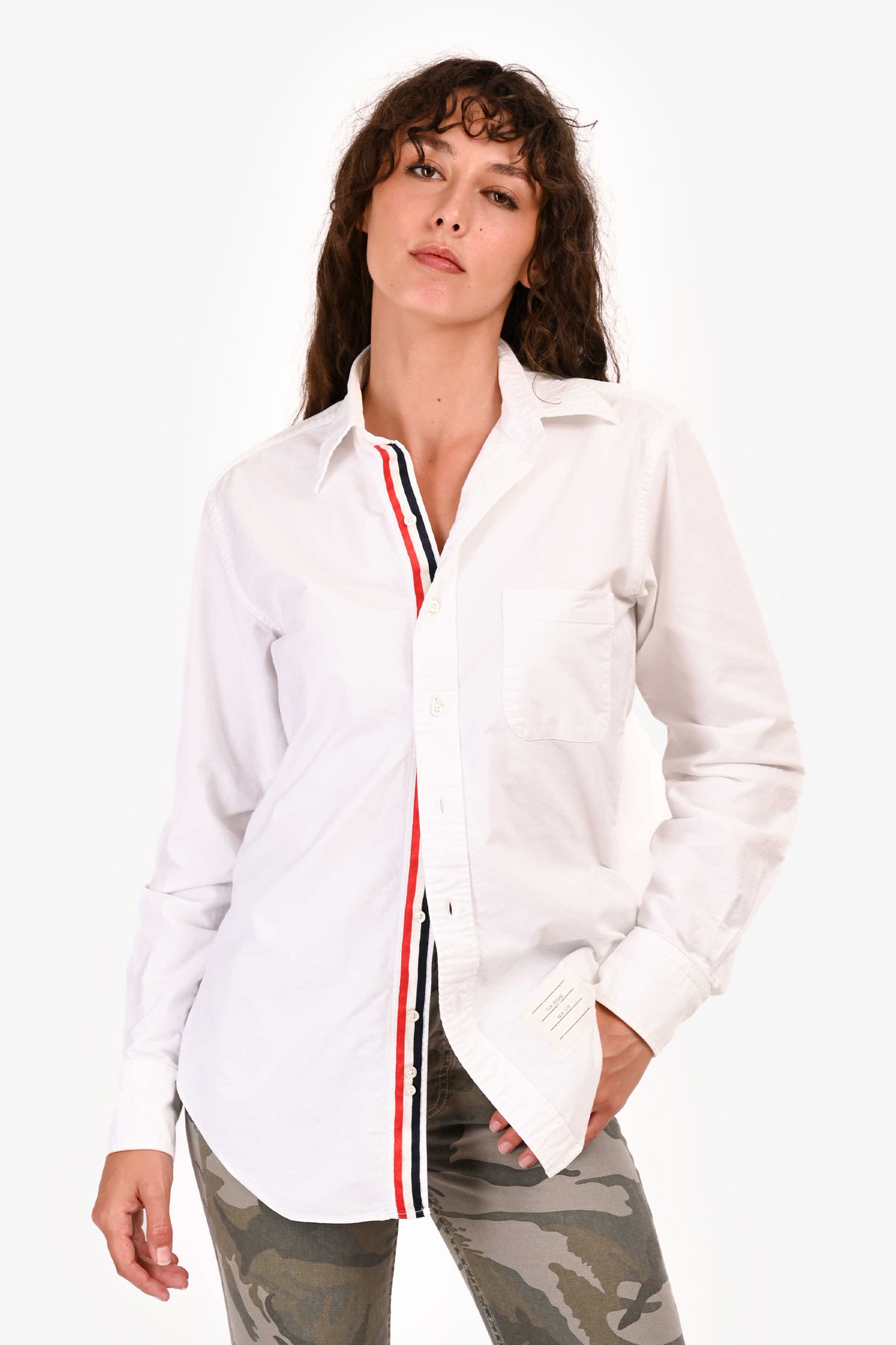 Thom Browne White Cotton Button Down Striped Detail Shirt Size 2