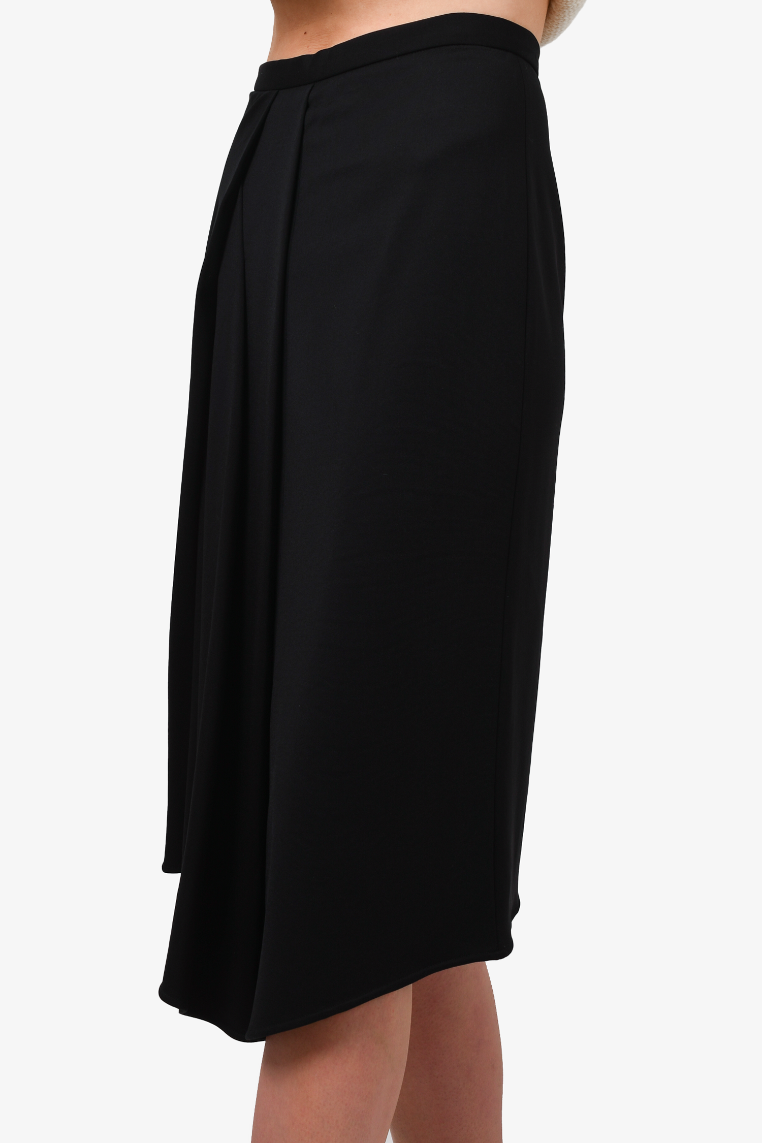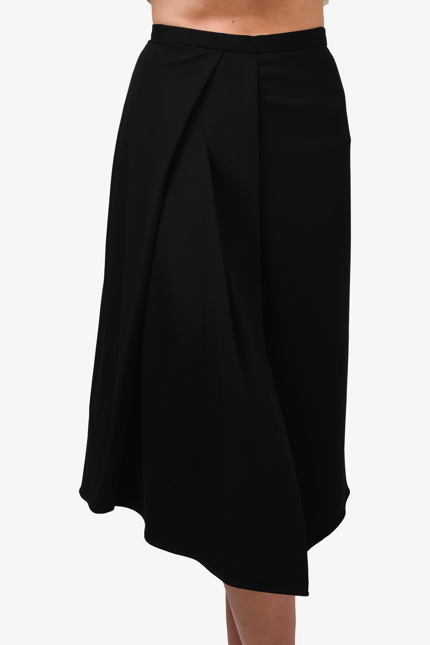 Refresh availabilityTibi Black Midi Front Pleat Skirt. Rear zip and hook closure. Unlined. Tonal stitching.