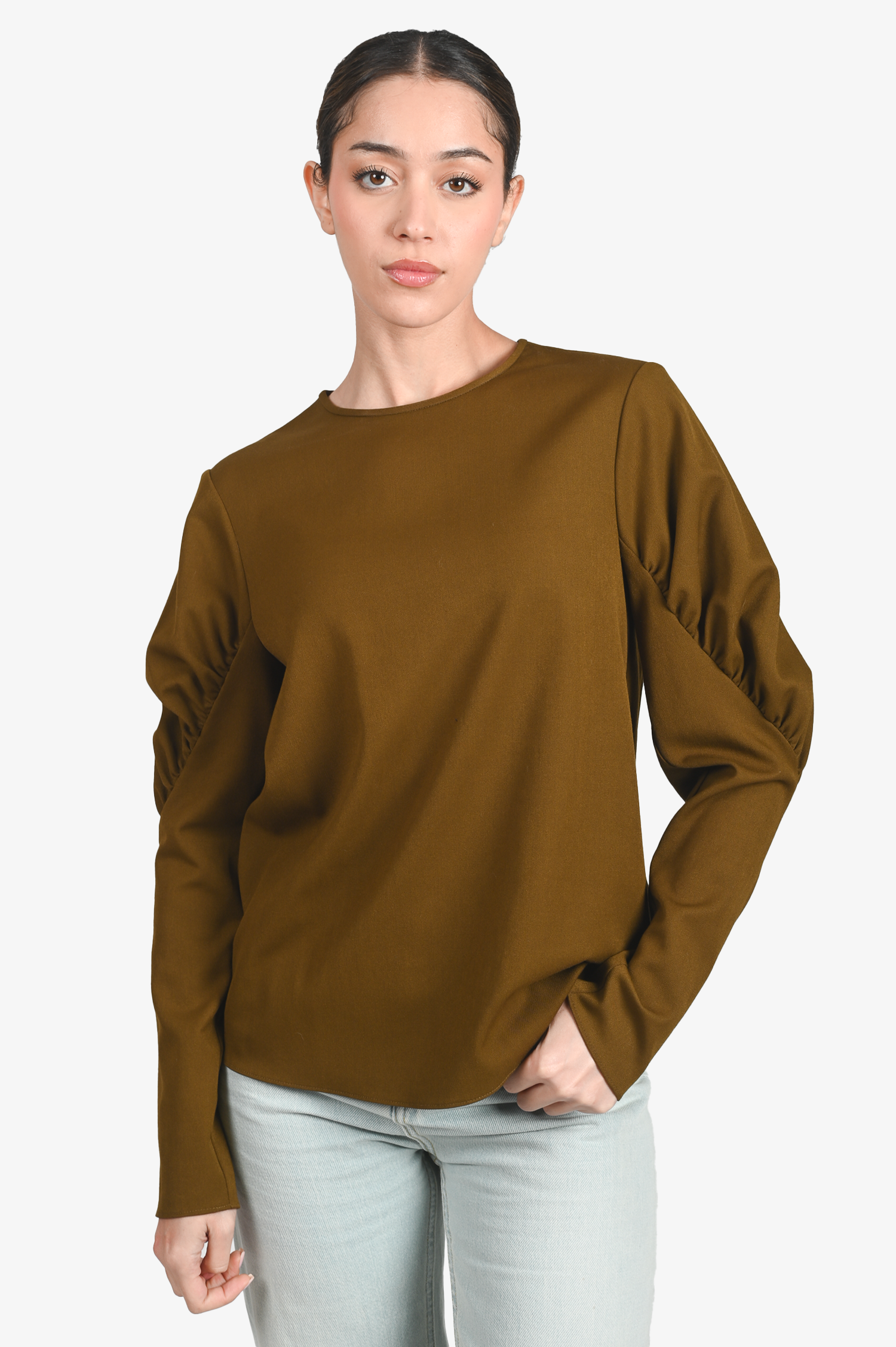 Refresh availabilityTibi Green Puff Sleeve Top. Rear zip and snap-button closure. Round neck. Tonal stitching.