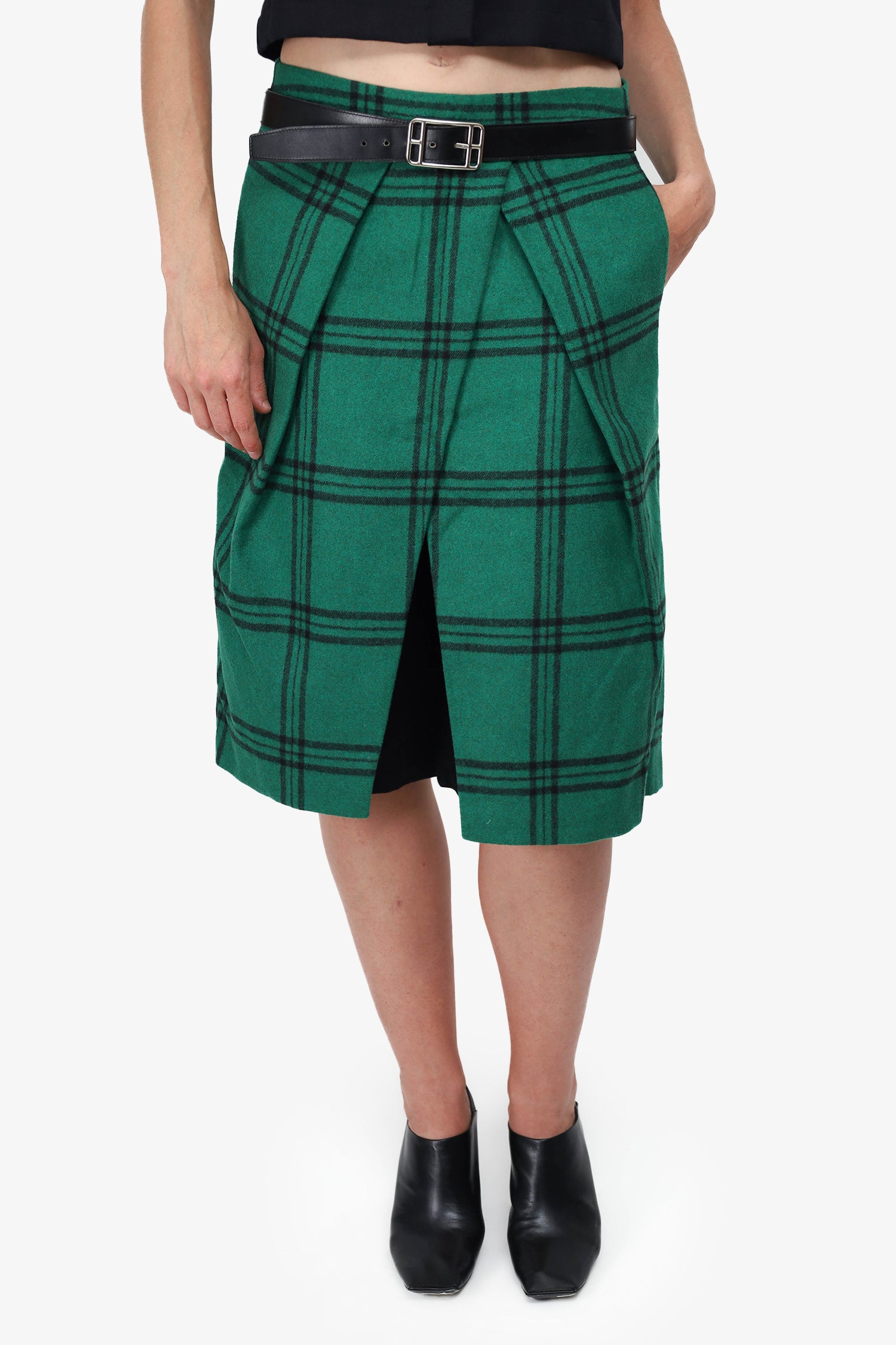 Tibi Green Wool Check Double Layer Shorts Size 2