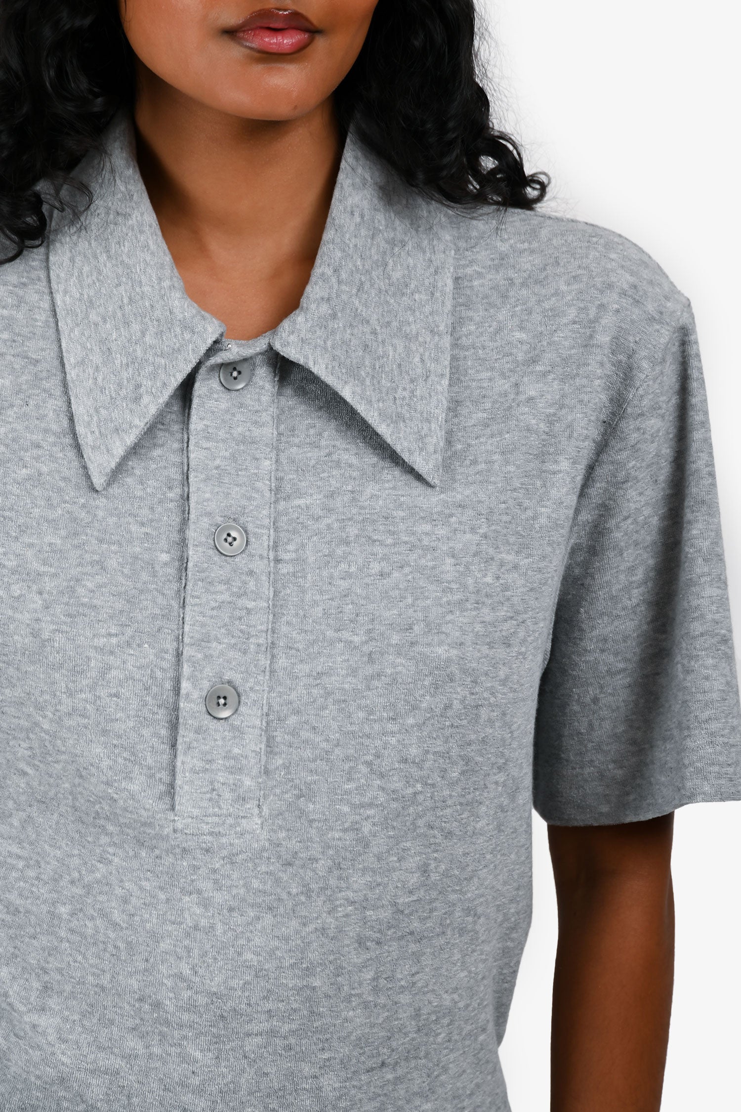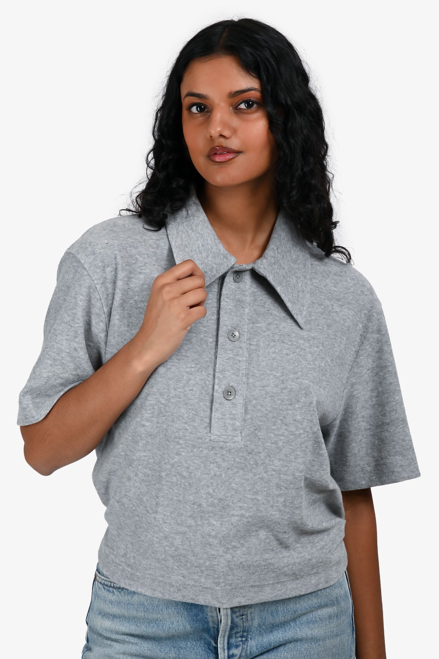 Refresh availabilityTibi Grey Cotton Cropped Shirt. Pull-on. Collared neckline. Front button-up closure. Tonal stitching.