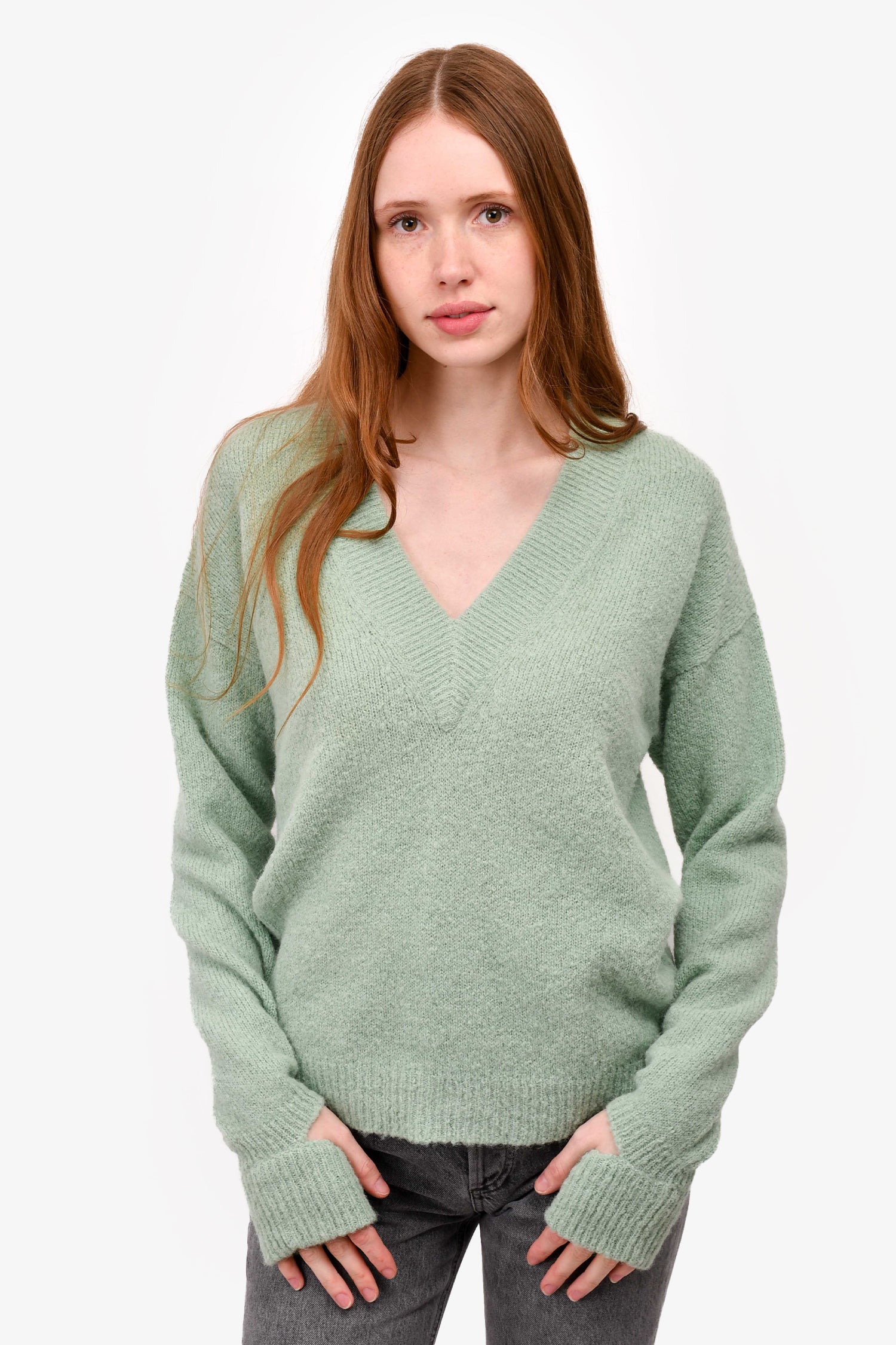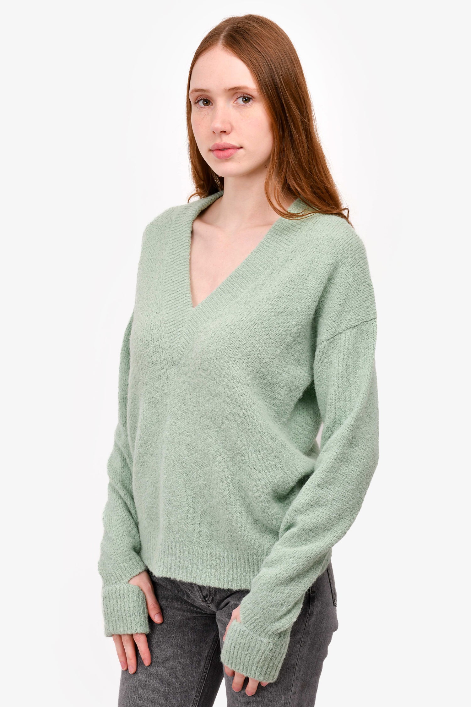 Tibi Mint Green Alpaca V-Neck Sweater Size XXS