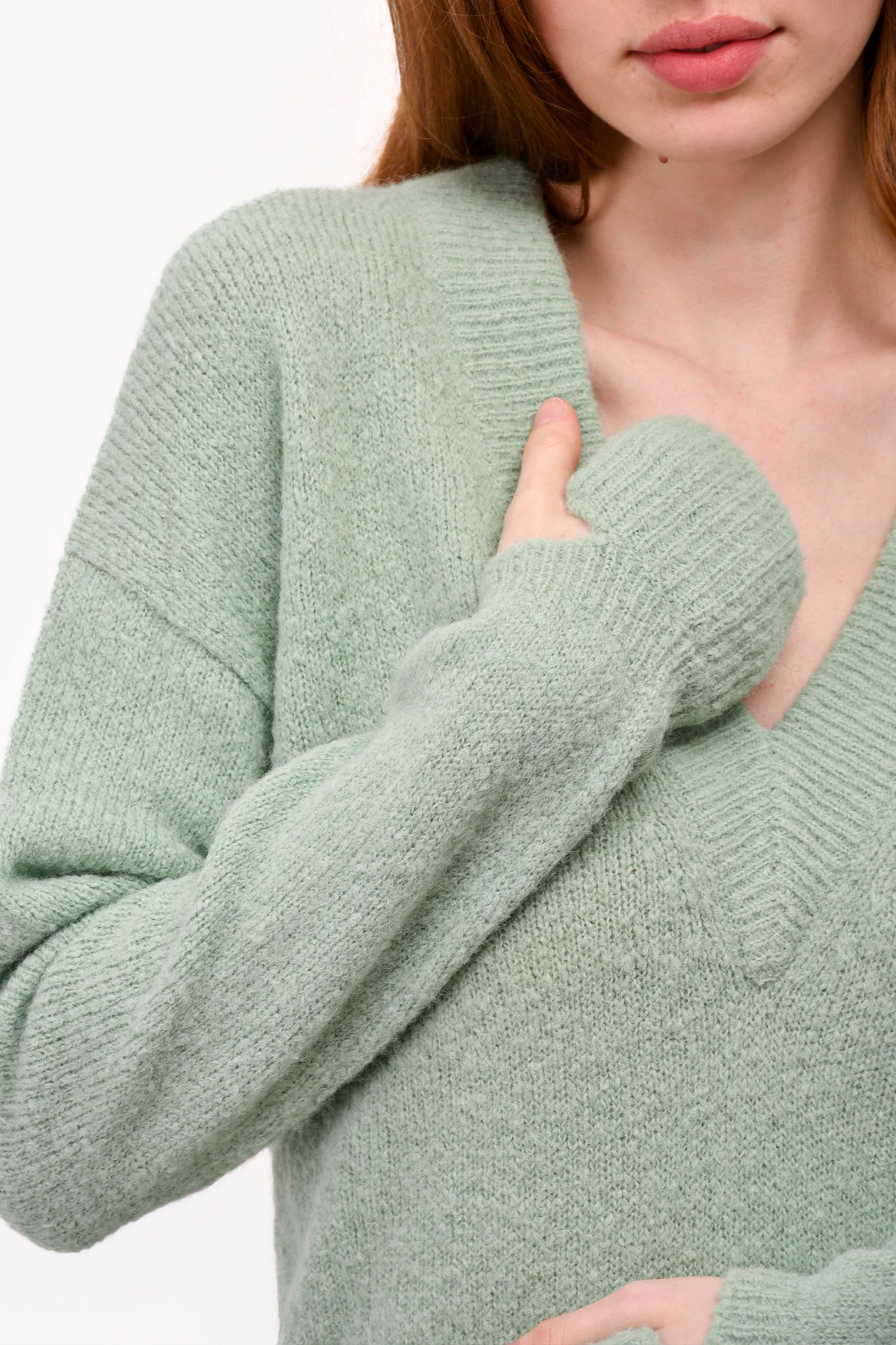 Refresh availabilityTibi Mint Green Alpaca V-Neck Sweater. V-neck. Eyelet details by the cuffs. Tonal stitching.