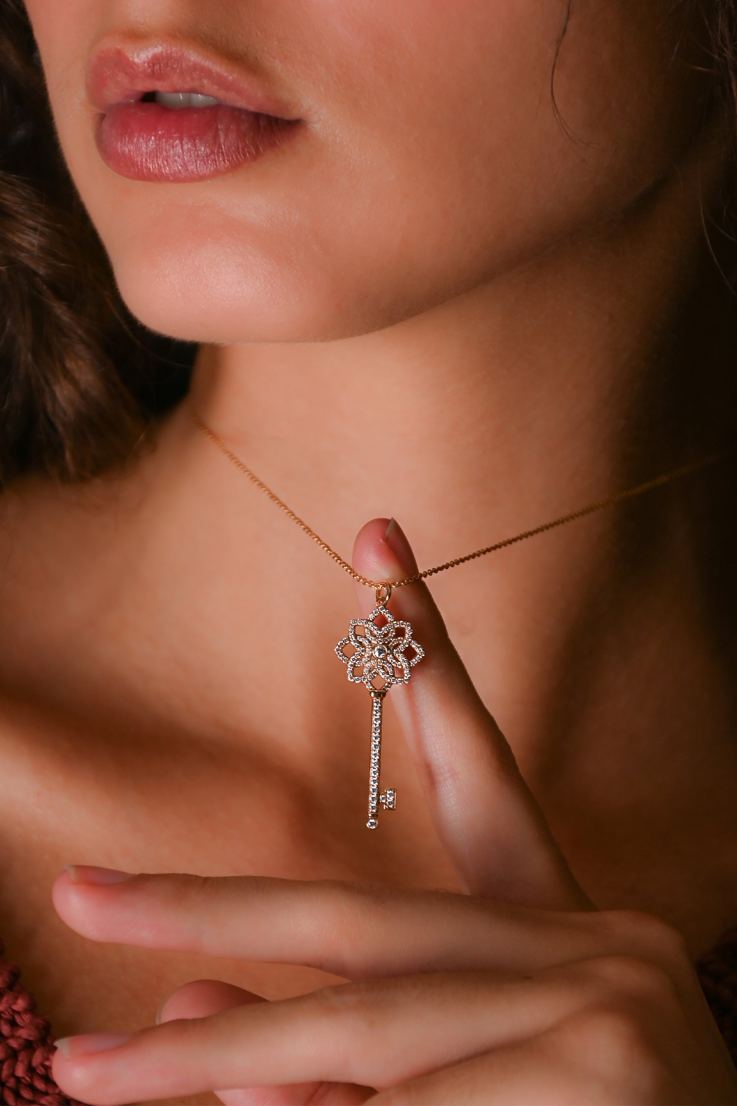 Refresh availabilityTiffany & Co. 18K Rose Gold .34cwt Victoria Key Pendant Necklace. Spring ring closure.