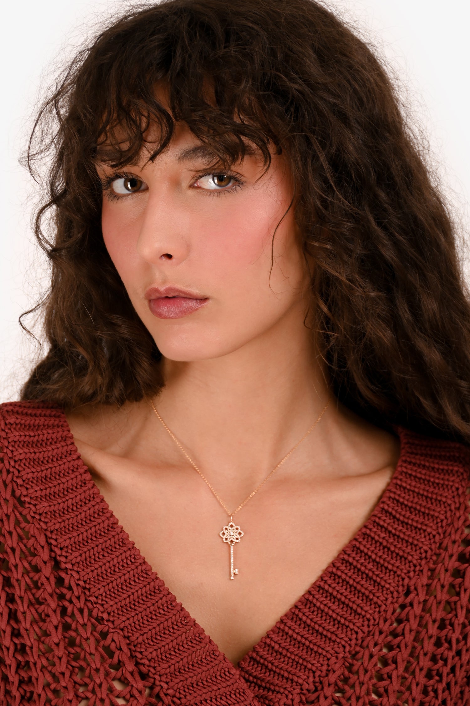 Tiffany & Co. 18K Rose Gold .34cwt Victoria Key Pendant Necklace