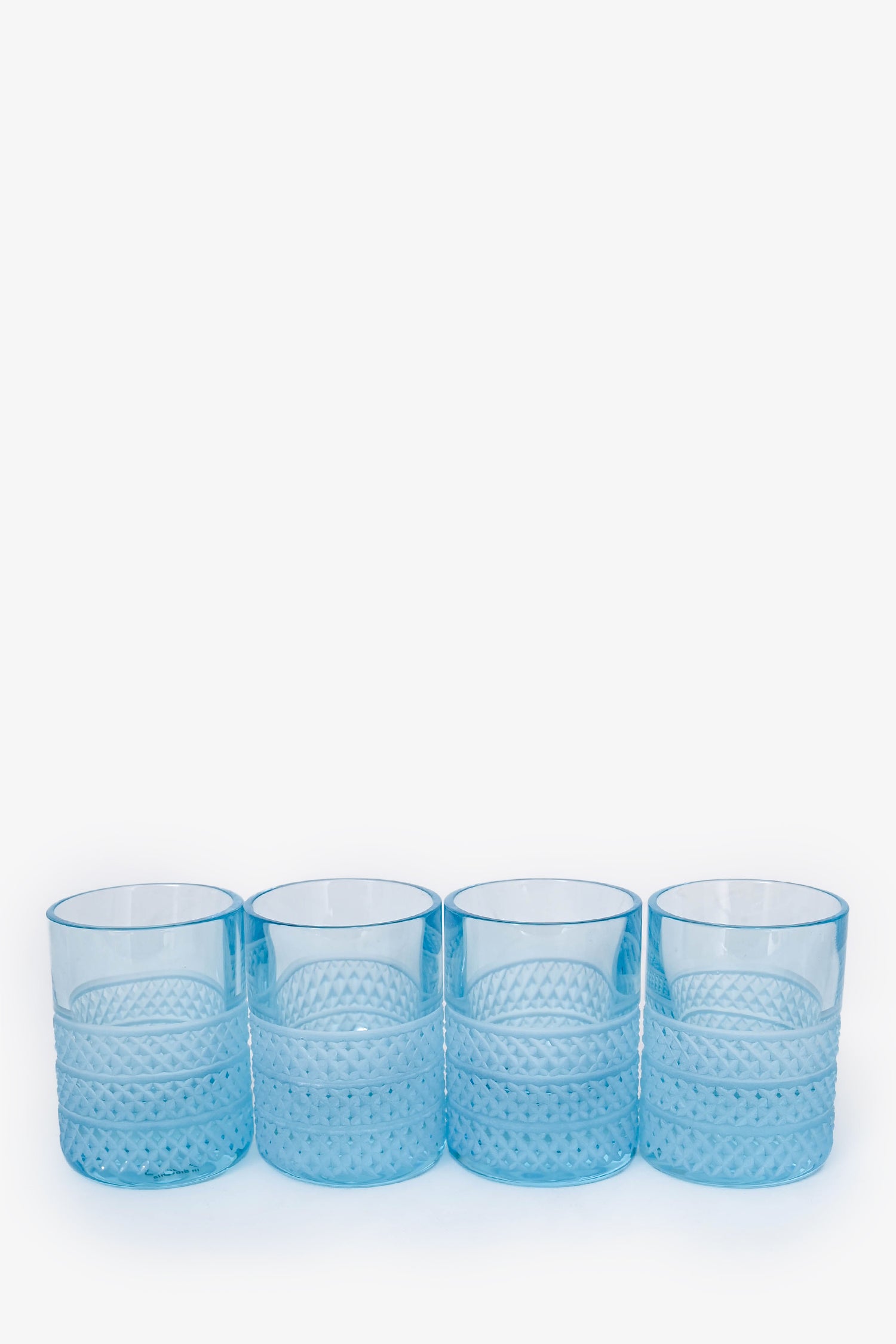 Refresh availabilityTiffany & Co. Blue Crystal Glass Sets of 4. Smooth cylindrical shape. Tonal detailing.