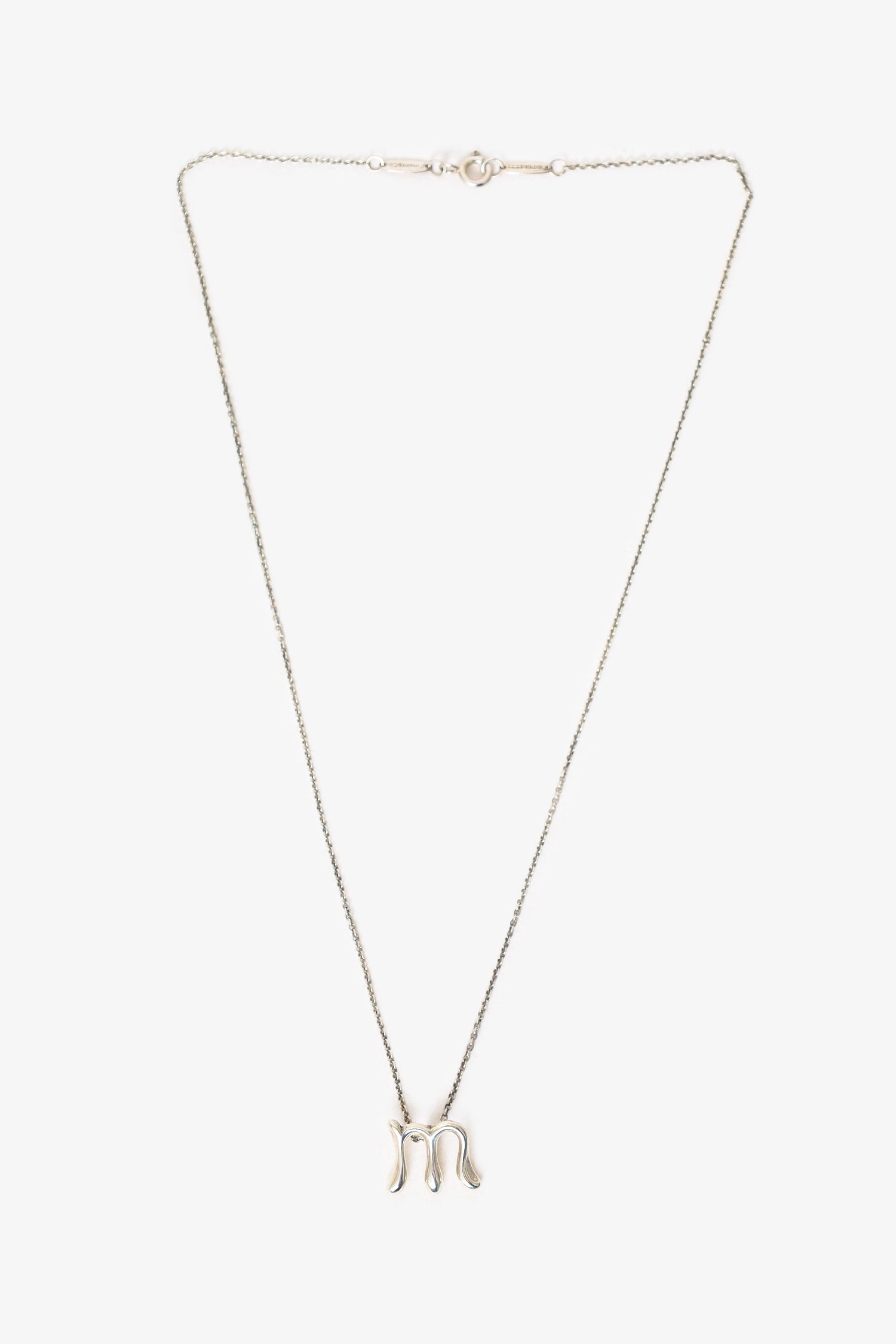 Refresh availabilityTiffany & Co Elsa Perretti Silver Alphabet Letter M Pendant Necklace. Spring ring closure.