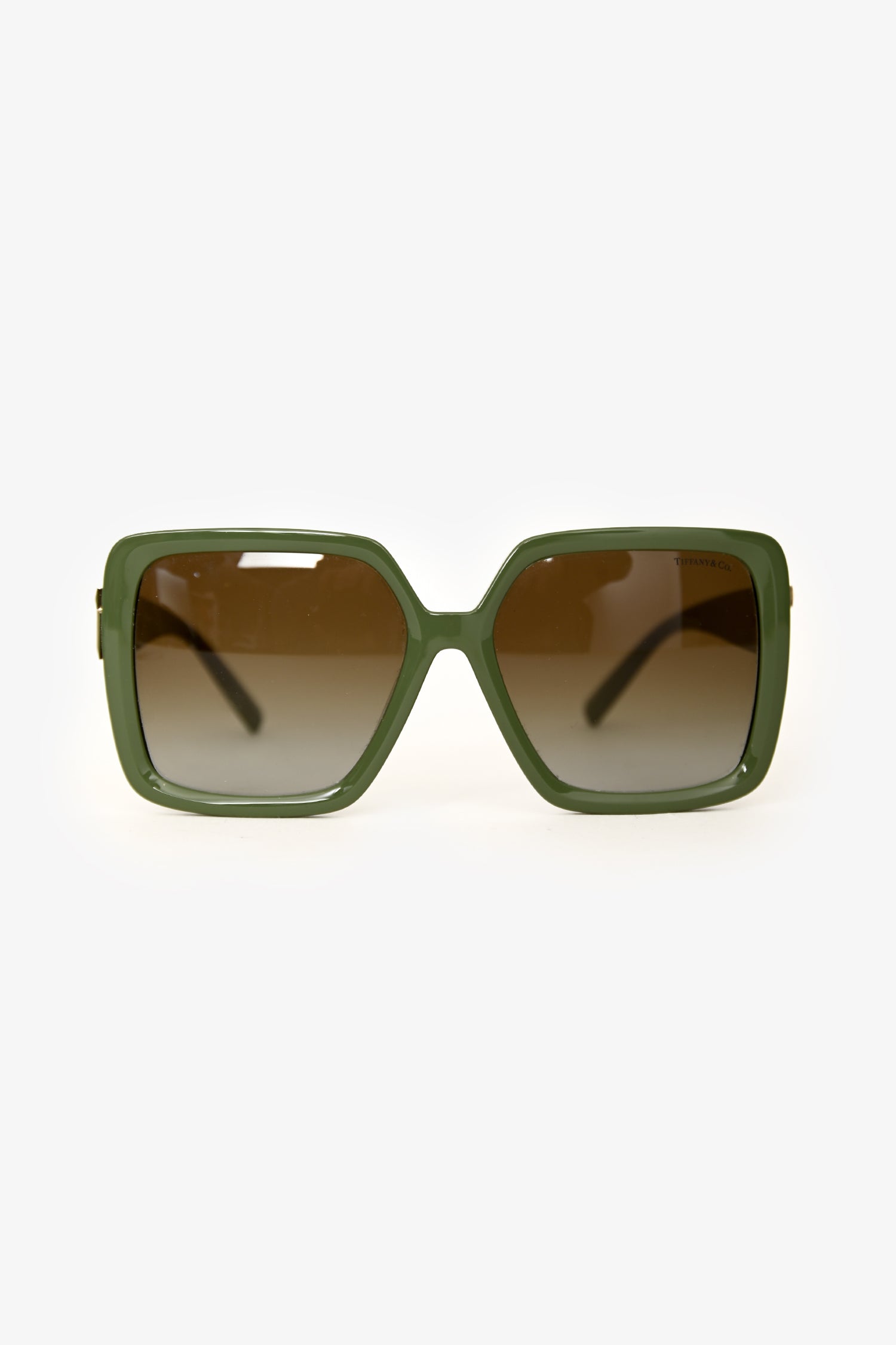 Refresh availabilityTiffany & Co. Green Acetate Oversized Square Tinted Sunglasses. Built-in nose pads. Silver-tone hardware.