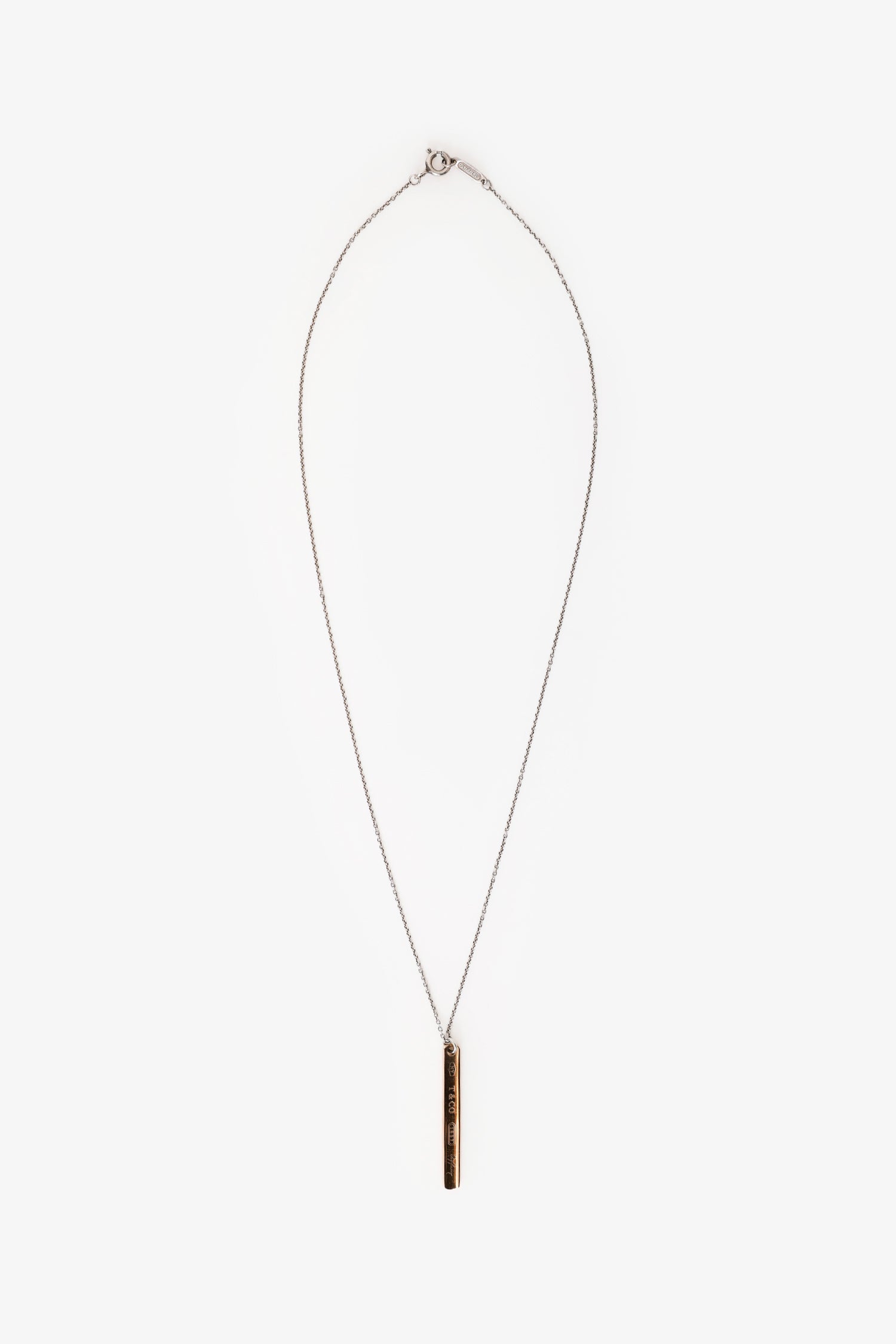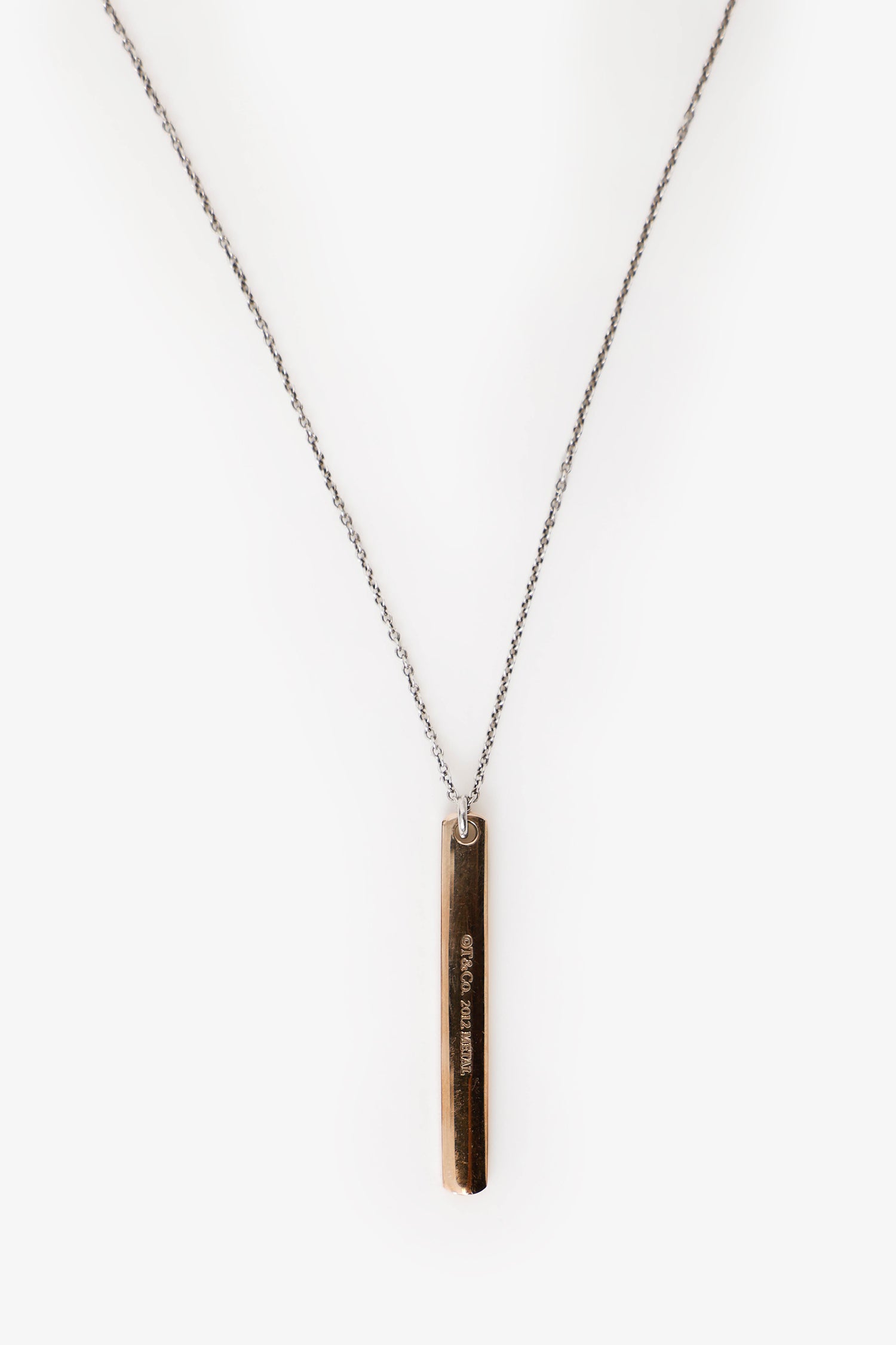 Refresh availabilityTiffany & Co. Rose Gold Toned 1837 Bar Pendant Necklace. Rear clasp closure. Silver and rose-gold tone hardware.