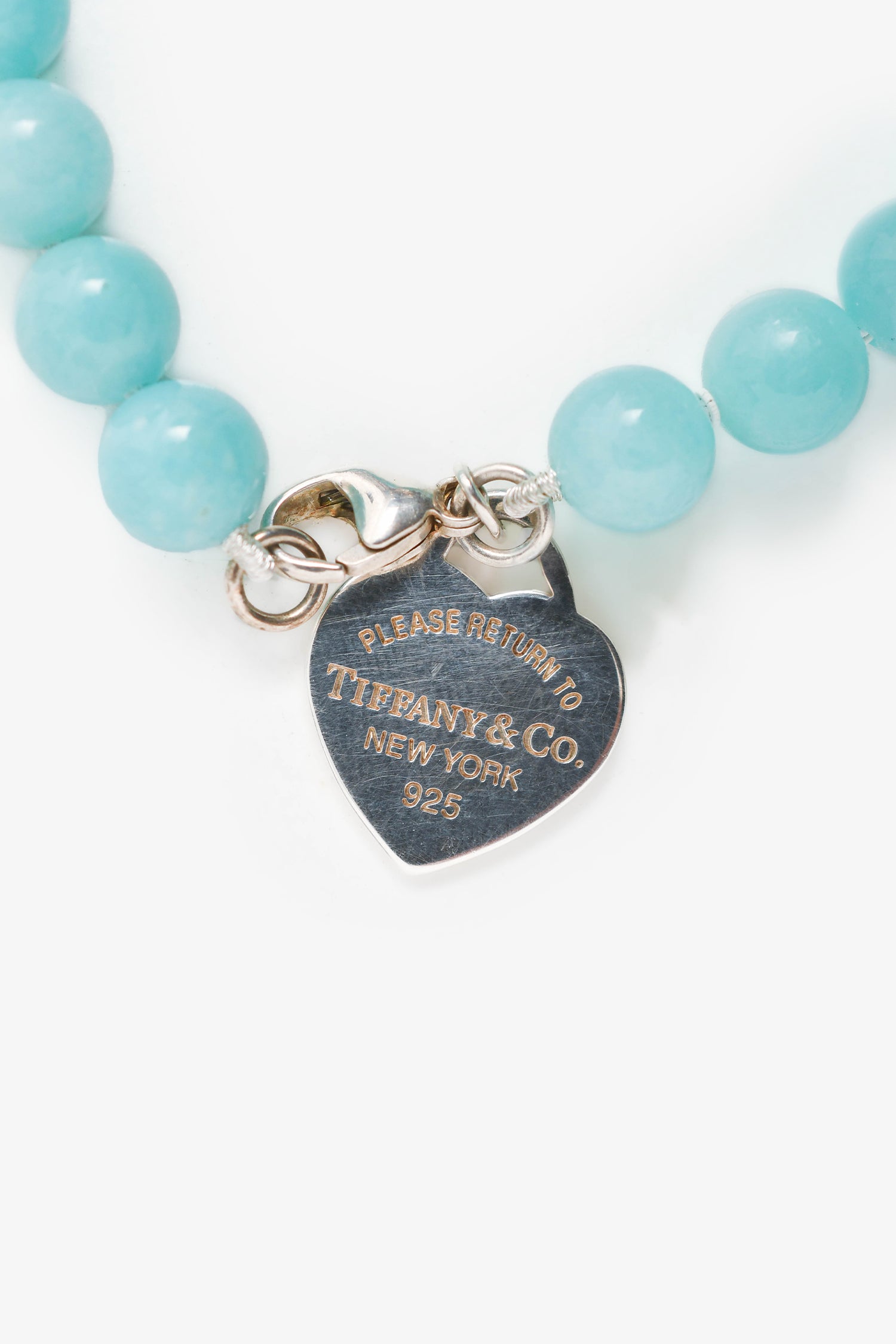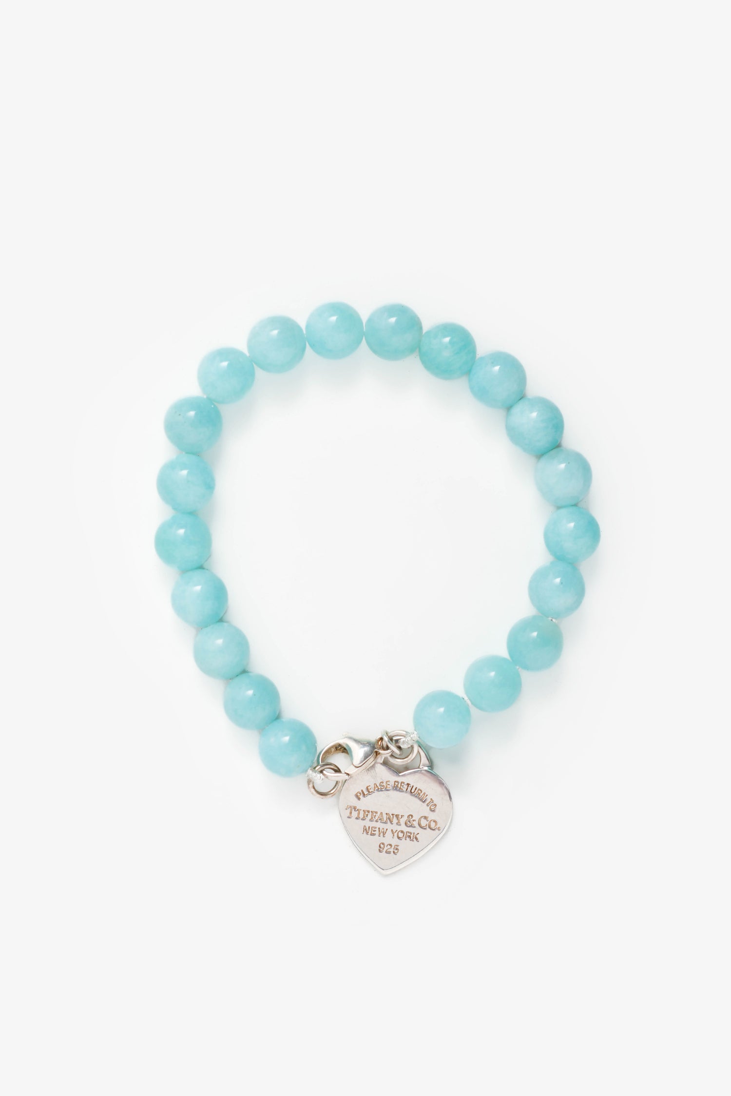 Refresh availabilityTiffany & Co. Silver/Amazonite Heart Tag Bead Bracelet. Lobster clasp closure. Silver-tone hardware. Comes with dust bag.
