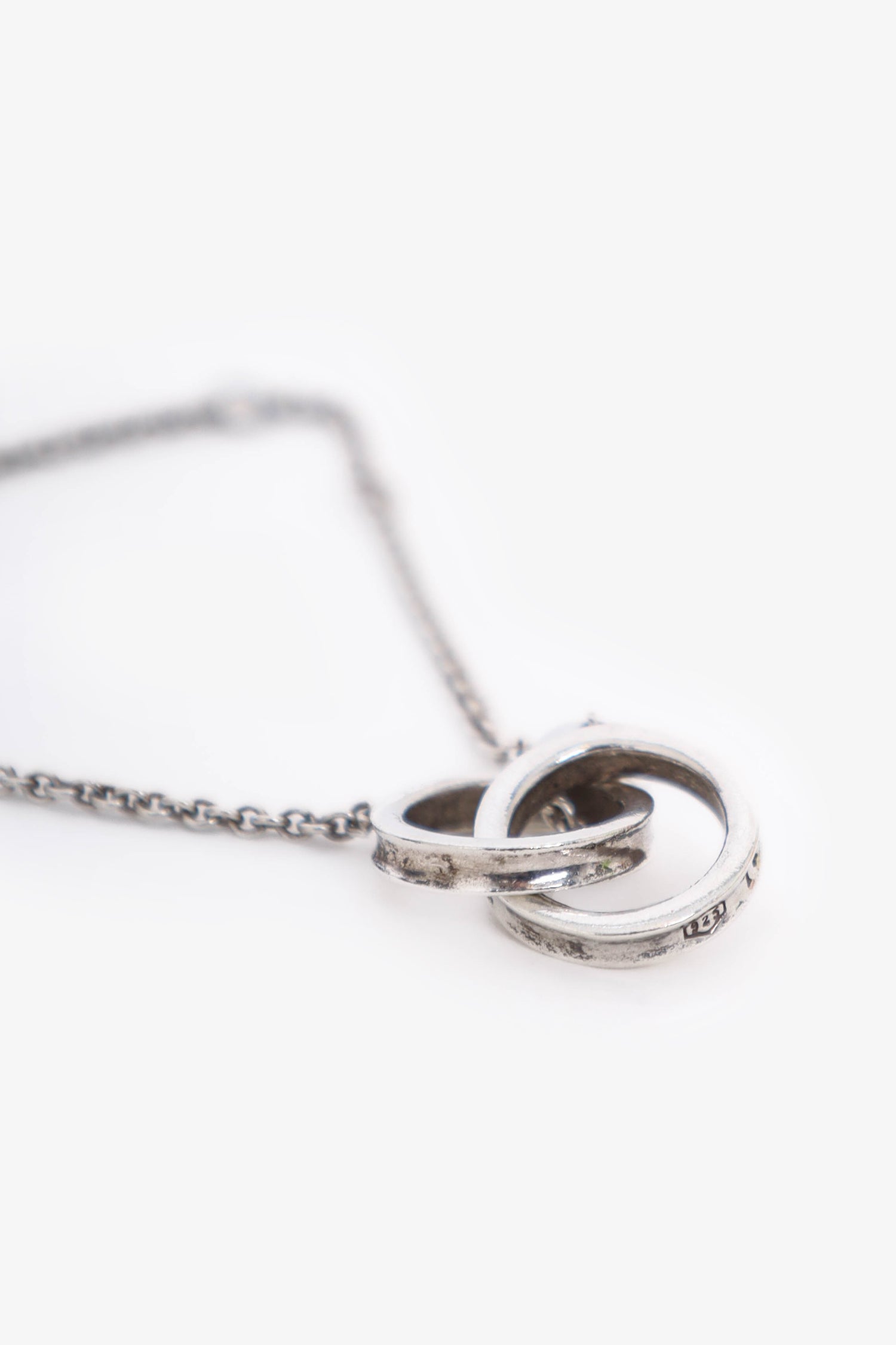 Condition: This item is in good pre-loved condition with minor tarnishing to silver material. Faint scratches to interlocking circles.