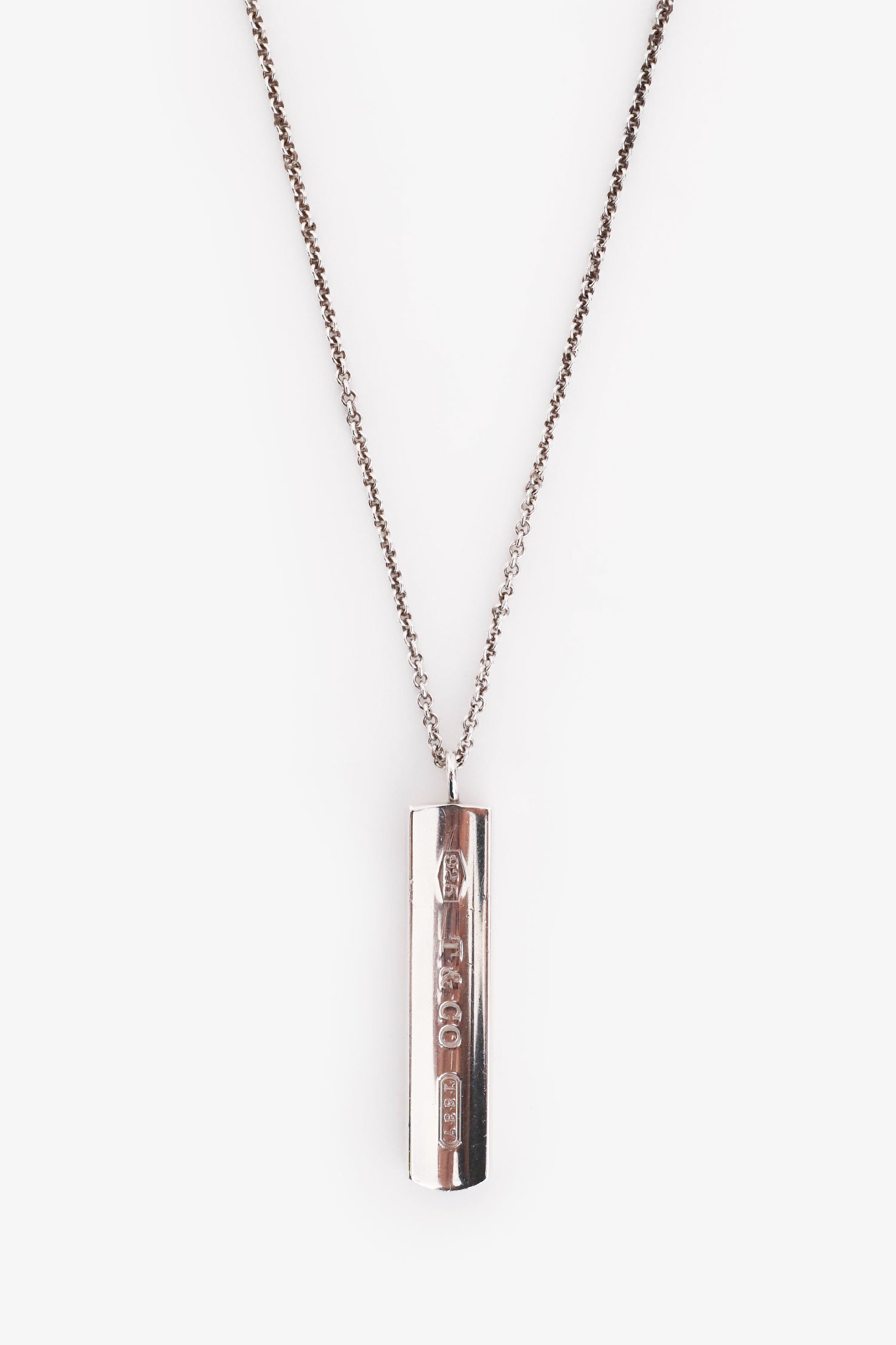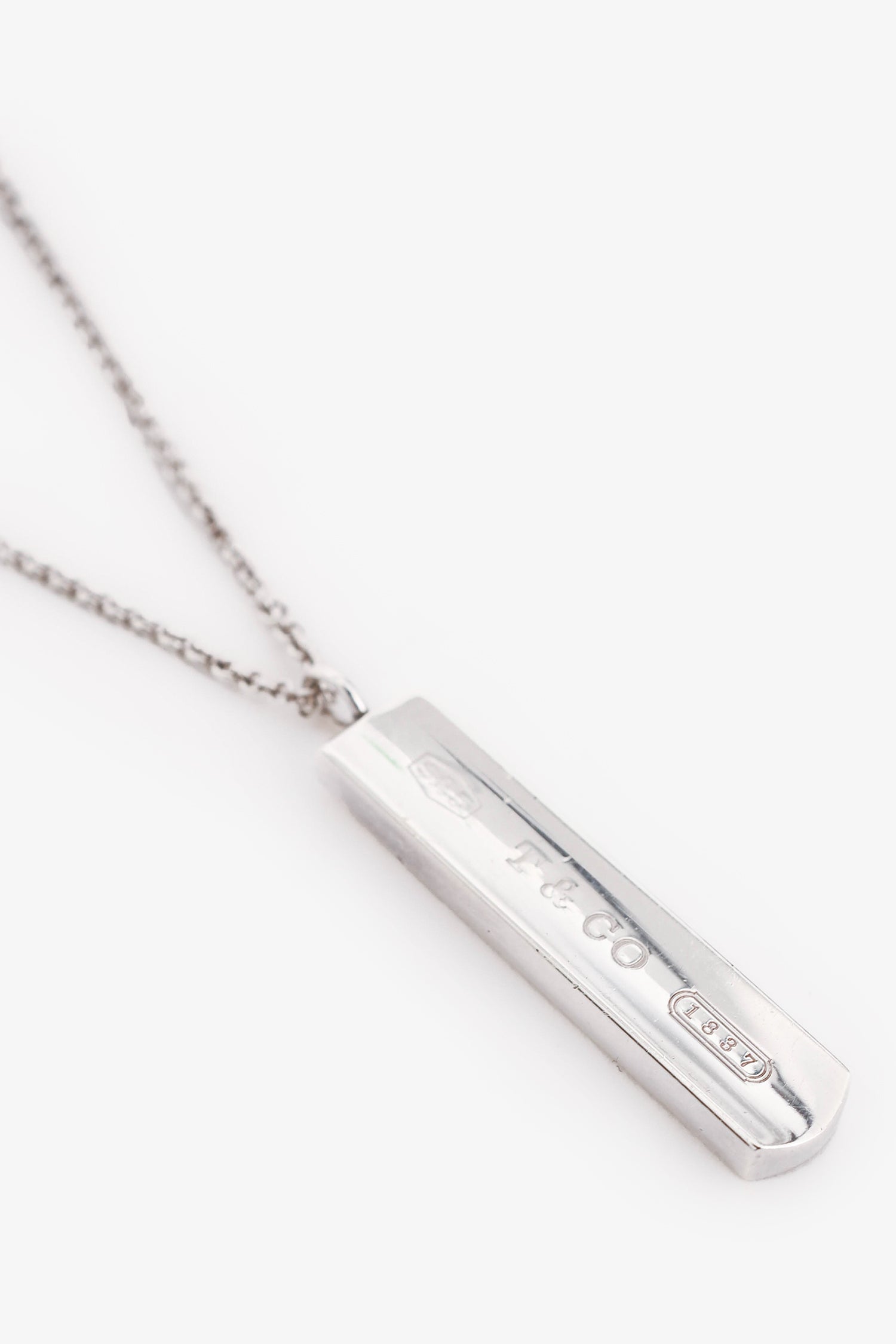 Refresh availabilityTiffany & Co. Sterling Silver 1837 Bar Pendant Necklace. Lobster clasp closure. Fine chain with vertical bar pendant engraved with 1837 hallmark. Polished finish.