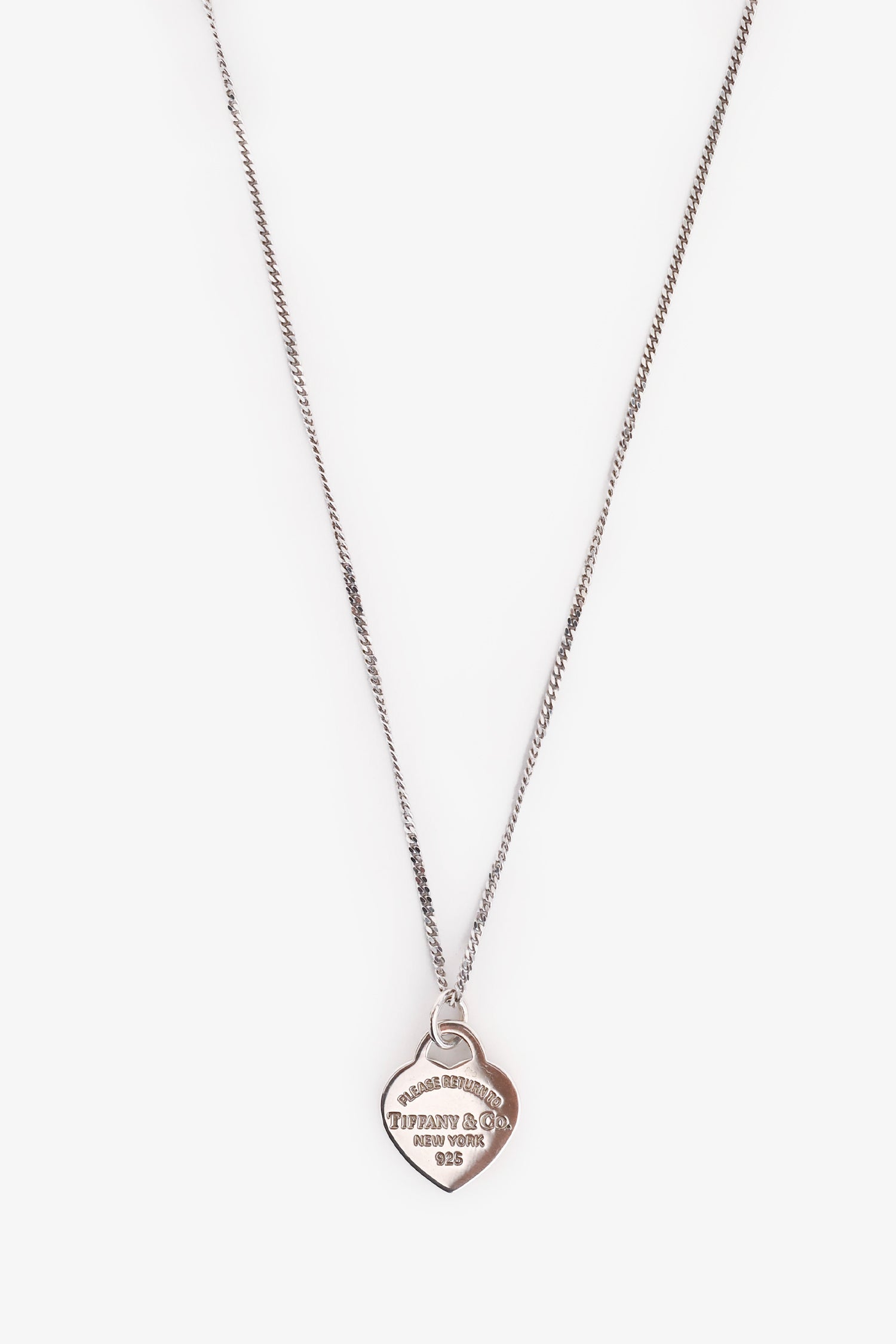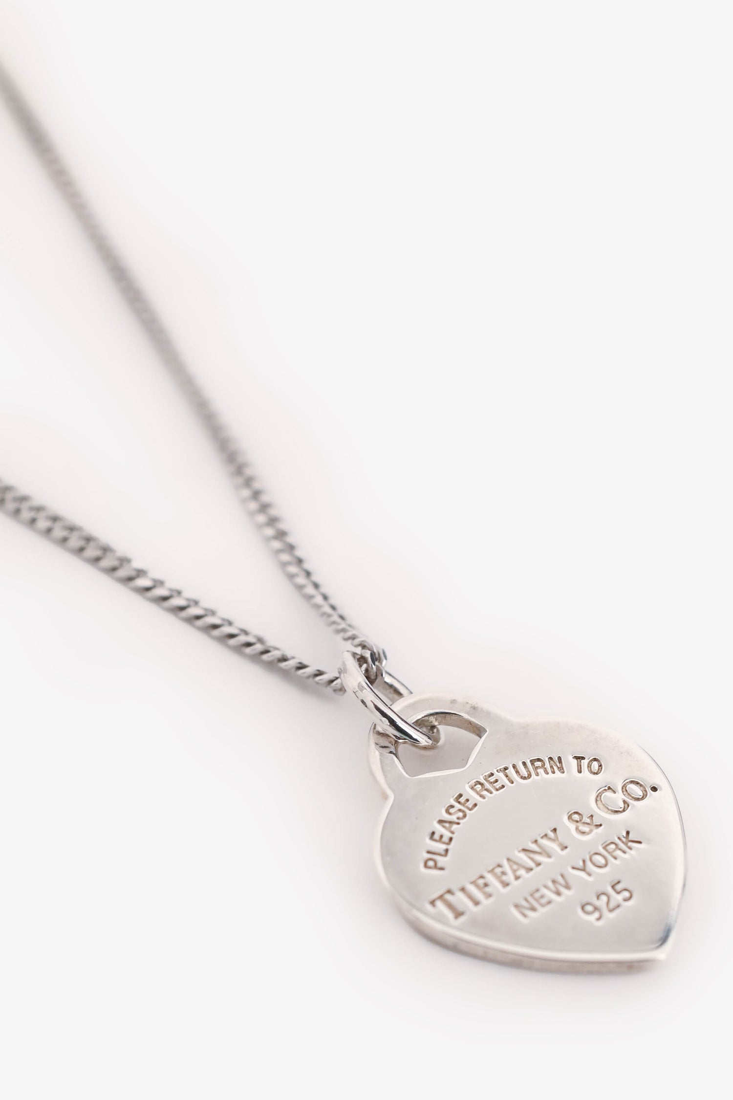Refresh availabilityTiffany & Co. Sterling Silver Heart 'Return to Tiffany' Pendant On Unbranded Chain. Lobster clasp closure. Cable chain with engraved heart tag pendant. Polished finish.