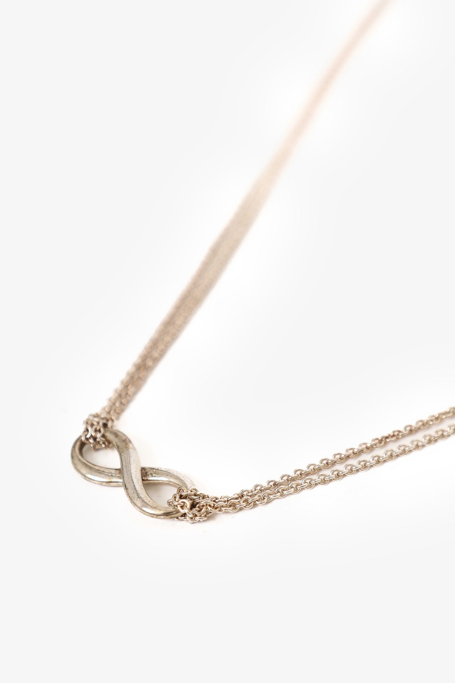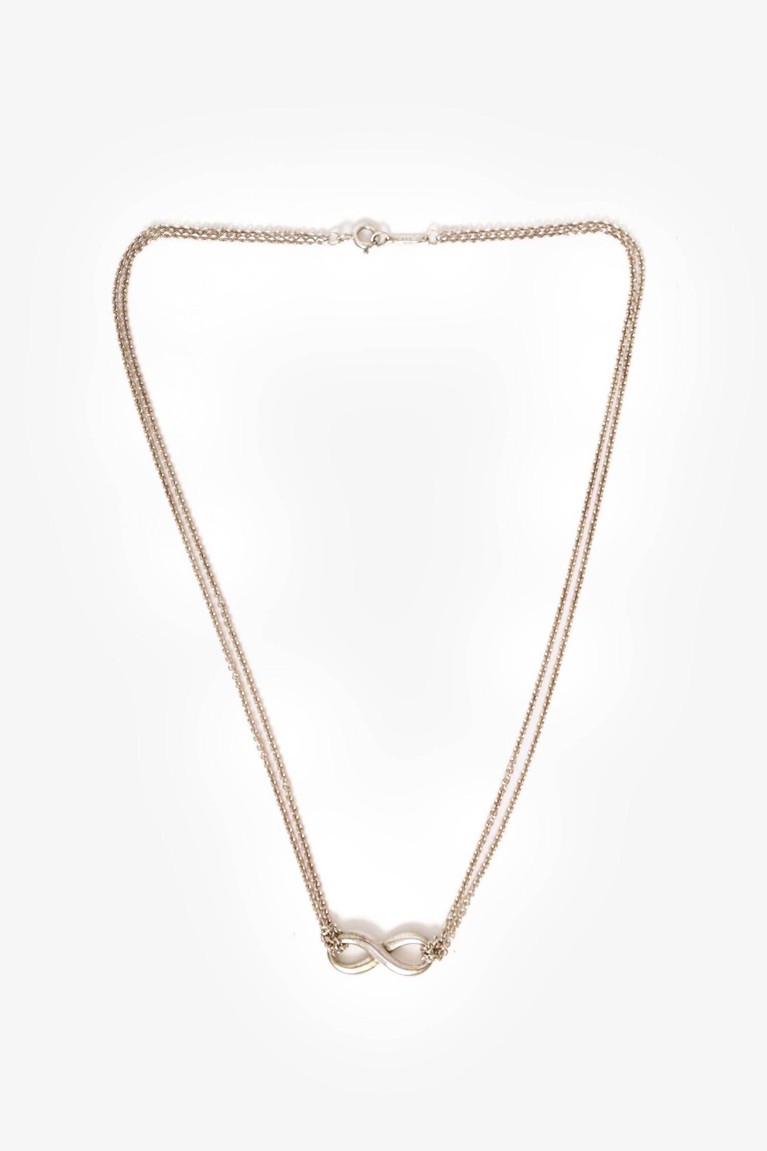 Refresh availabilityTiffany & Co Sterling Silver Infinity Necklace. Rear lobster-clasp closure. Silver-tone hardware.