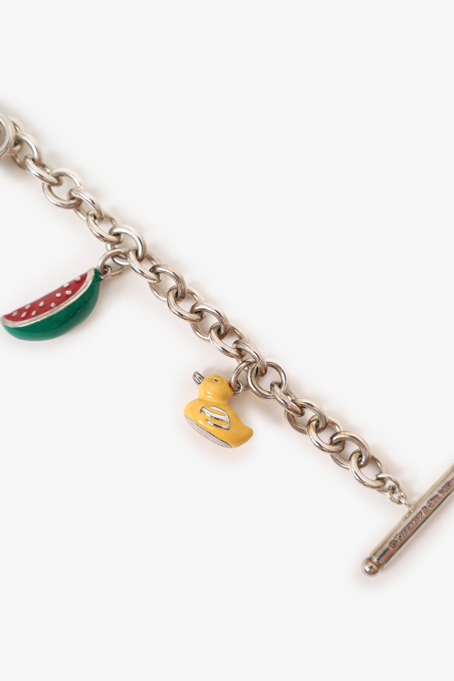 Refresh availabilityTiffany Sterling Silver Multi Charm Bracelet. Rear toggle closure. Silver-tone hardware.
