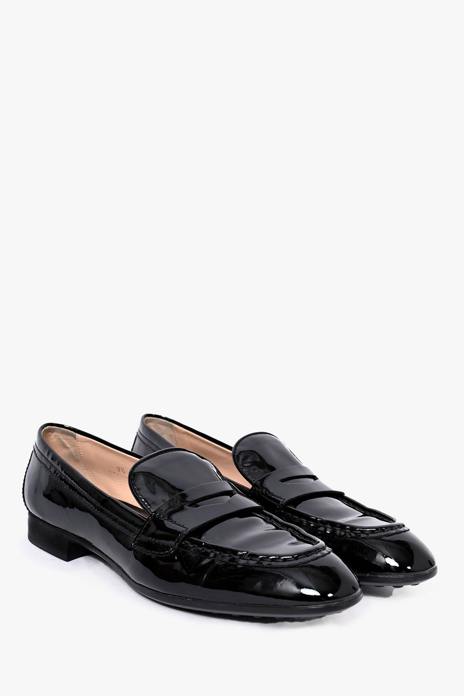 Refresh availabilityTod's Black Patent Loafers. Round toe. Slip-on. Glossy finish.