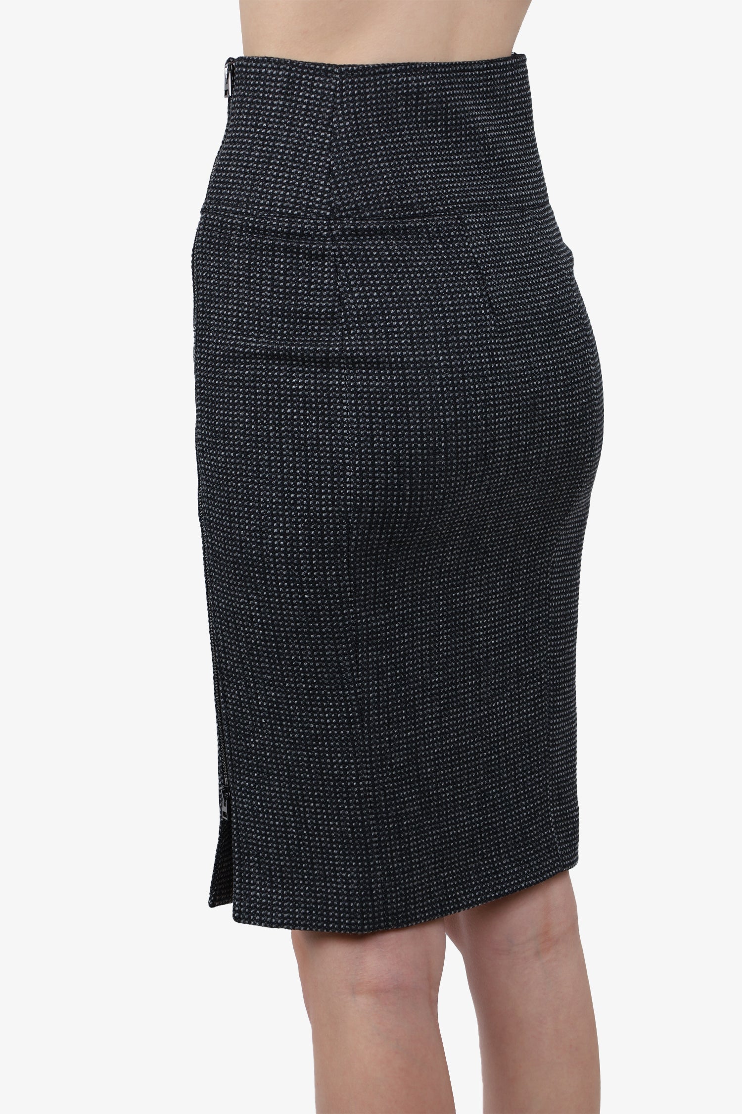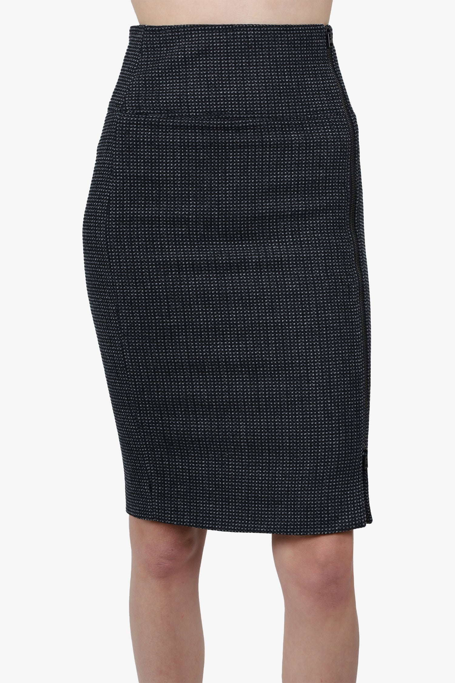 Refresh availabilityTom Ford Black/Grey Wool Tweed Zip Detail Midi Skirt. Rear zip closure. Lined. Tonal stitching.