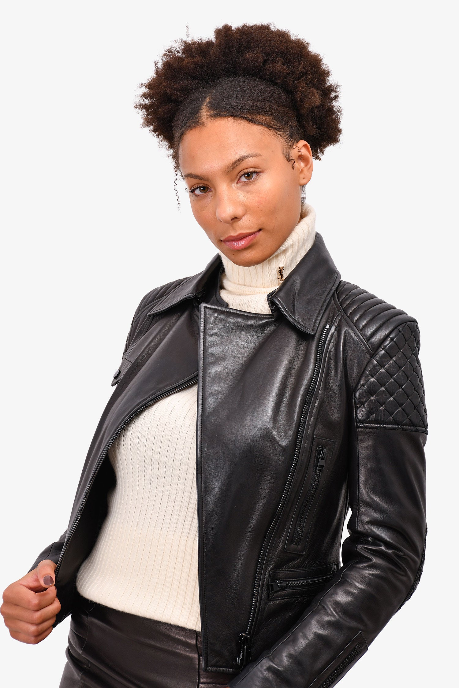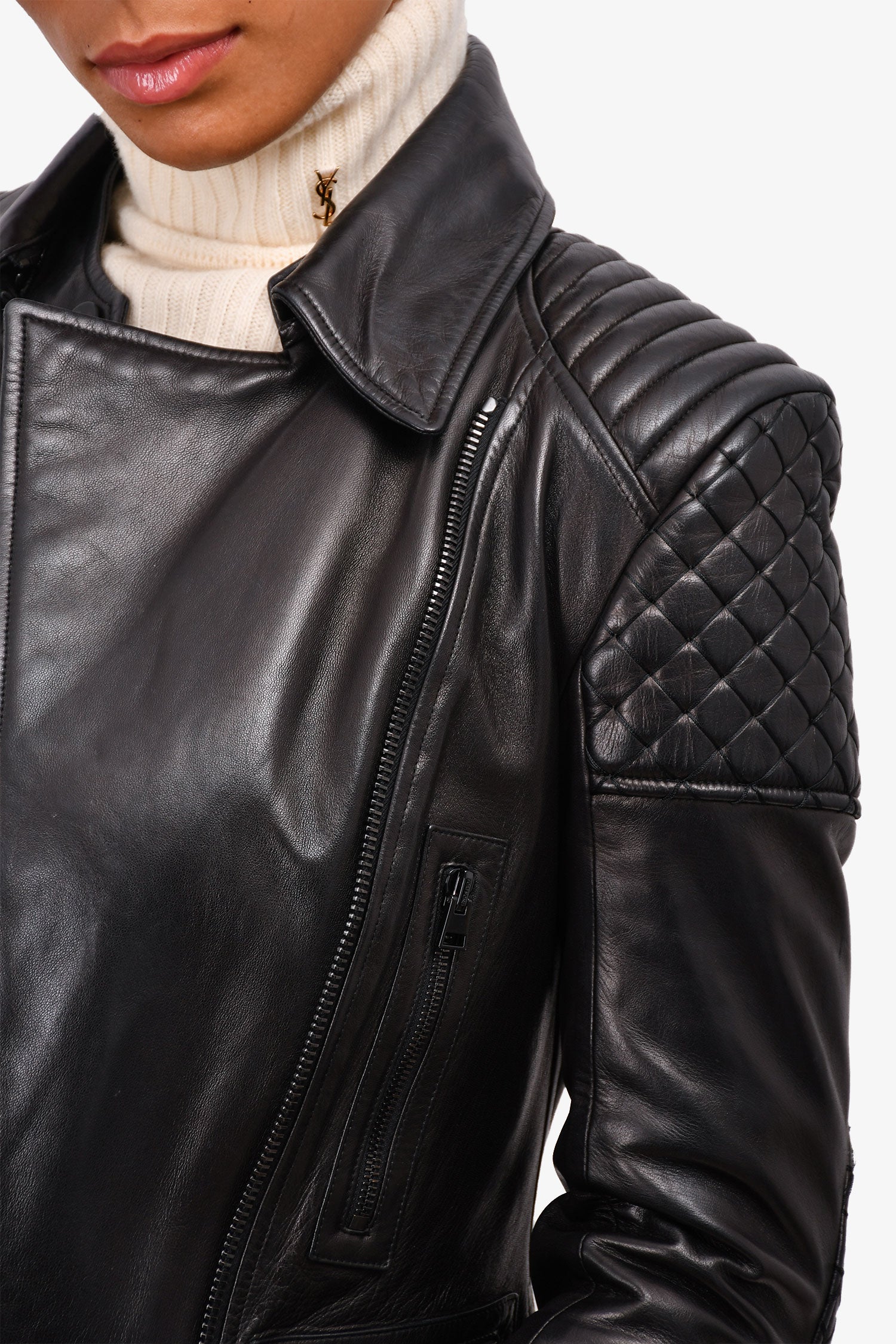 Refresh availabilityTom Ford Black Quilted Leather Biker Jacket. Lined interior. Tonal stitching.