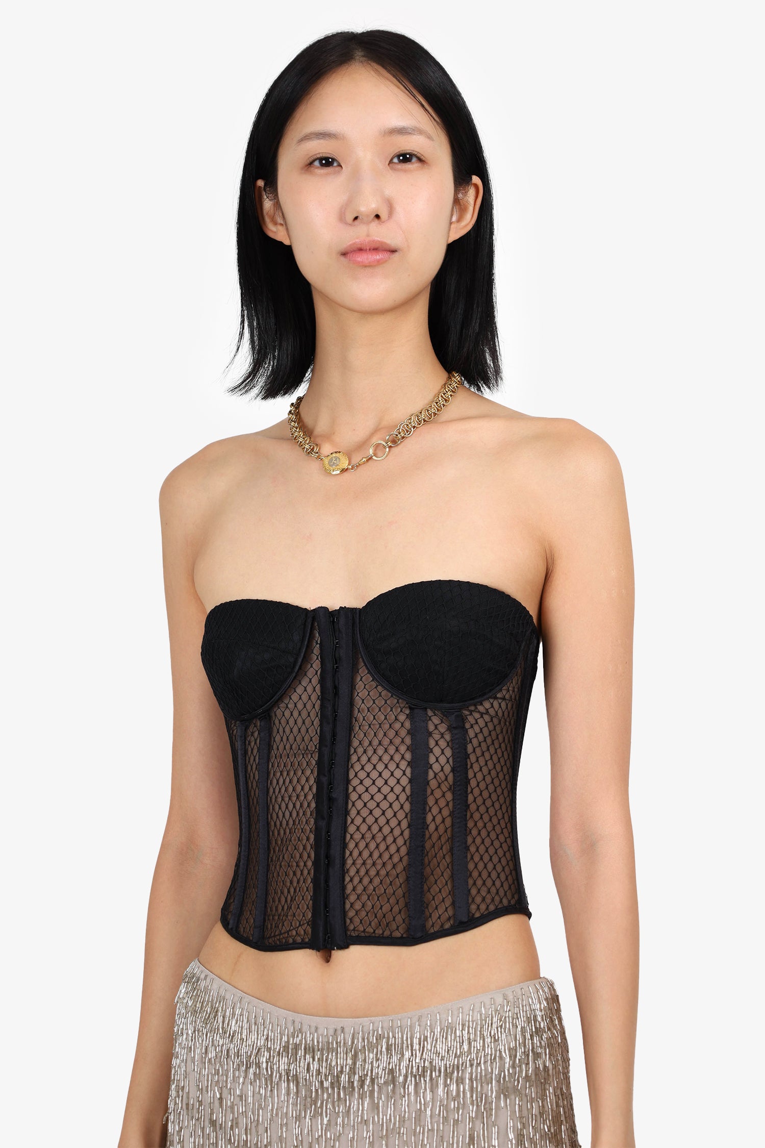 Refresh availabilityTom Ford Black Silk Satin-trimmed Mesh Corset. Strapless. Rear lace-up closure. Front hook clasp closure. Tonal stitching.