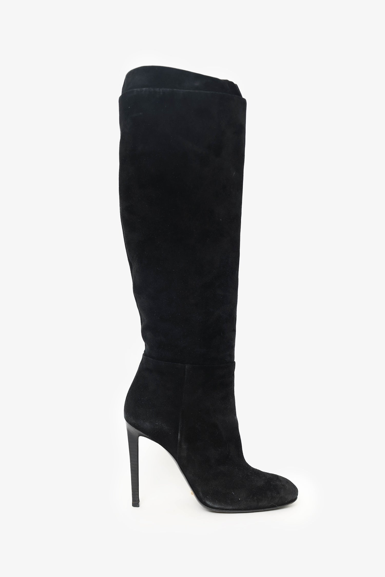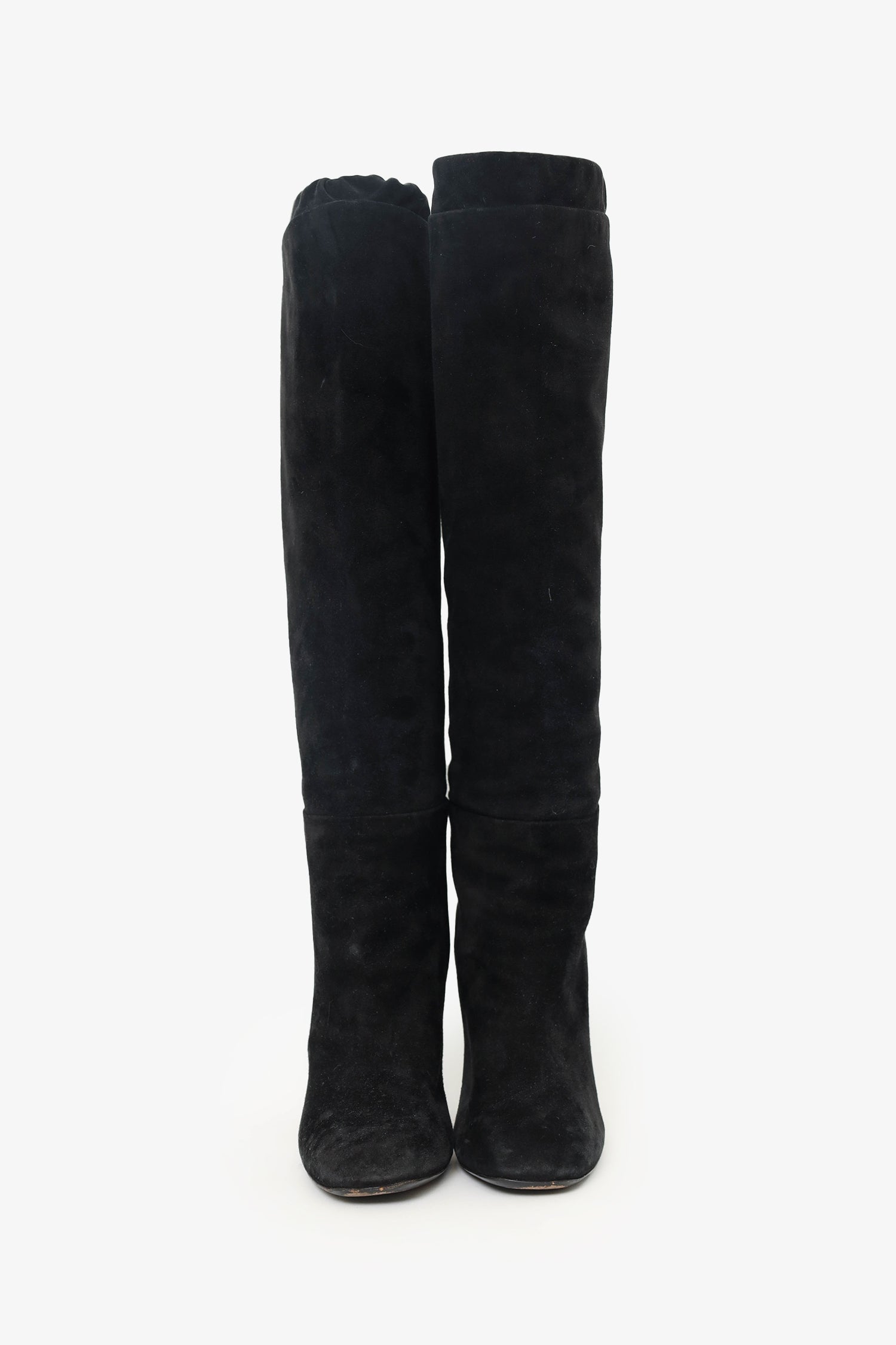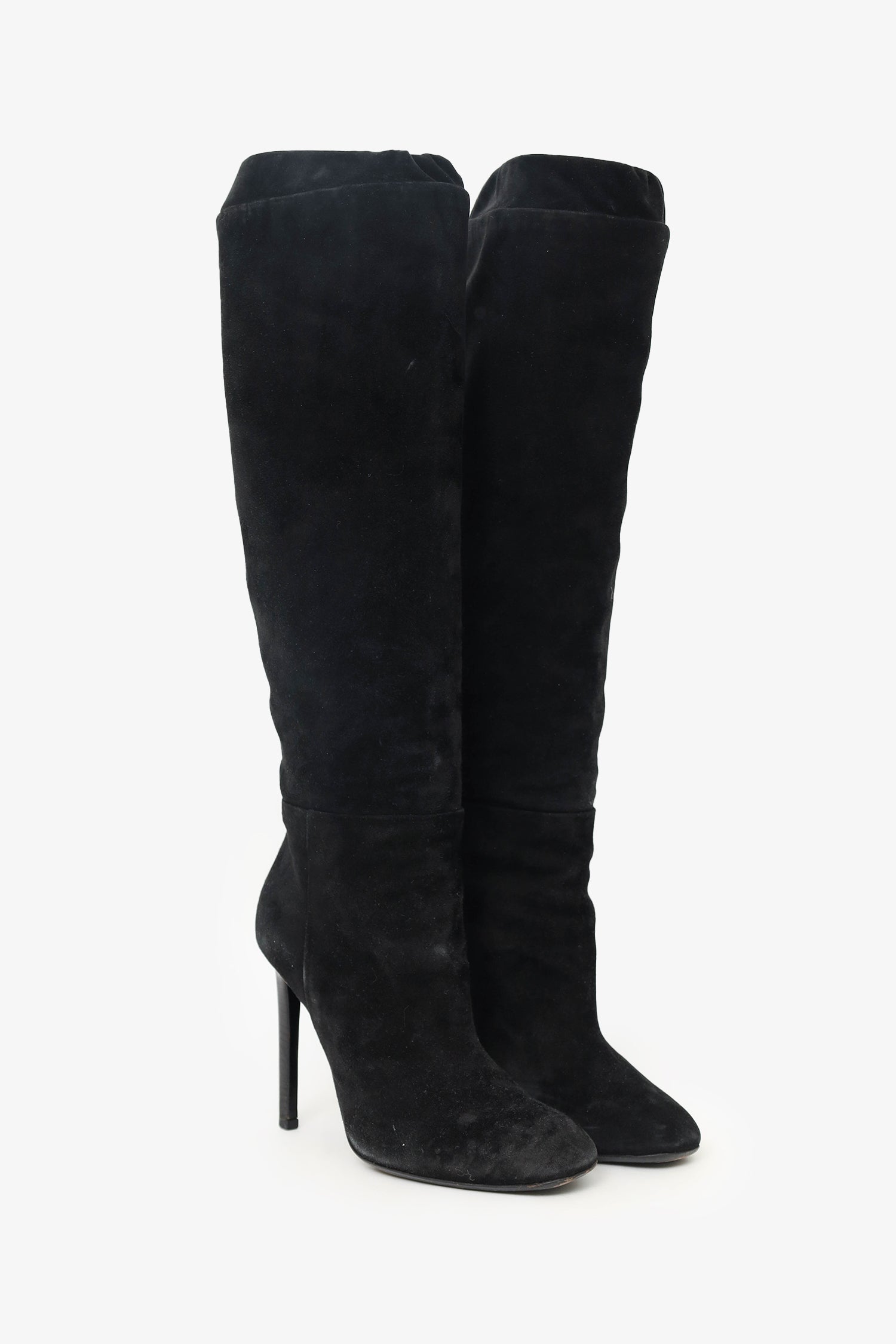 Refresh availabilityTom Ford Black Suede Heeled Boots. Pull-on. Round toe. Tonal stitching.