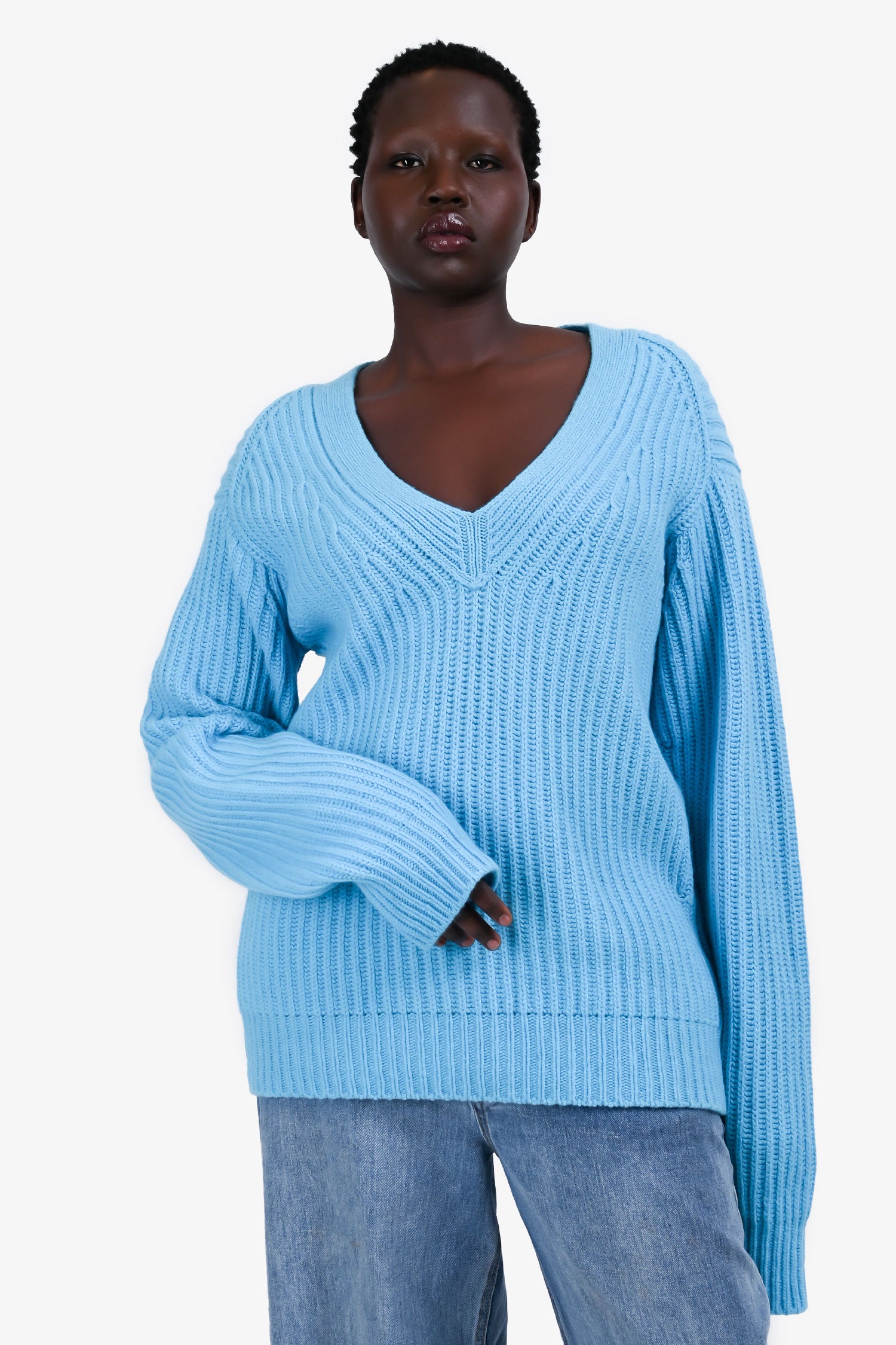 Refresh availabilityTom Ford Blue Chunky Knit V-Neck Sweater. Pull-on.