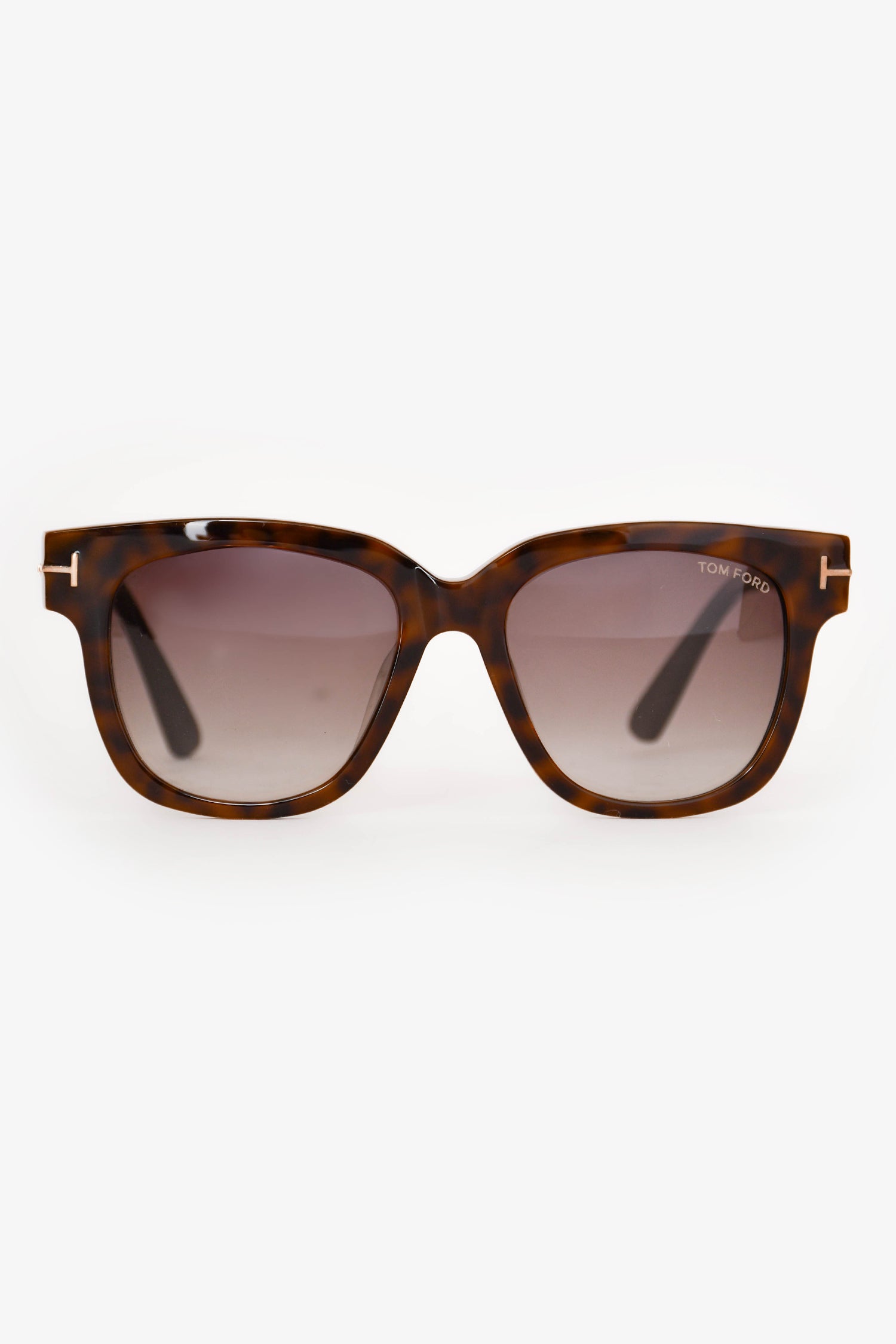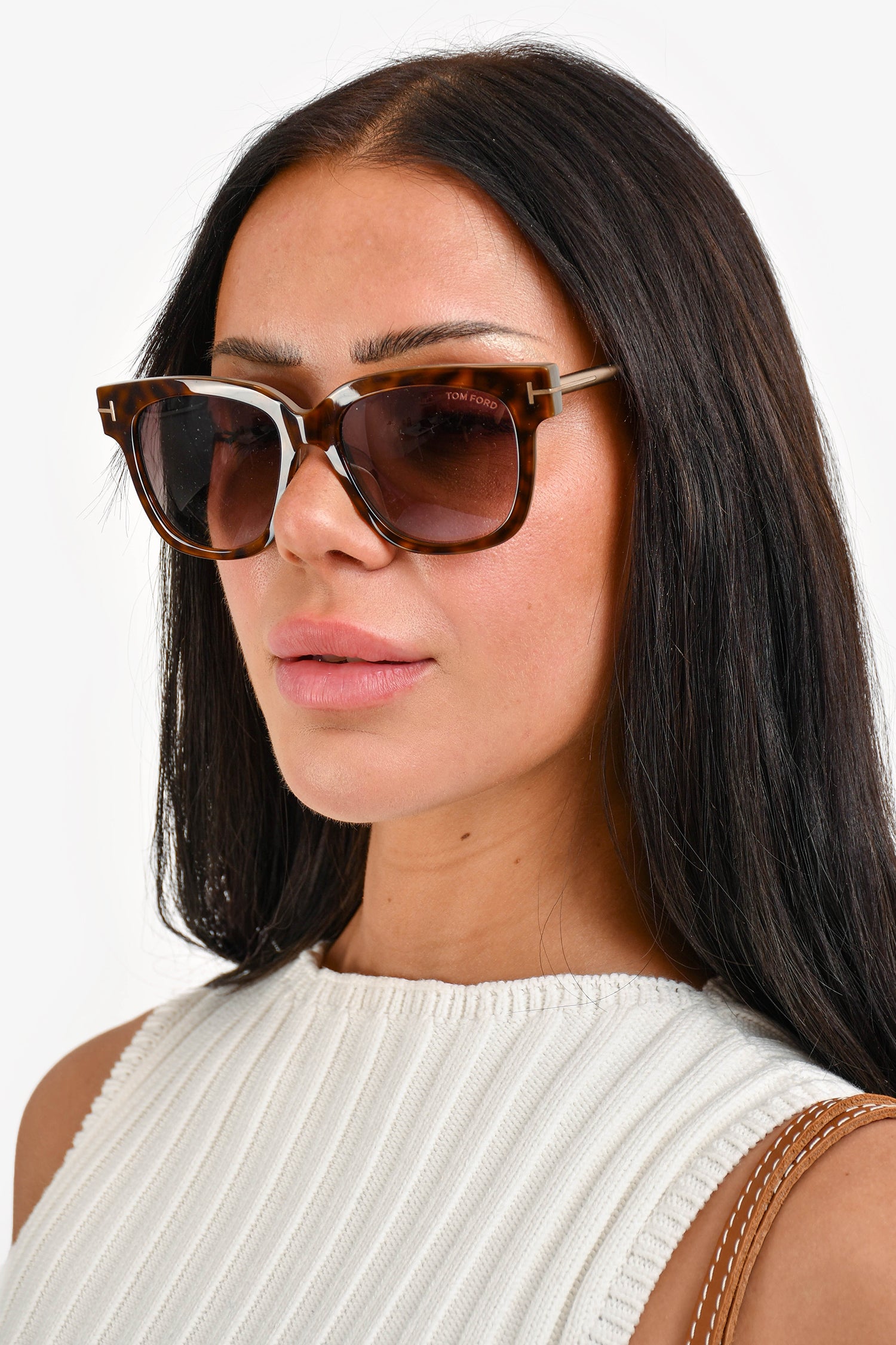 Refresh availabilityTom Ford Brown Tortoiseshell 'Tracy' Sunglasses. Oversized square frame. Signature “T” logo at temples.