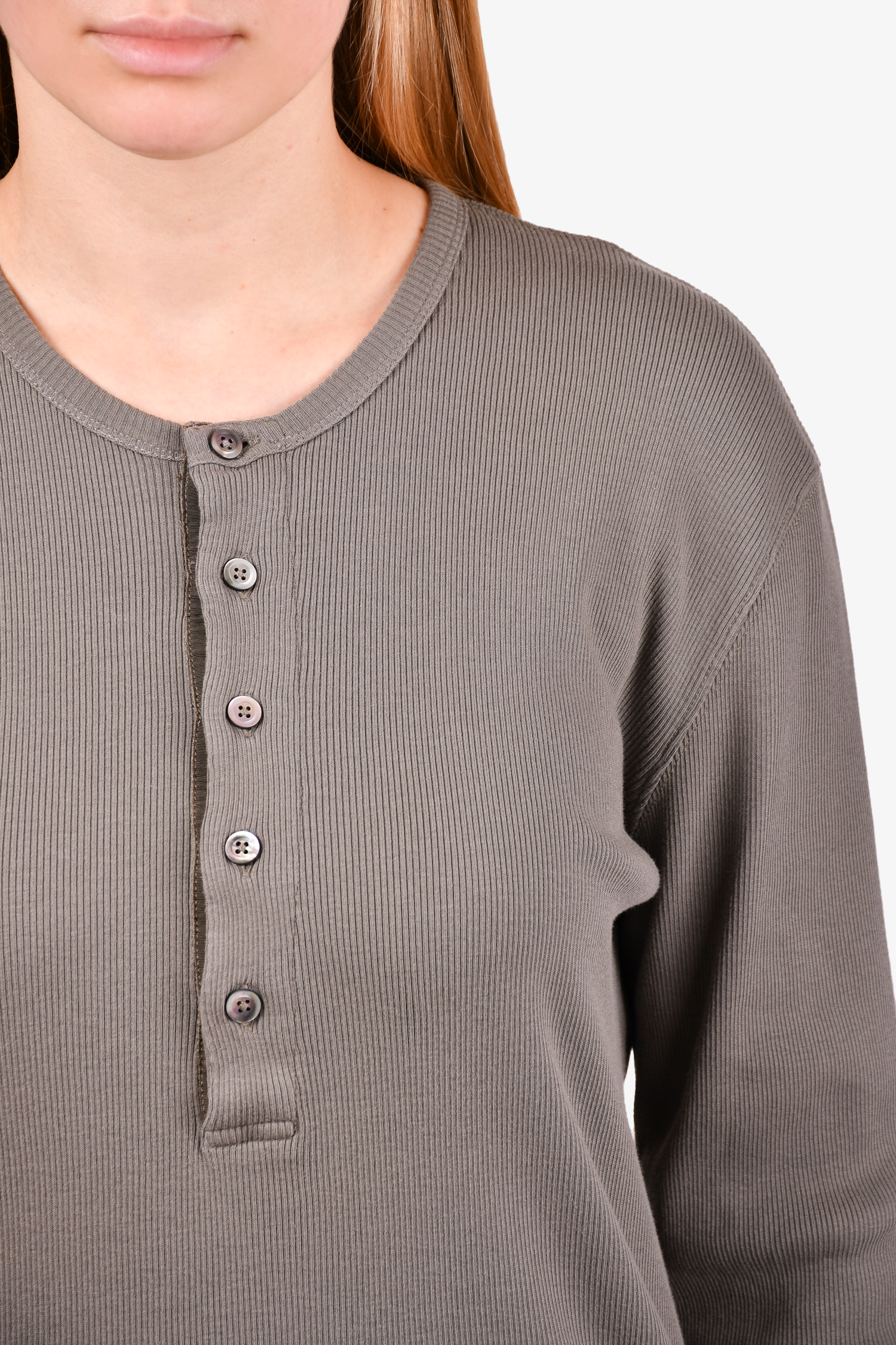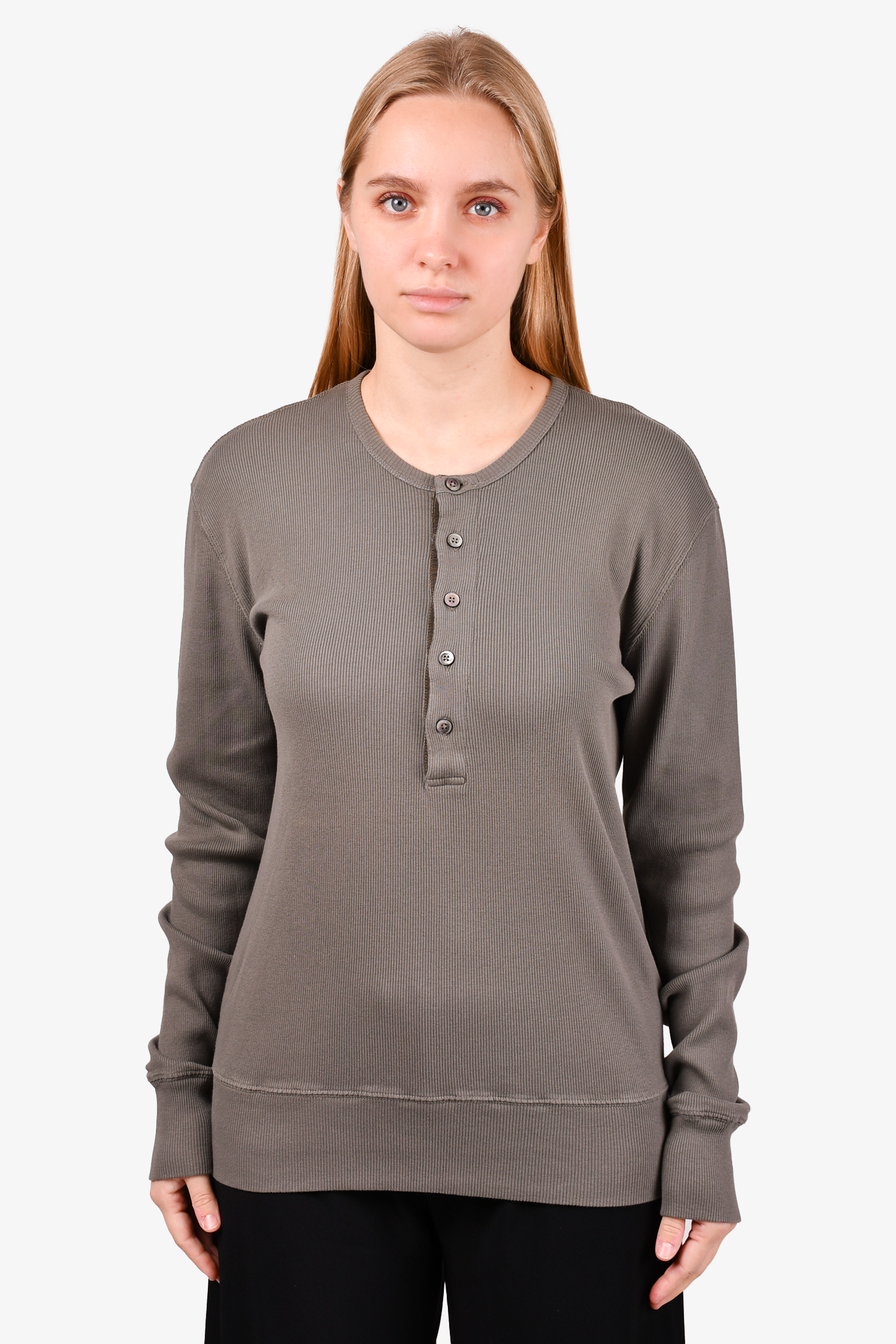 Refresh availabilityTom Ford Grey Ribbed Top. Front button-up closure. Round neck. Tonal stitching.
