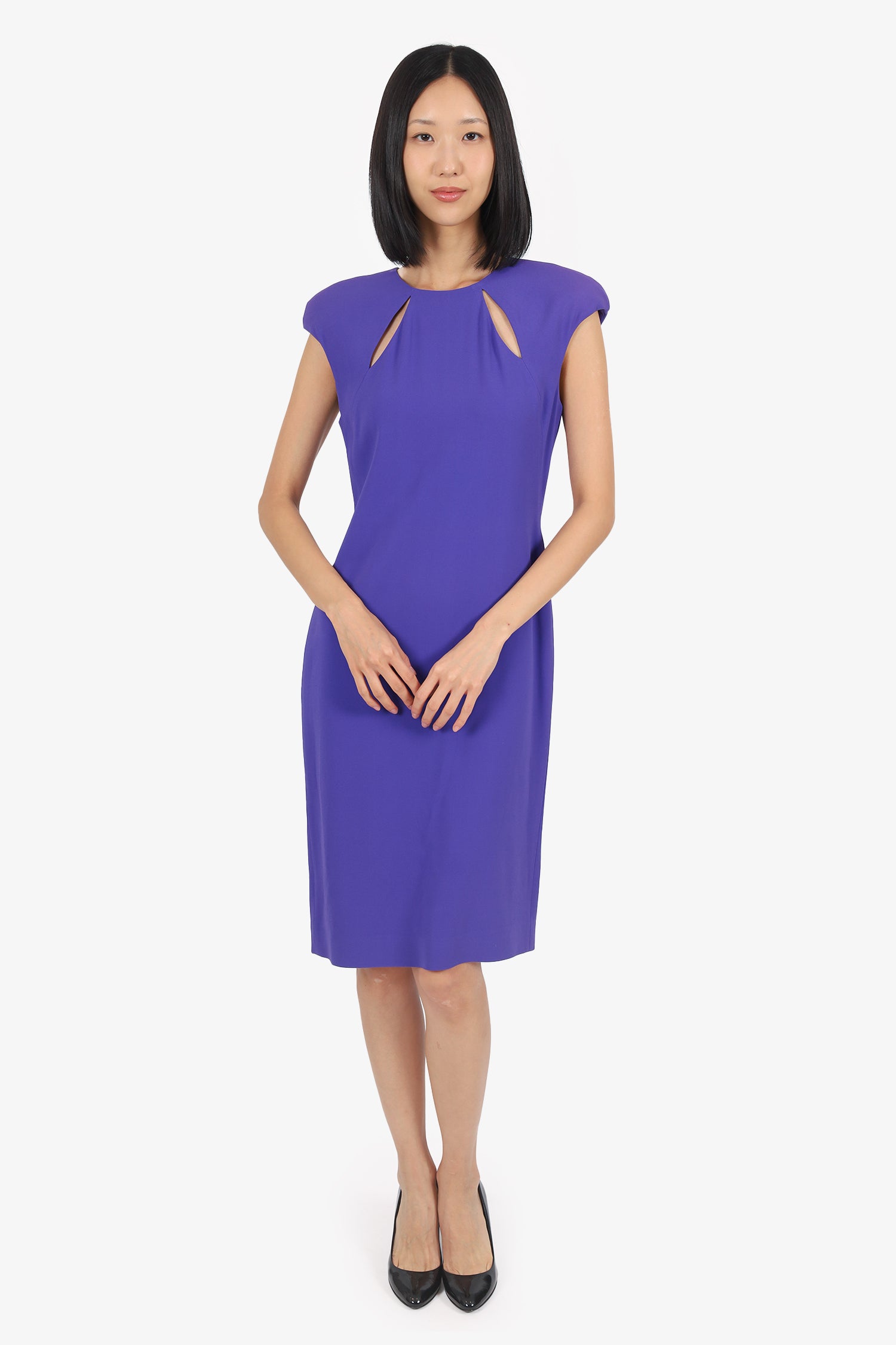 Refresh availabilityTom Ford Purple Sleeveless Midi Dress. Slip-on. Round neckline. Rear zip and hook closure. Cut outs under neckline. Lined interior. Tonal stitching.