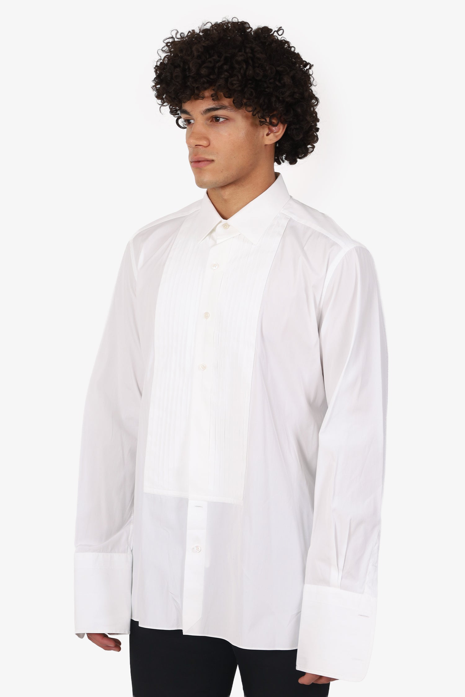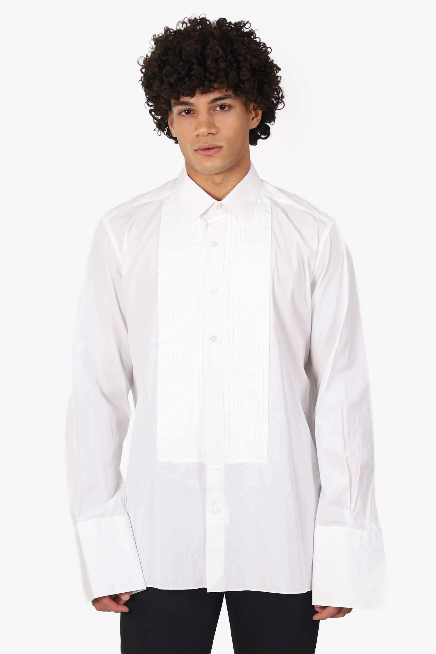 Tom Ford White Pleated Tuxedo Shirt Size 45 Mens