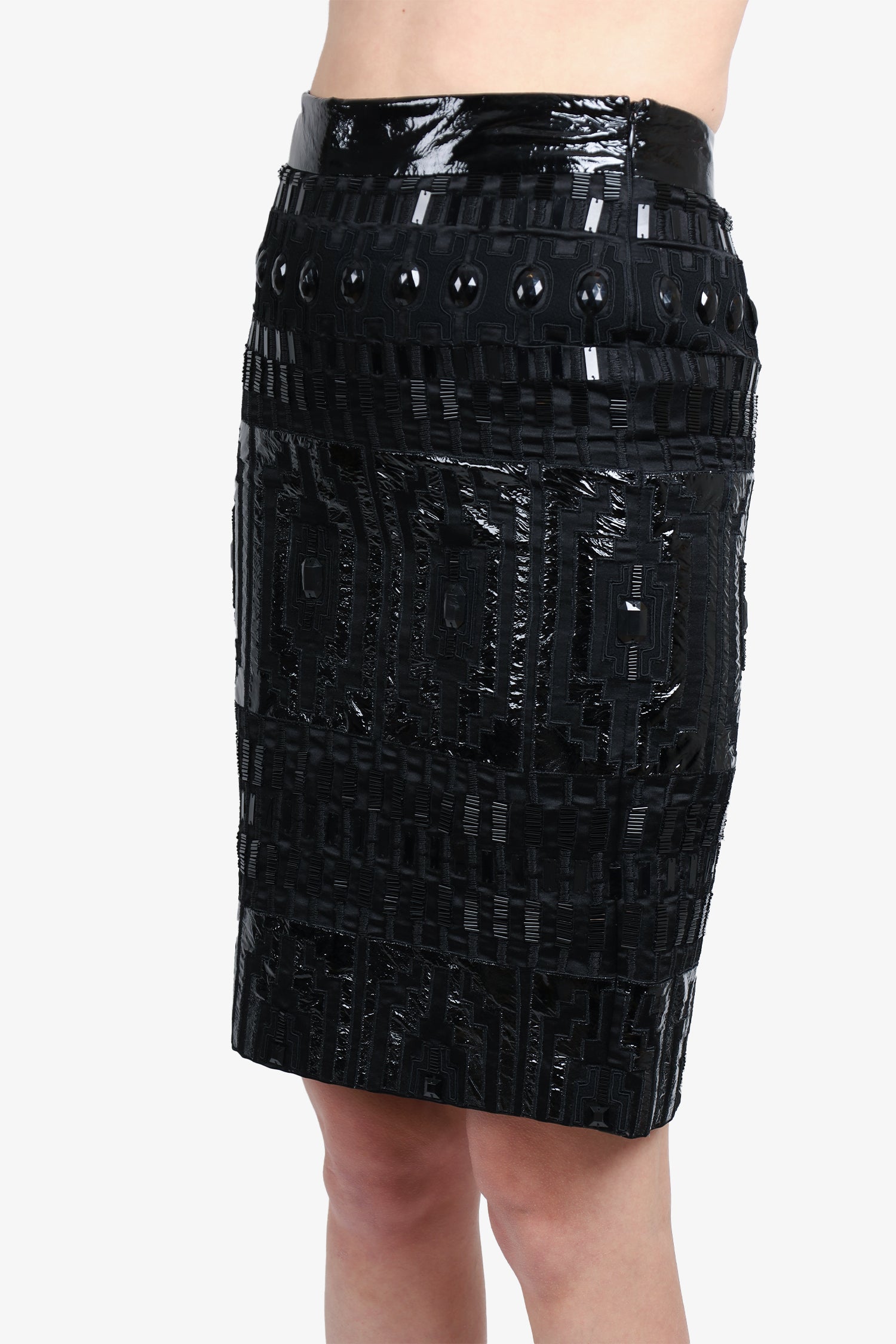 Refresh availabilityTory Burch Black Silk/Patent Rocket Applique Skirt. Side zipper closure. Lined. Tonal stitching.