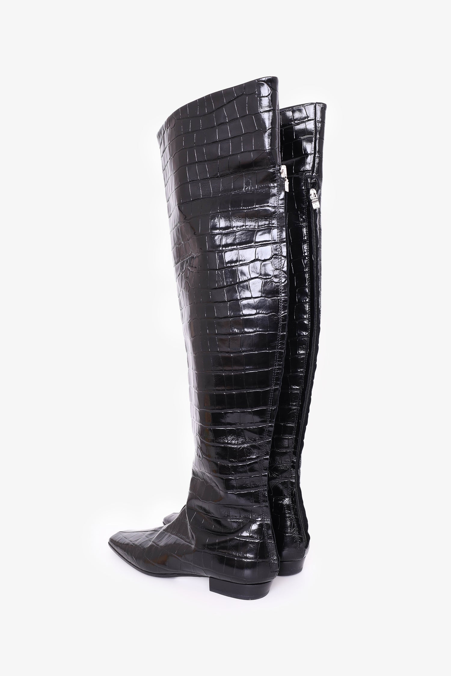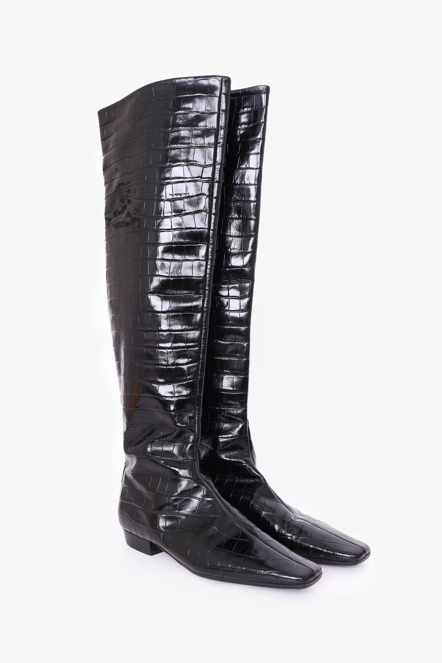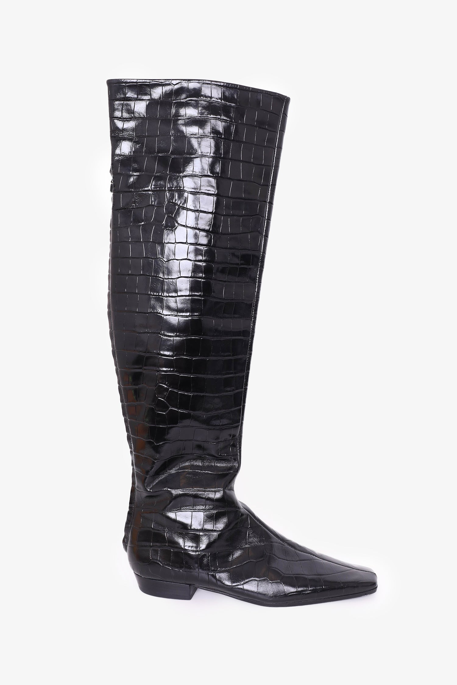 Toteme Black Croc-Embossed Calfskin Boots Size 40